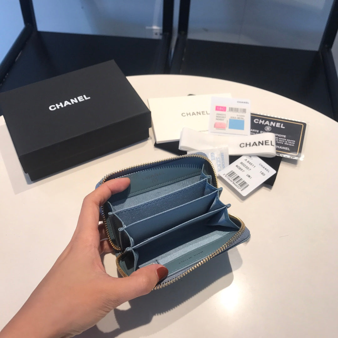 CC ZIPPED CAVIAR PURSE 11 SAPPHIRE CALFSKIN GOLD ICON