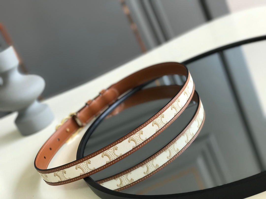 CELINE 25S BELT TRIOMPHE 25MM IN WHITE CALFSKIN AND CANVAS 559677