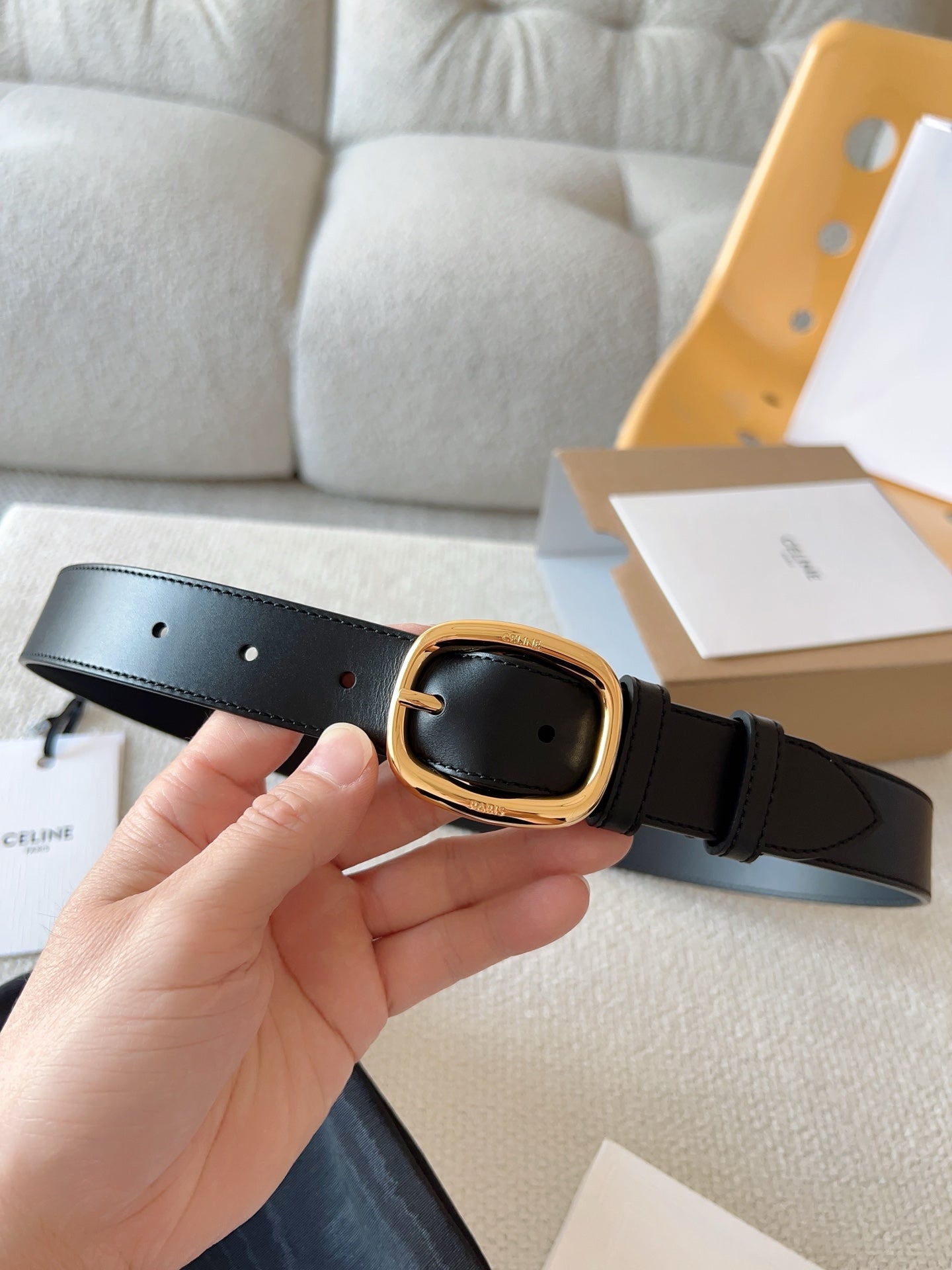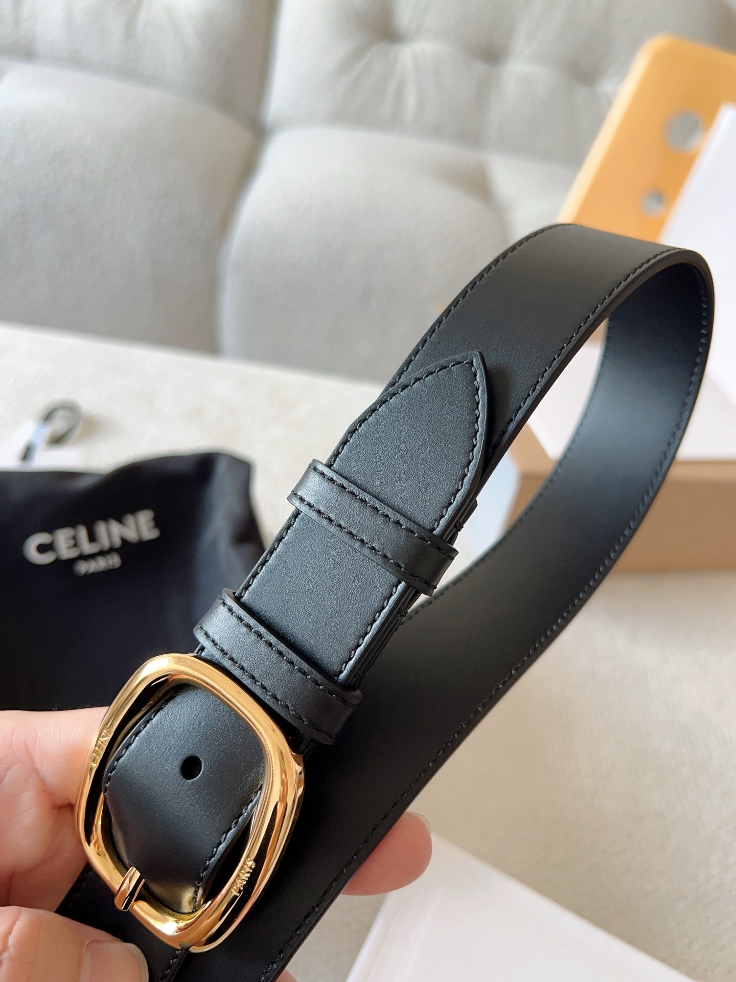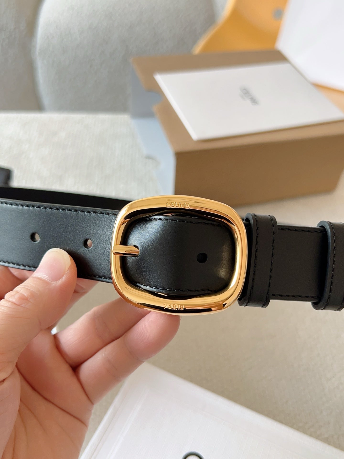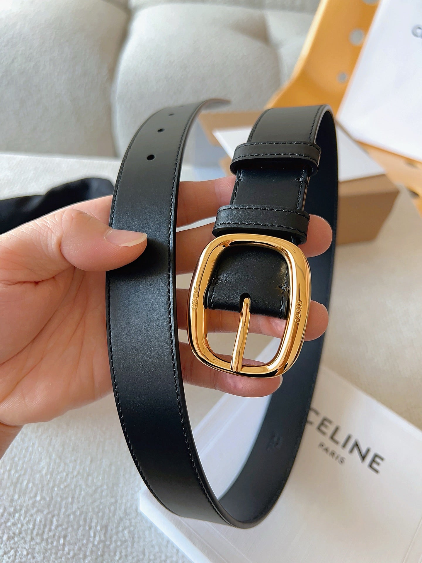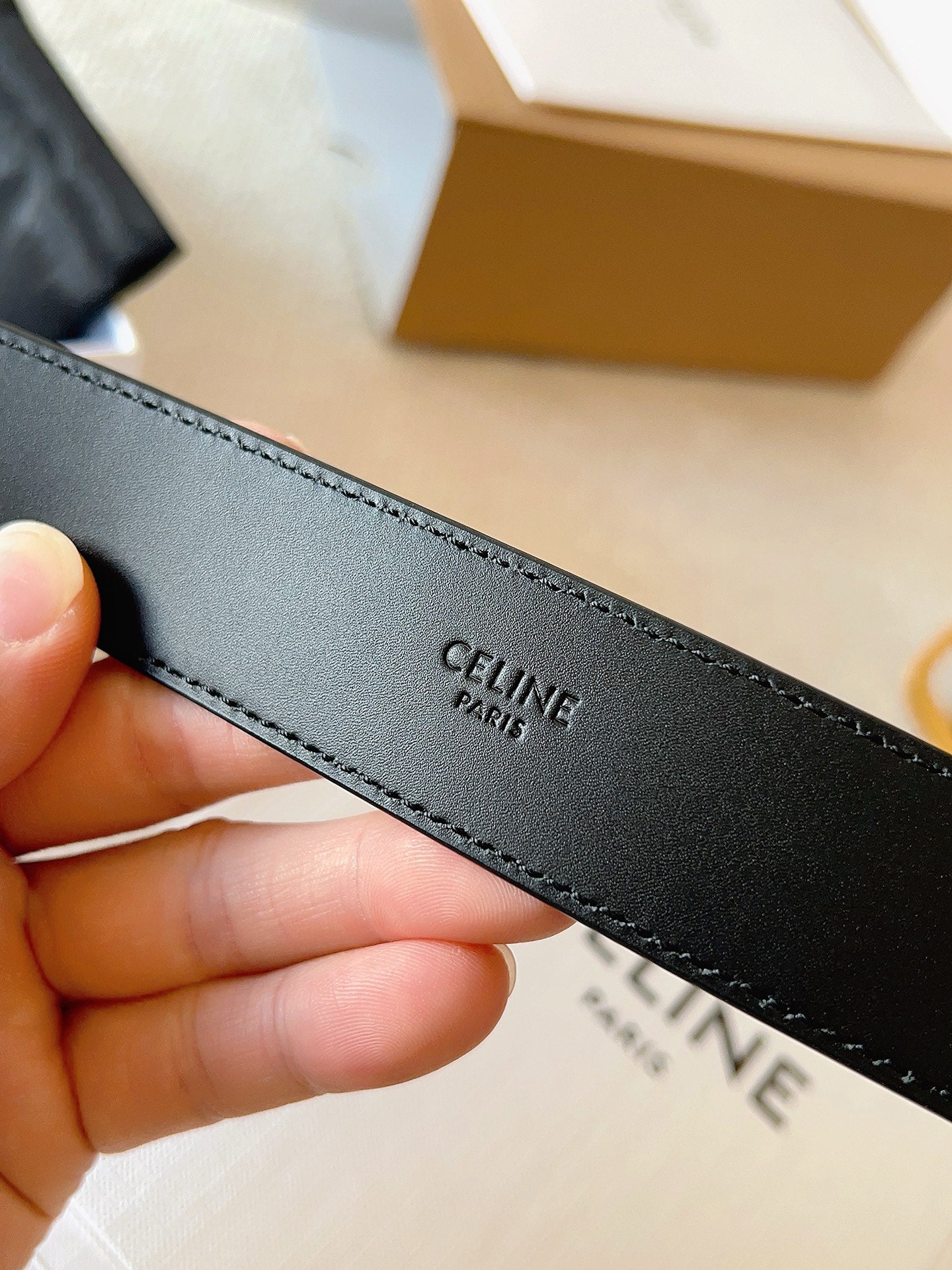 CELINE 25S SMALL 30MM WESTERN BELT IN BLACK CALFSKIN 566637