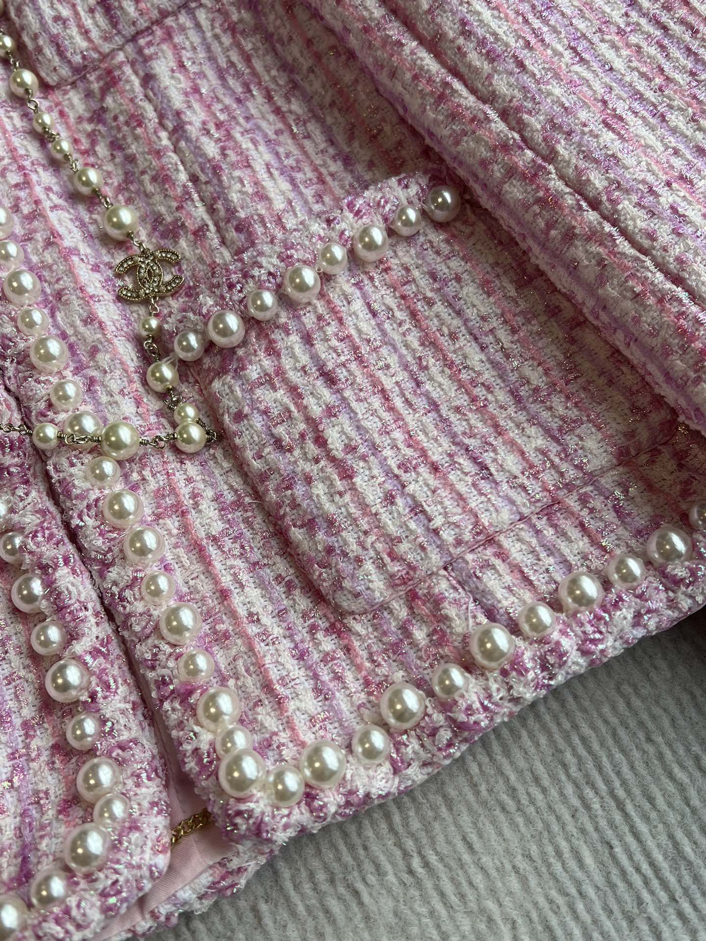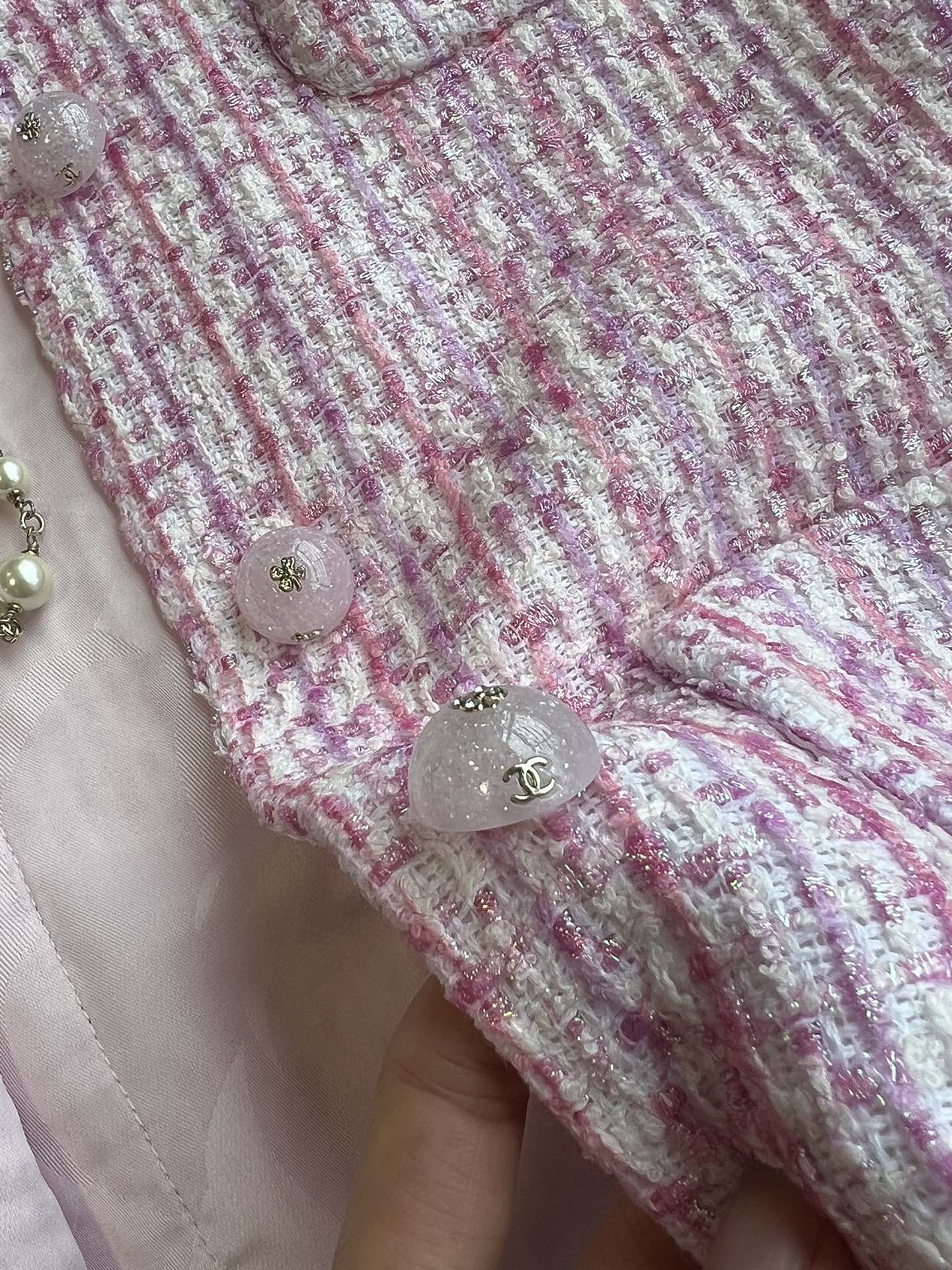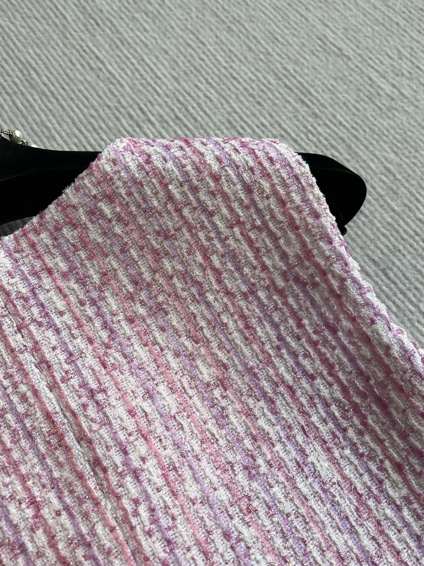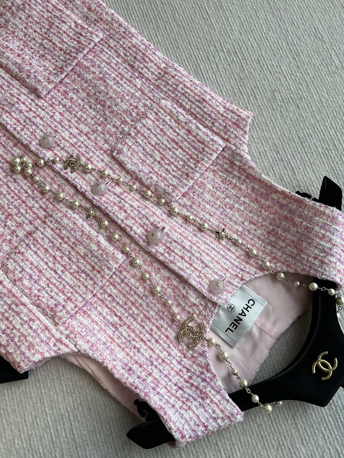 Chanel 25P Gilet Pink Cotton and Wool Tweed 235902