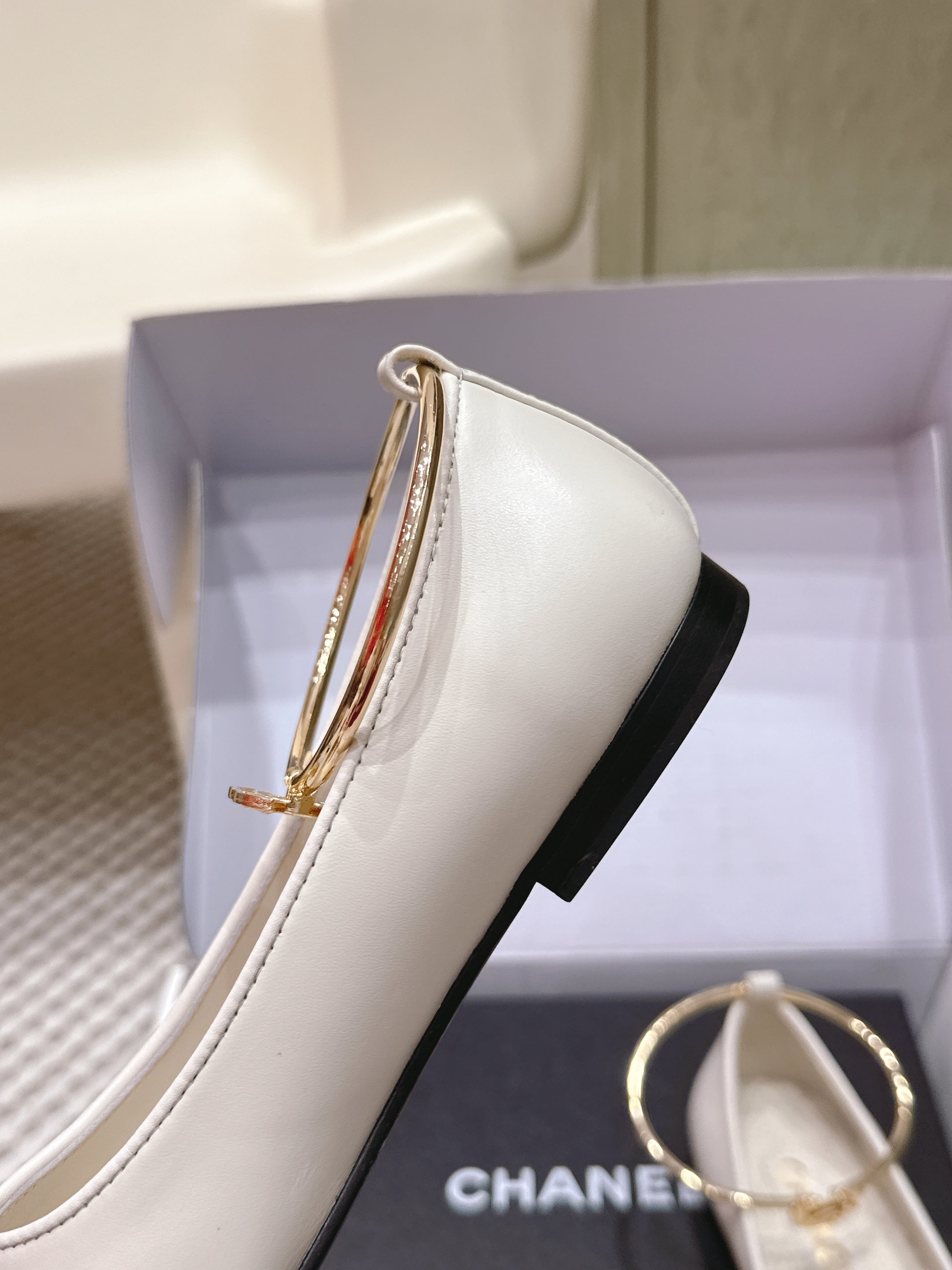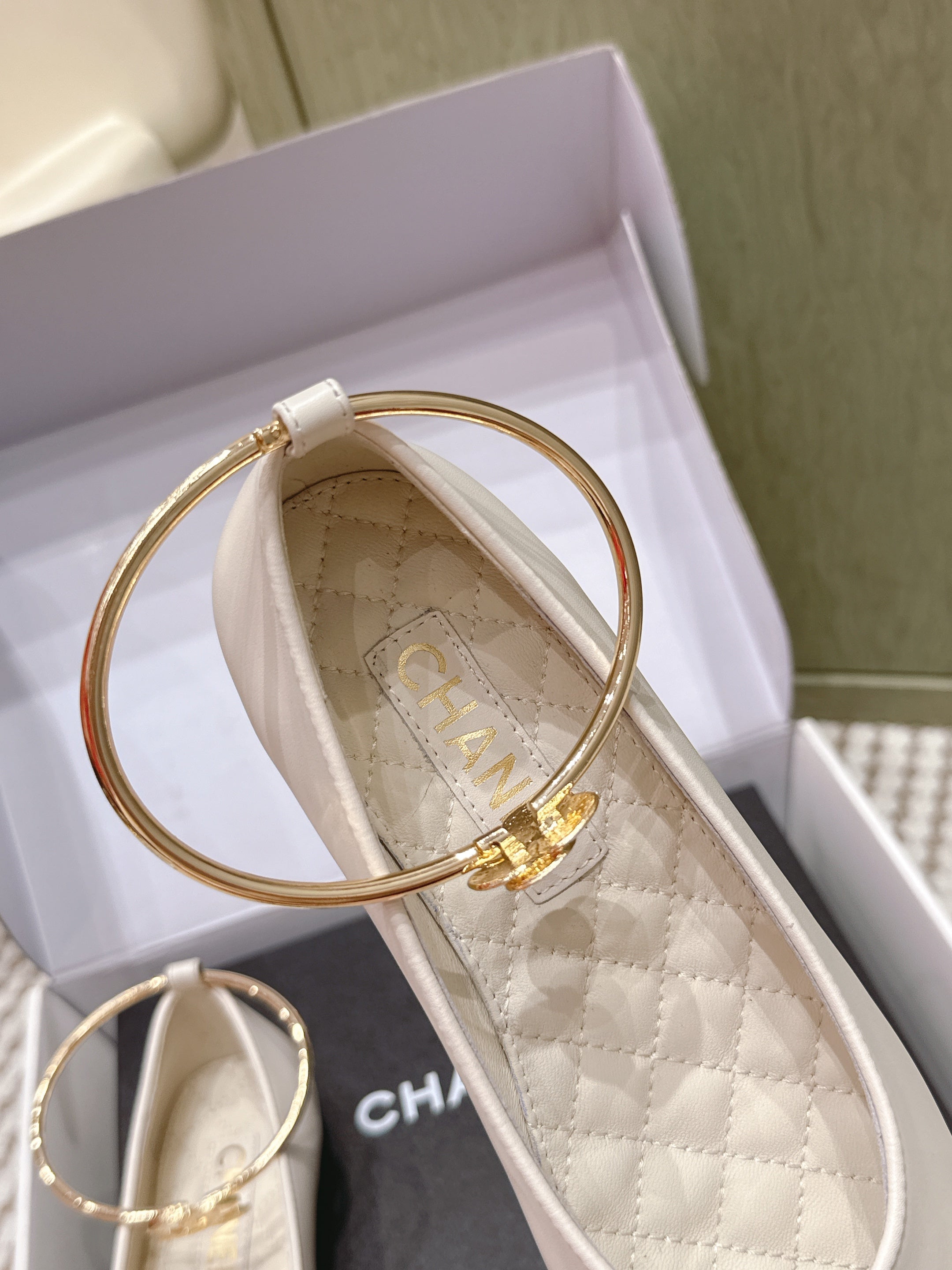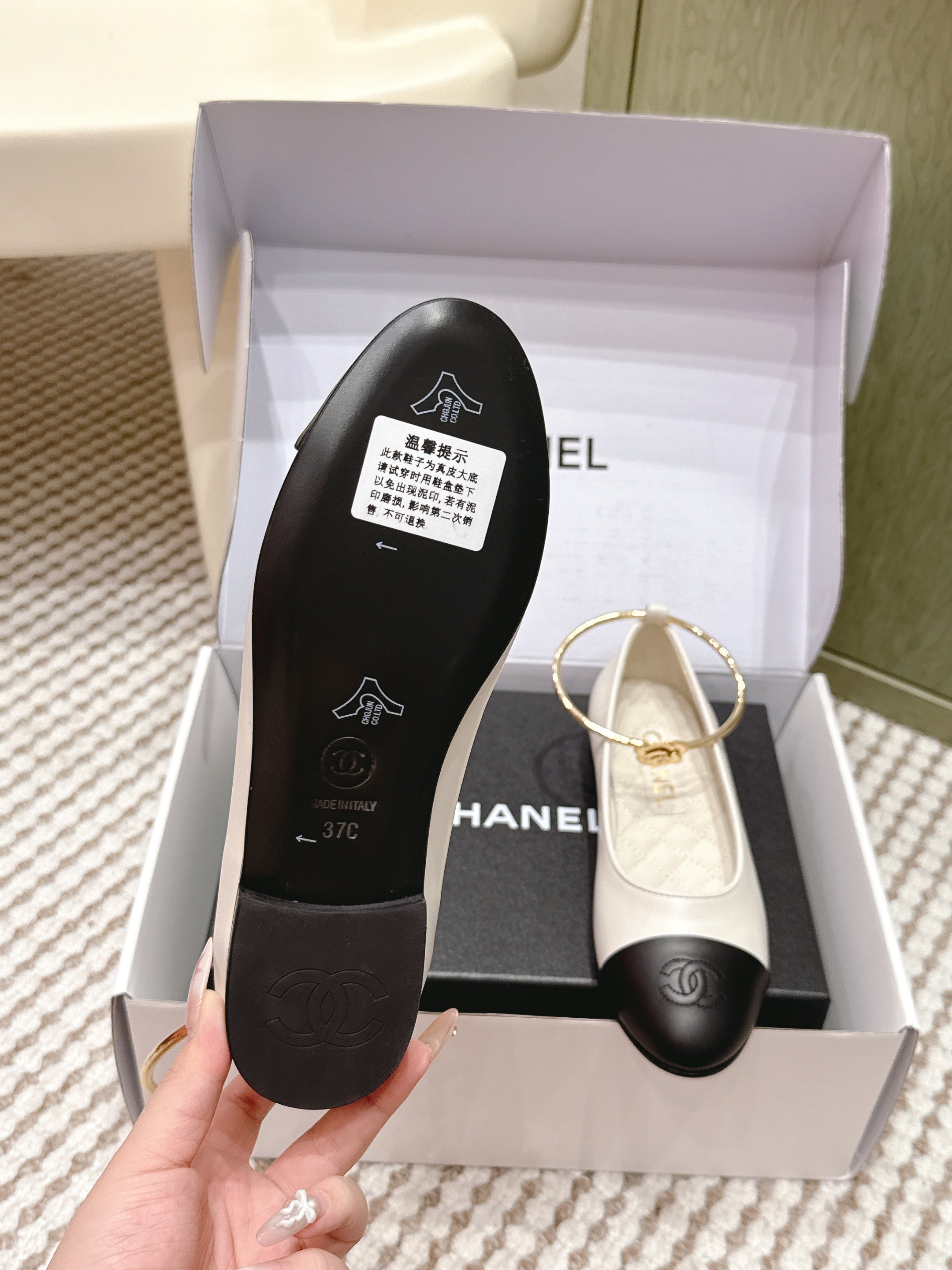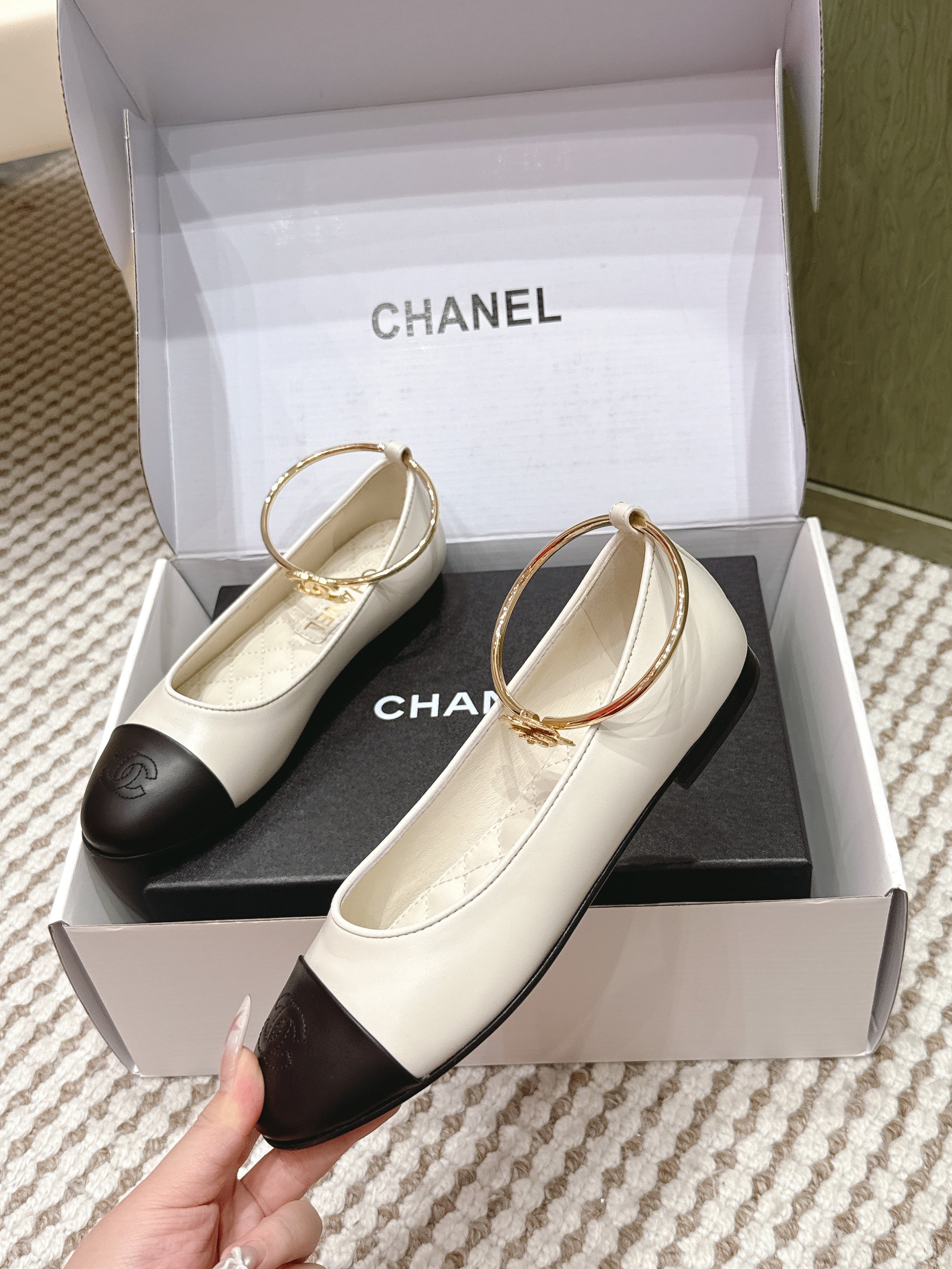 CHANEL 25S BALLERINA SHOES IN WHITE AND BLACK CALFSKIN GOLD HARDWARE