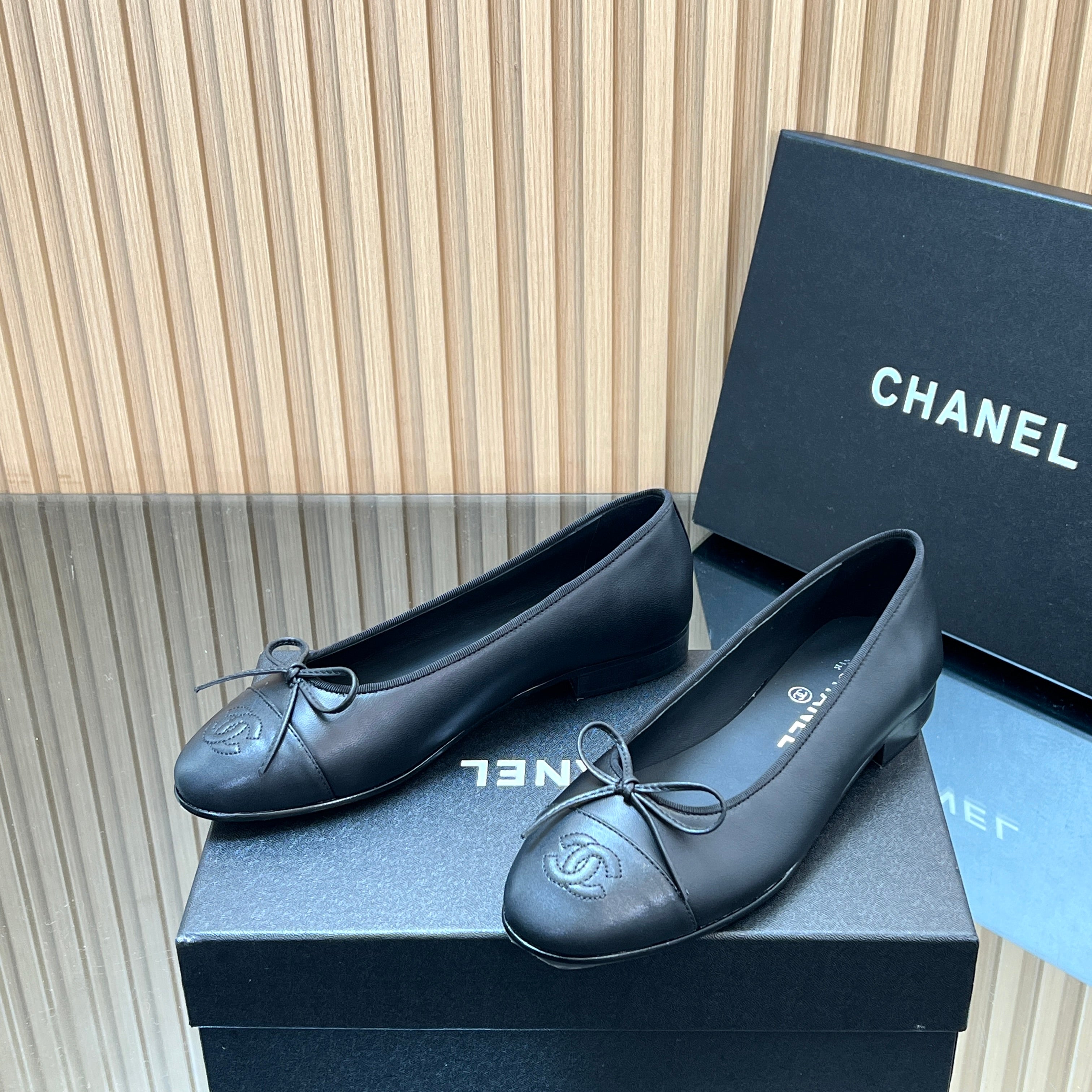 CHANEL 25S BALLET FLATS 20MM IN BLACK CALFSKIN WITH BOW