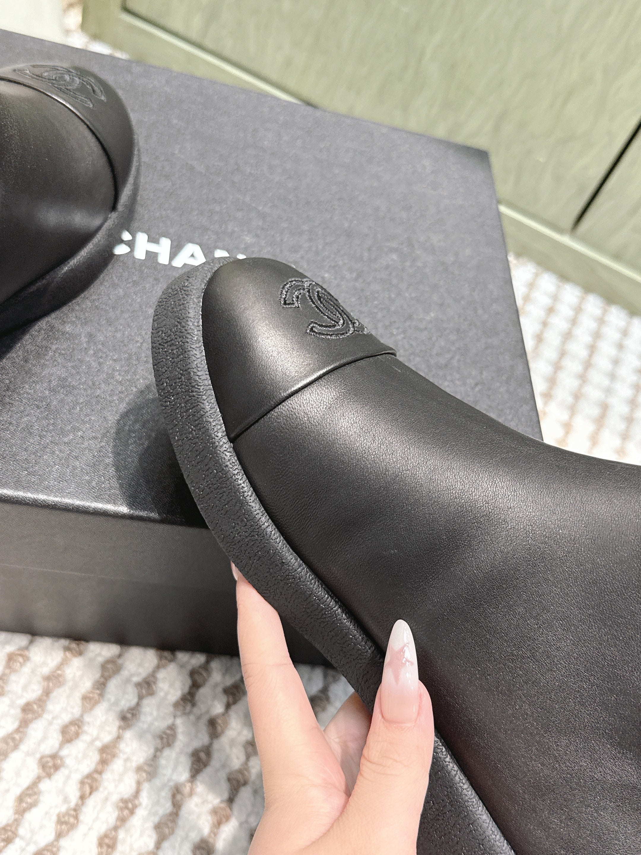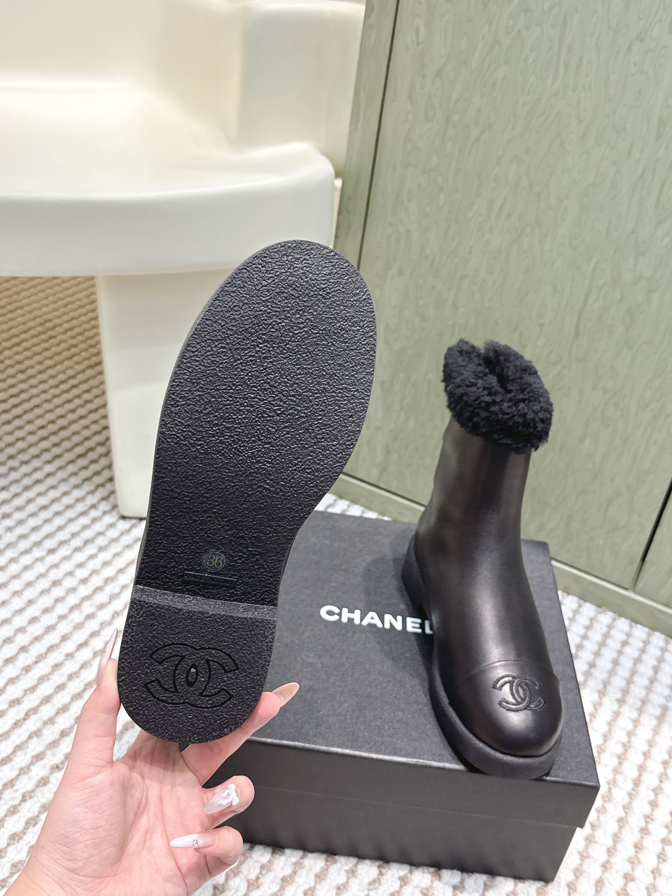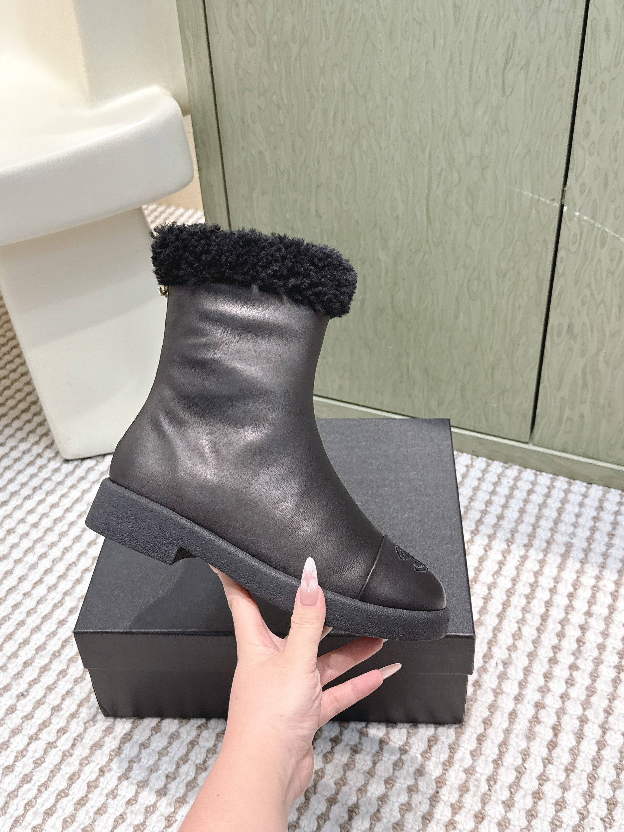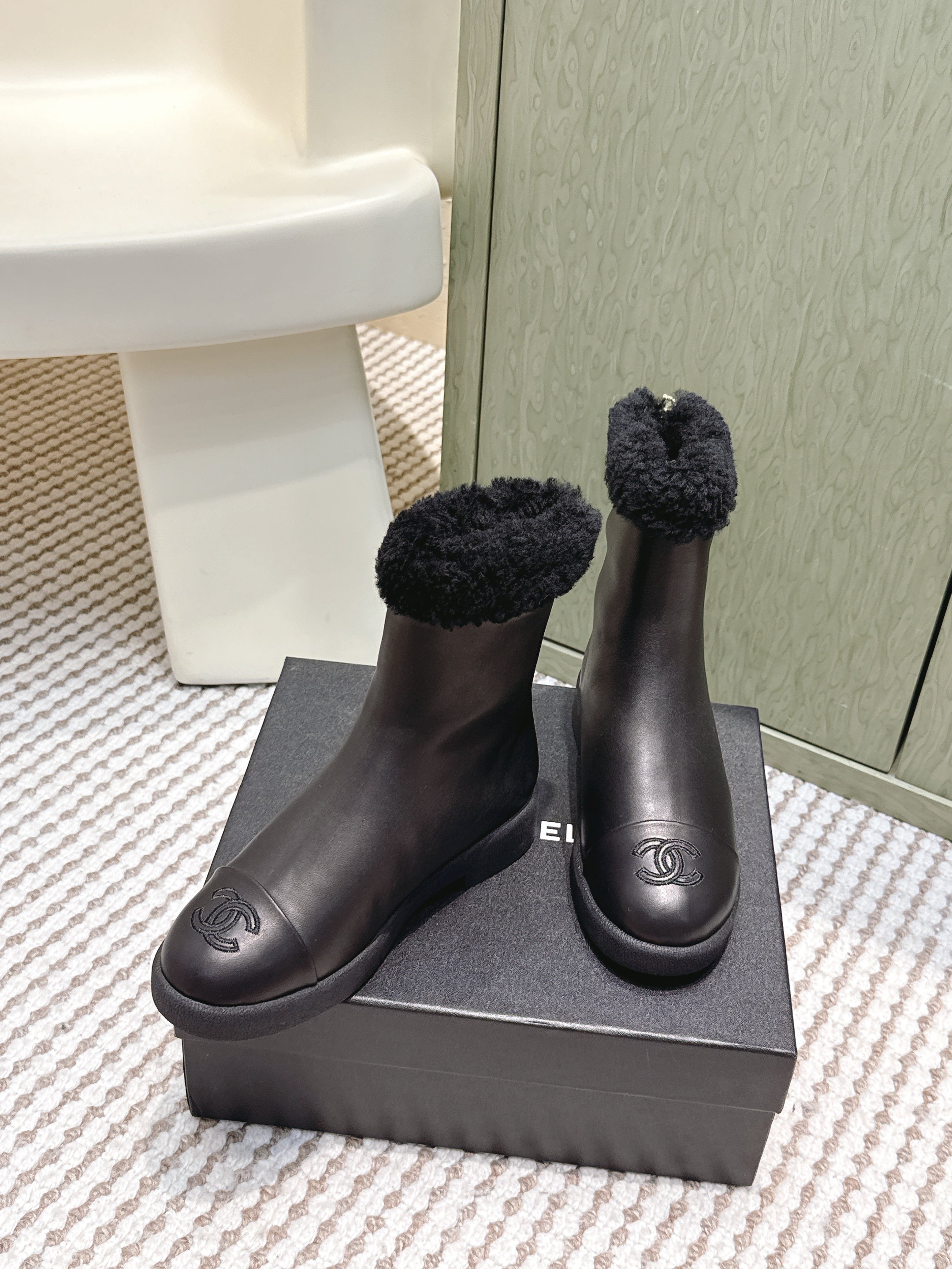 CHANEL 25S CALF-HIGH BOOTS IN BLACK CALFSKIN LINED WITH SHEEPSKIN