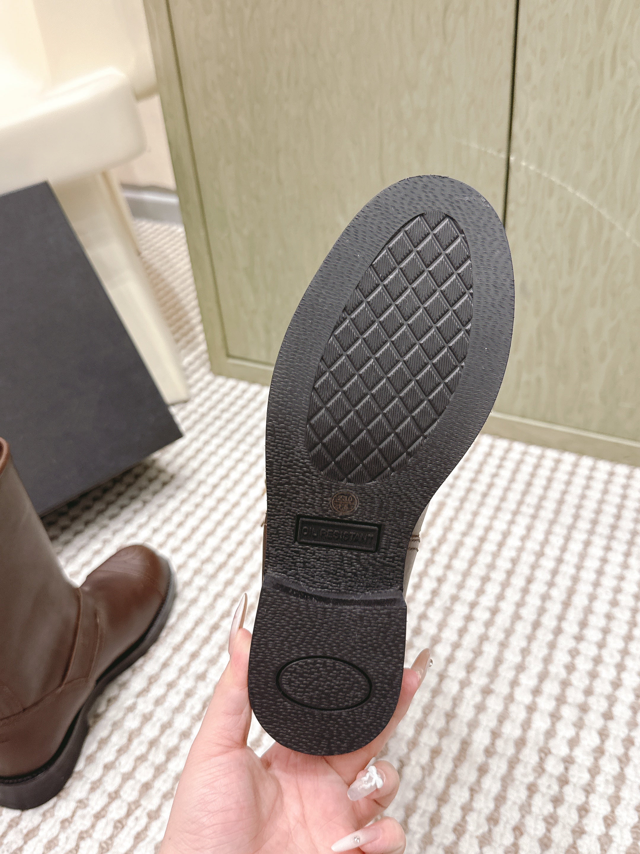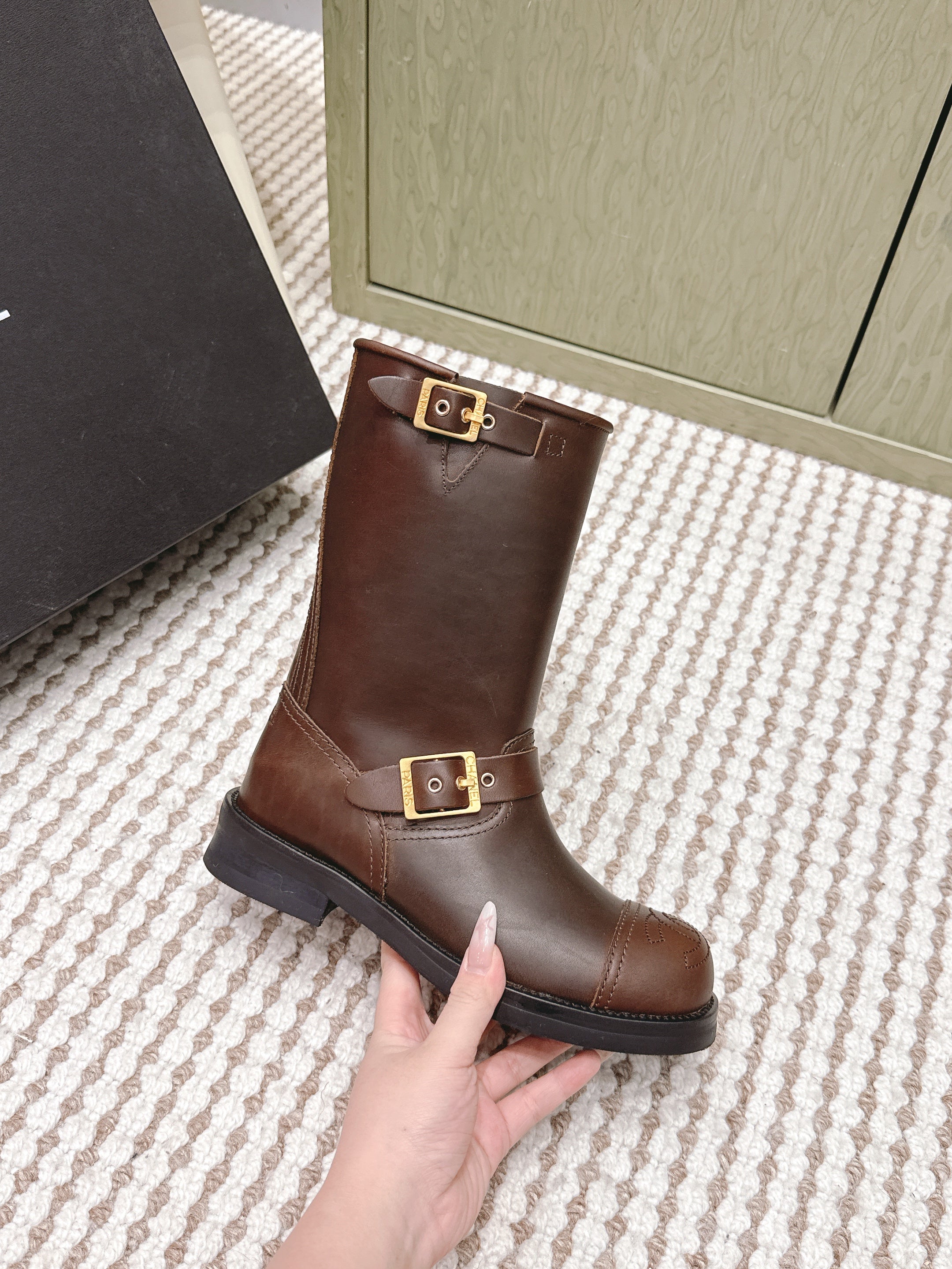 CHANEL 25S CALF-HIGH CHELSEA BOOTS IN BROWN CALFSKIN GOLD HARDWARE