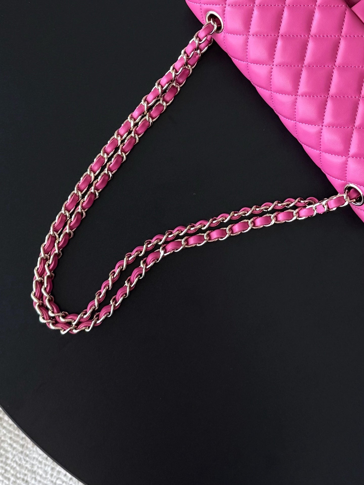 CHANEL 25S CLASSIC FLAP BAG 25 CM IN PINK LAMBSKIN WITH GOLD HARDWARE