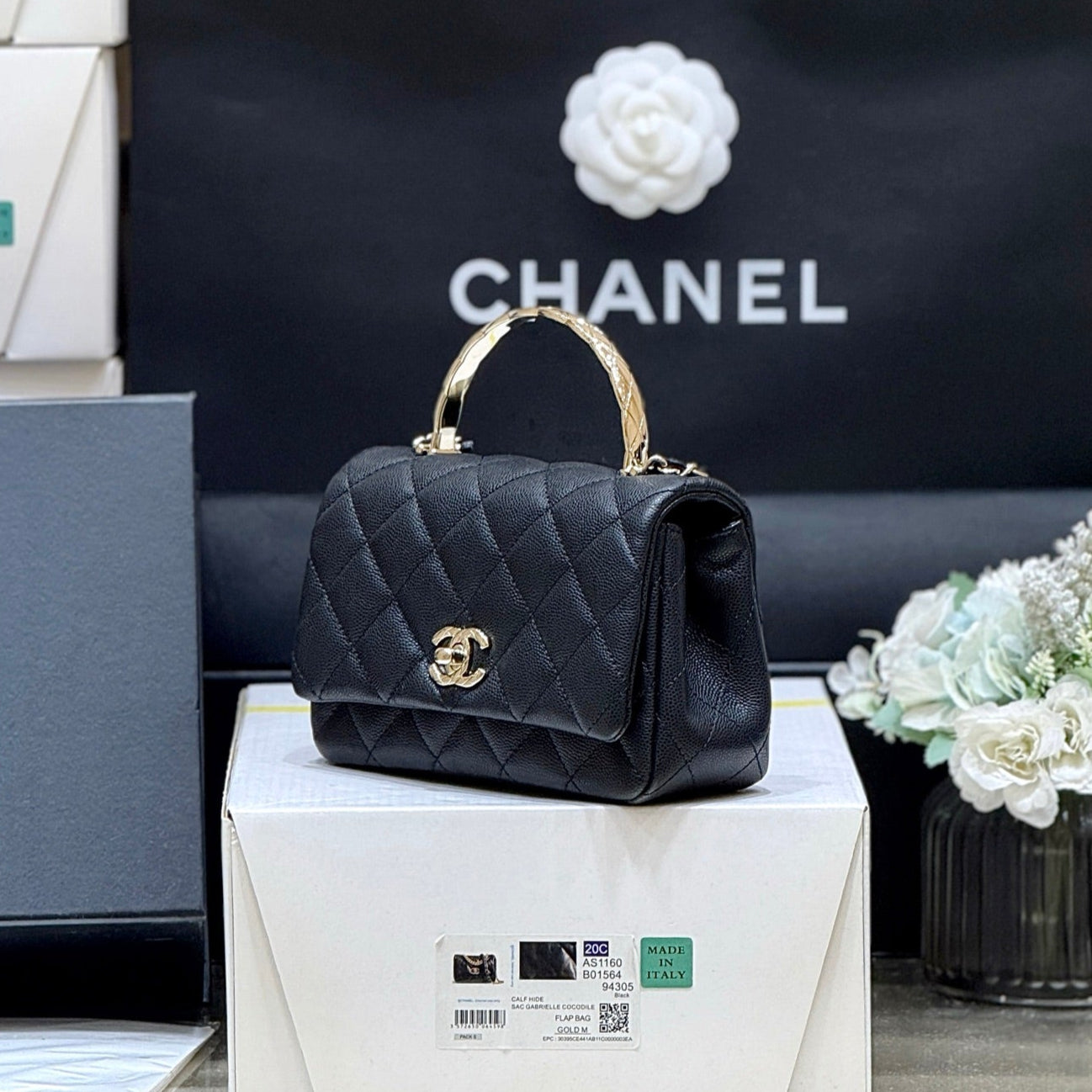 CHANEL 25S COCO CRUSH HANDLE 18 IN BLACK CALFSKIN GOLD HARDWARE