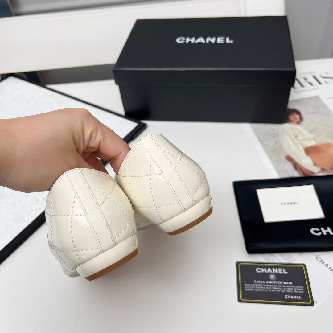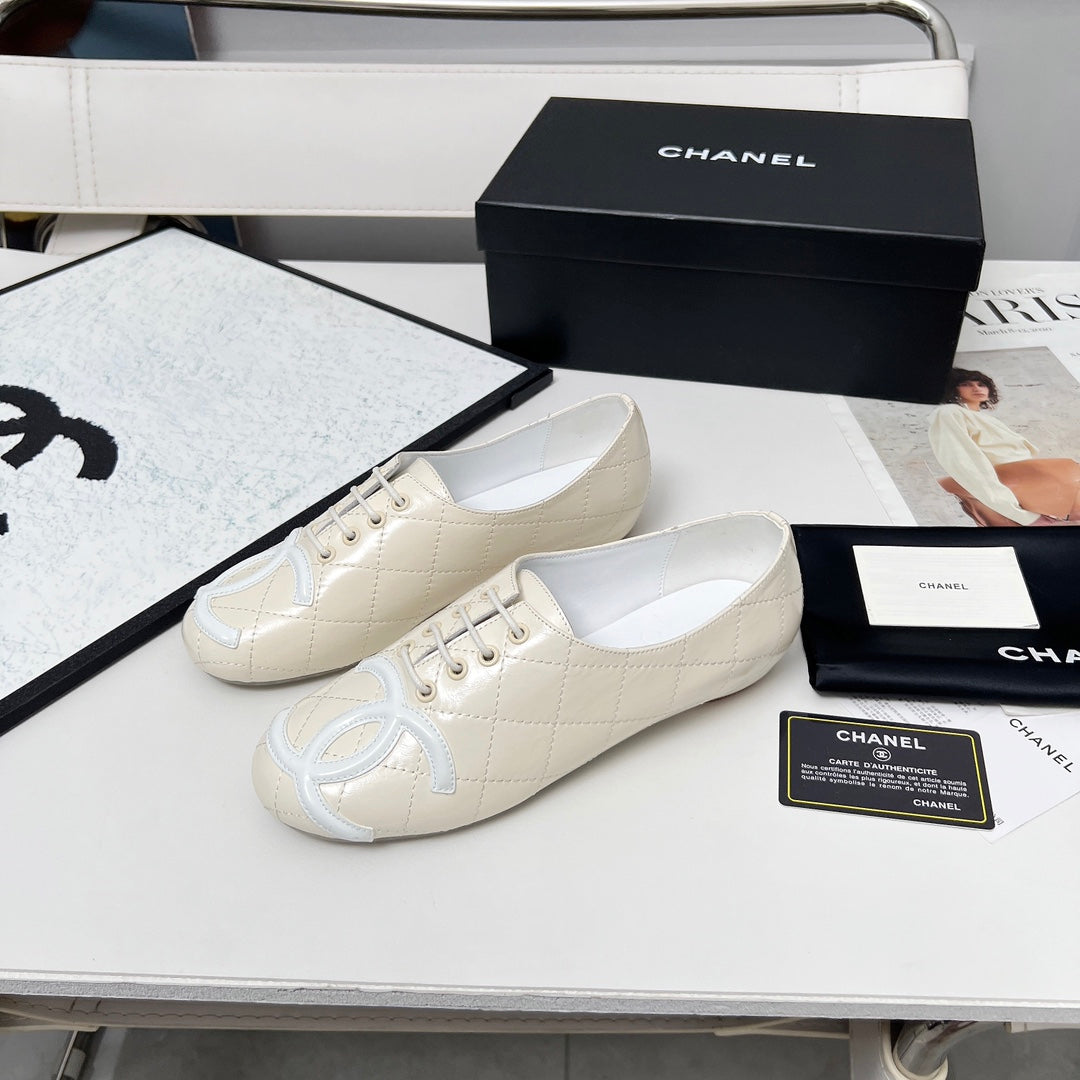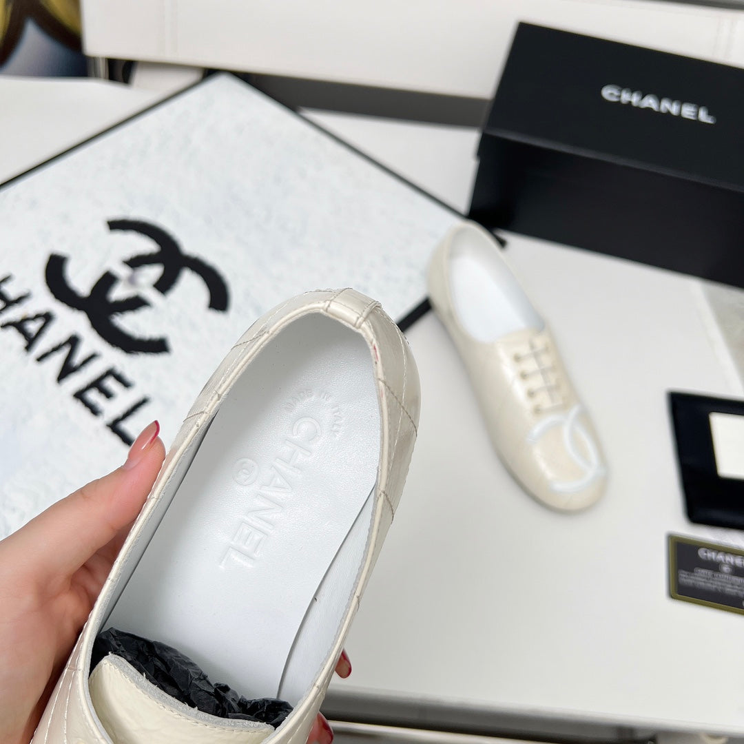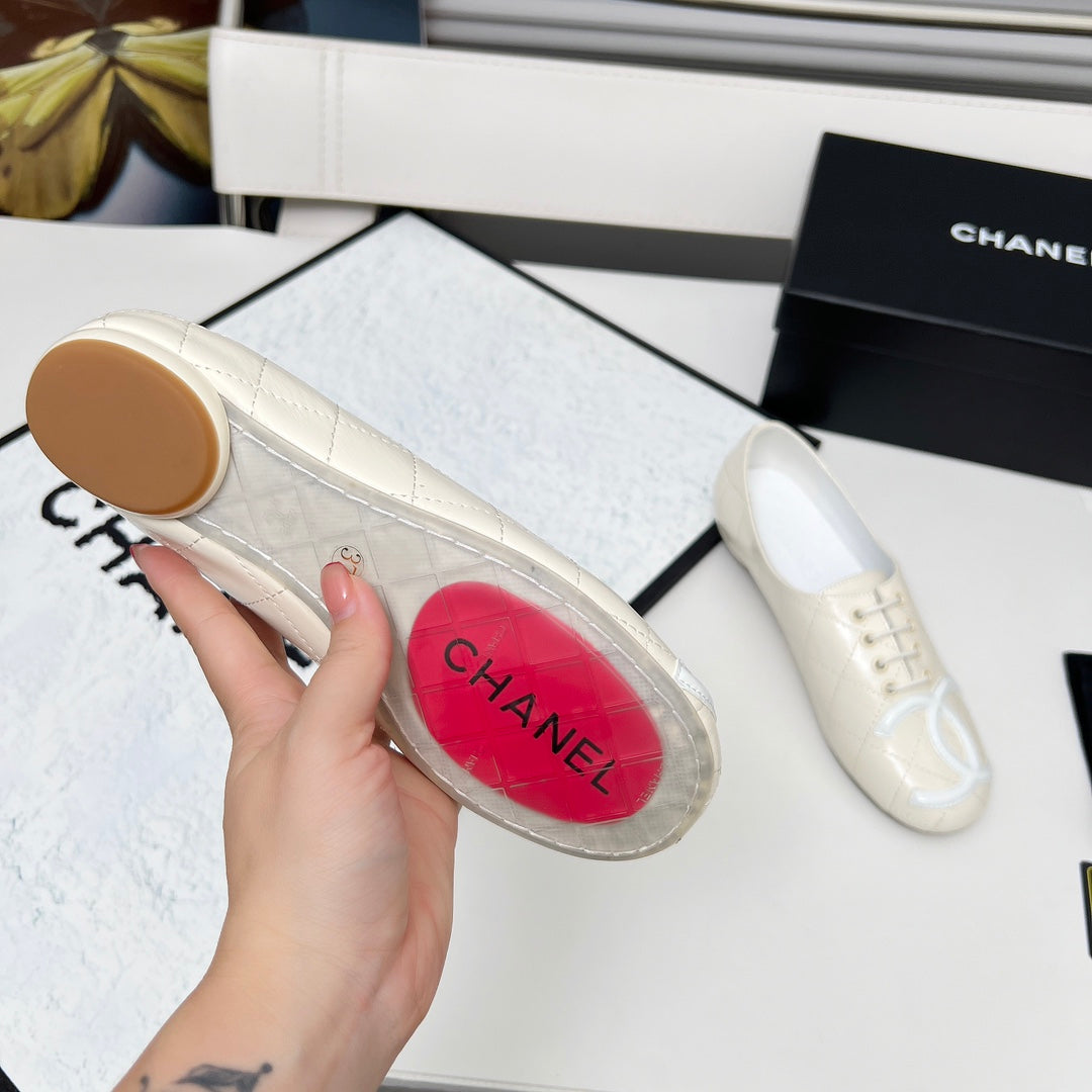 CHANEL 25S DANCE SHOES WITH PRINTED LOGO IN WHITE CALFSKIN