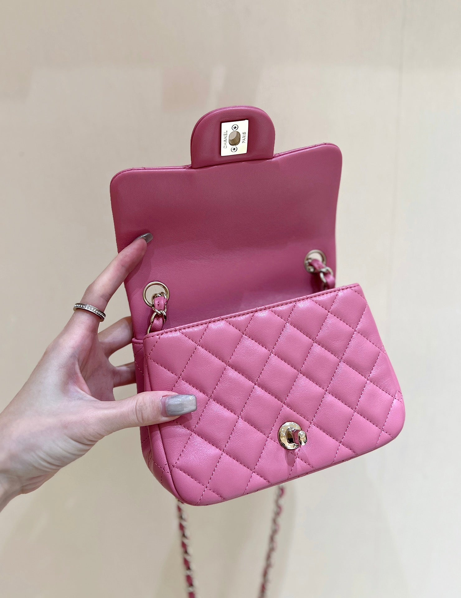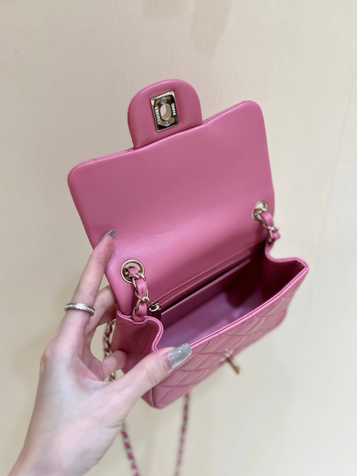 CHANEL 25S FLAP BAG 17 CM IN PINK LAMBSKIN WITH GOLD HARDWARE