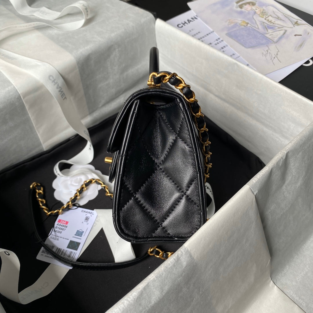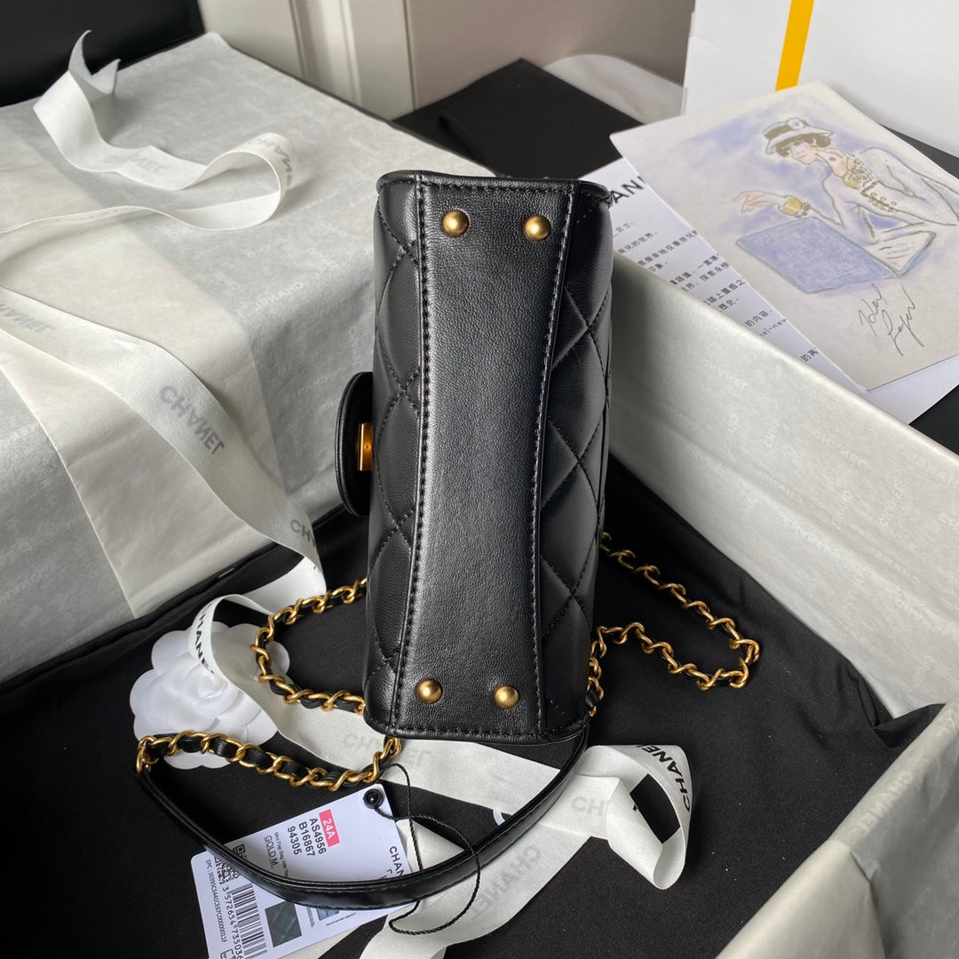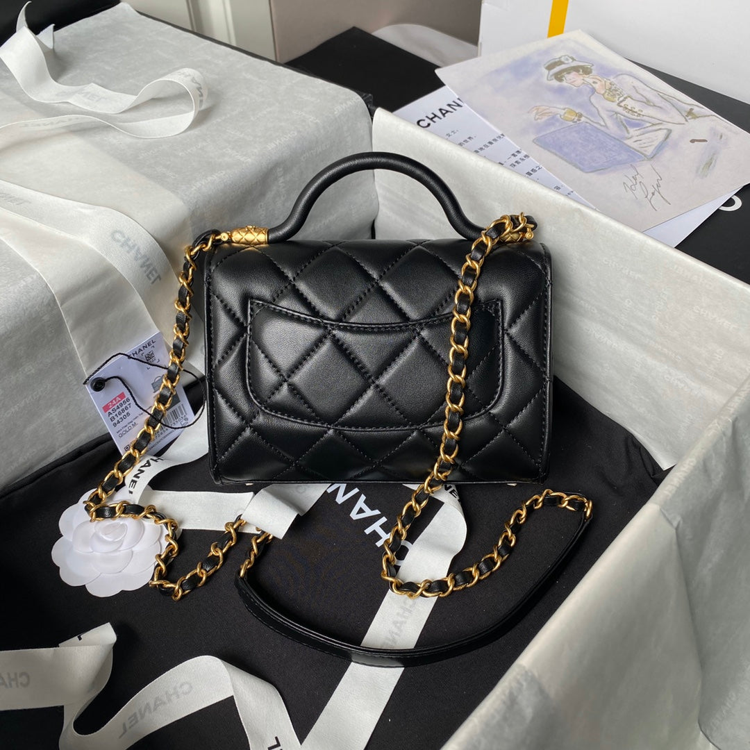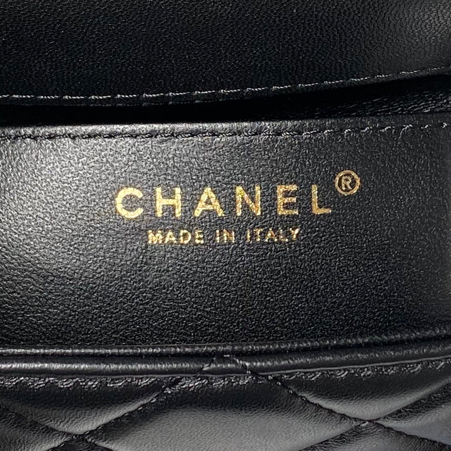 CHANEL 25S FLAP BAG 18 CM IN BLACK LAMBSKIN WITH TOP HANDLE