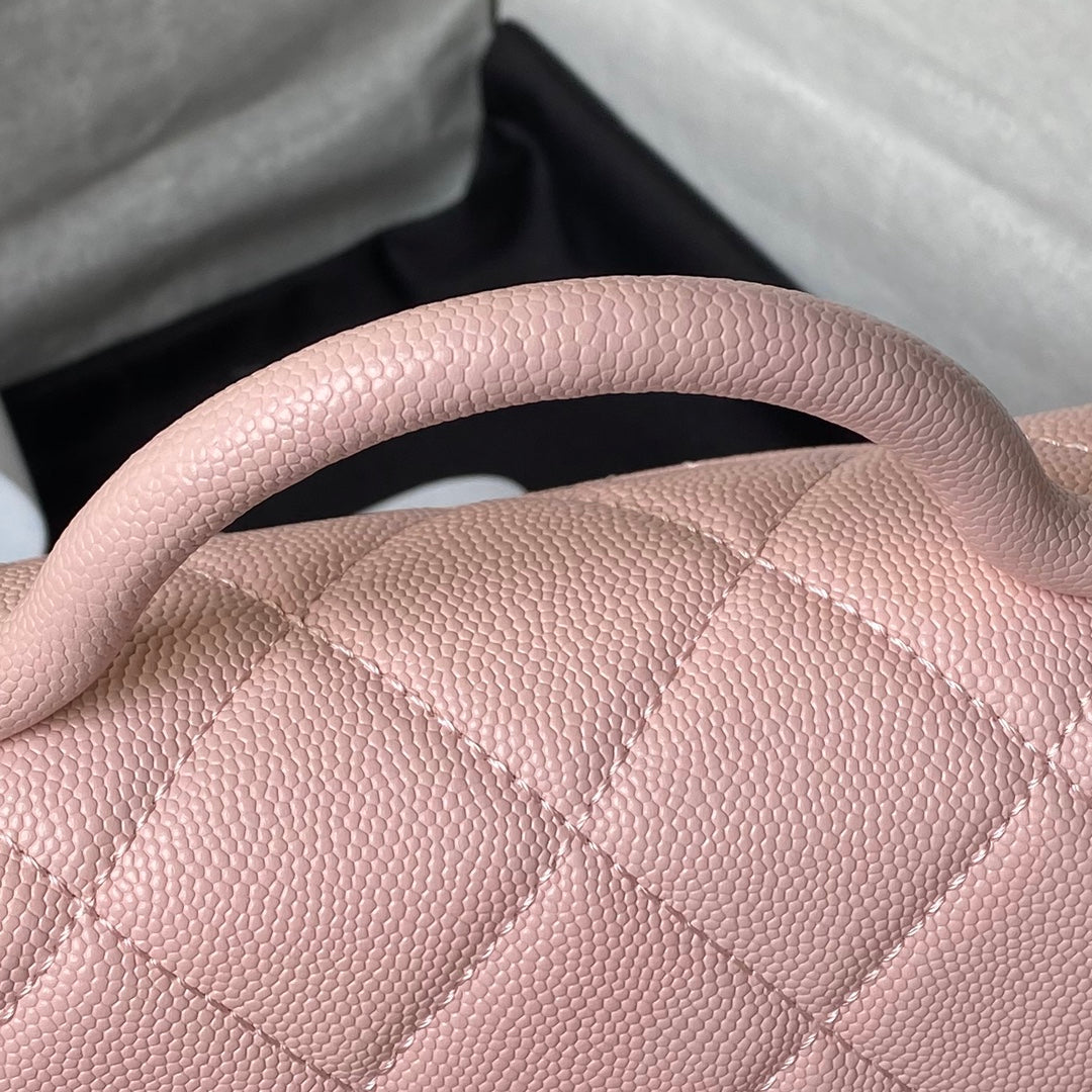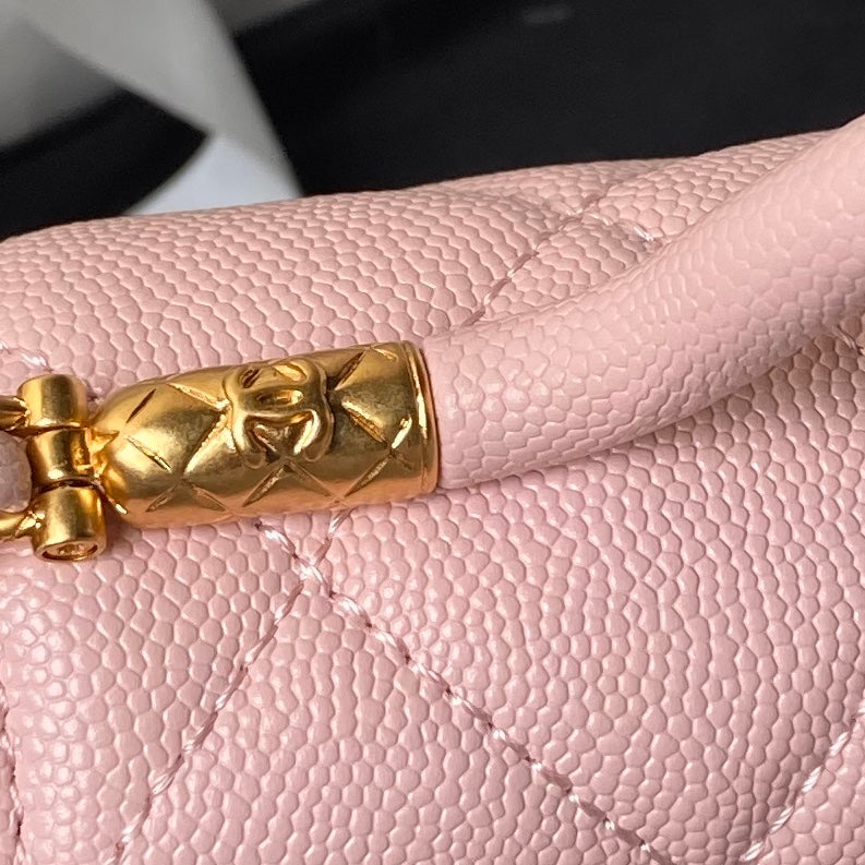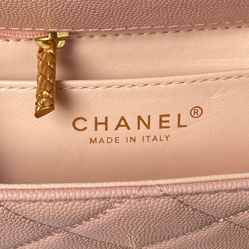 CHANEL 25S FLAP BAG 18 CM IN LIGHT PINK GRAINED LAMBSKIN WITH TOP HANDLE