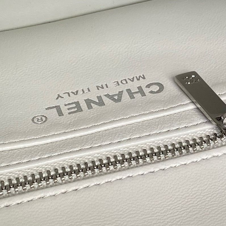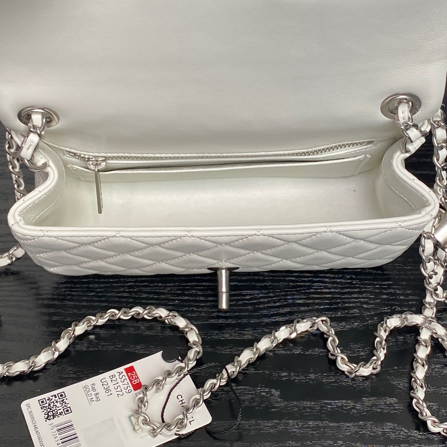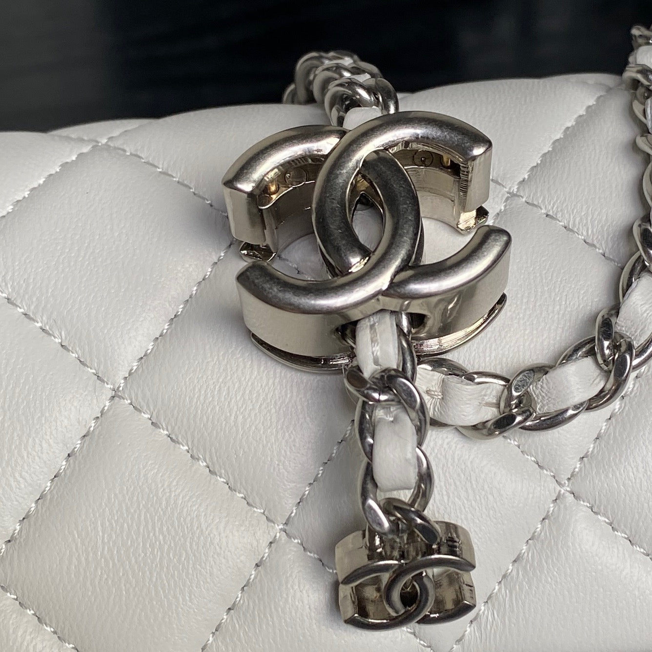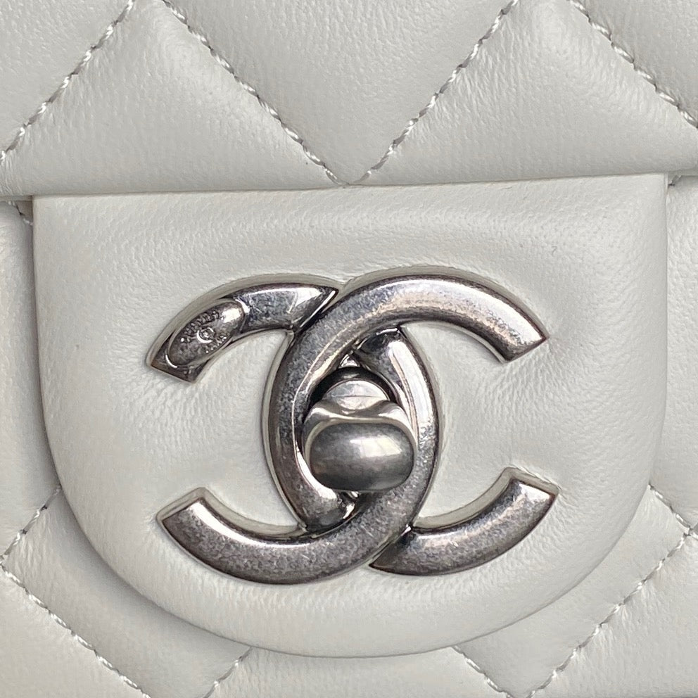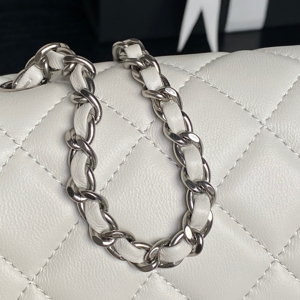 CHANEL 25S FLAP BAG 20 IN WHITE CALFSKIN SILVER HARDWARE