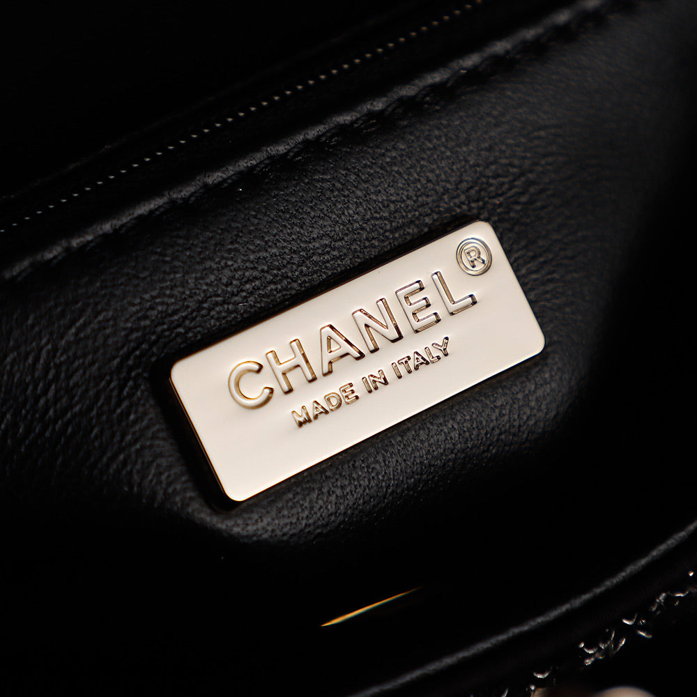 CHANEL 25S FLAP BAG 21 CM IN BLACK SEQUINED TWEED WITH GOLD HARDWARE
