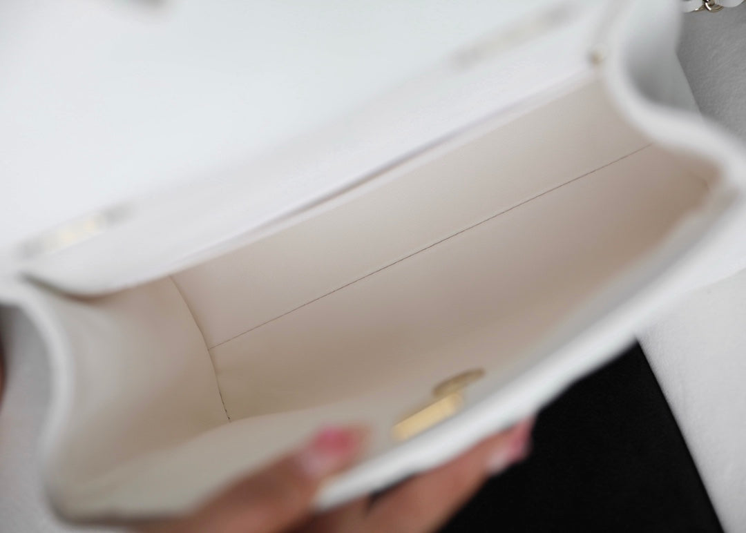CHANEL 25S FLAP BAG 21 CM IN WHITE LAMBSKIN WITH GOLD HARDWARE