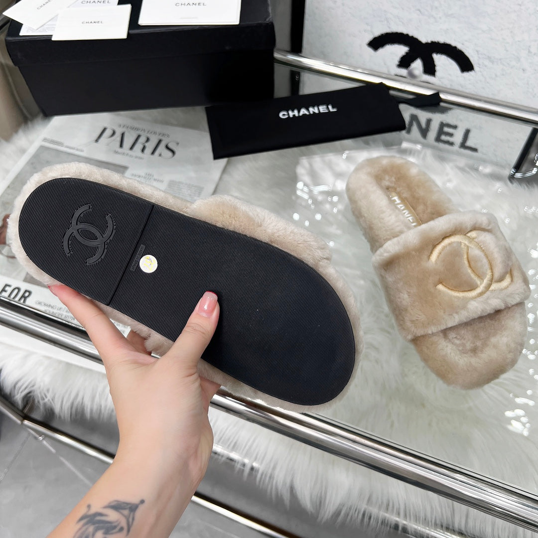 CHANEL 25S FUR SLIPPERS IN LIGHT BEIGE