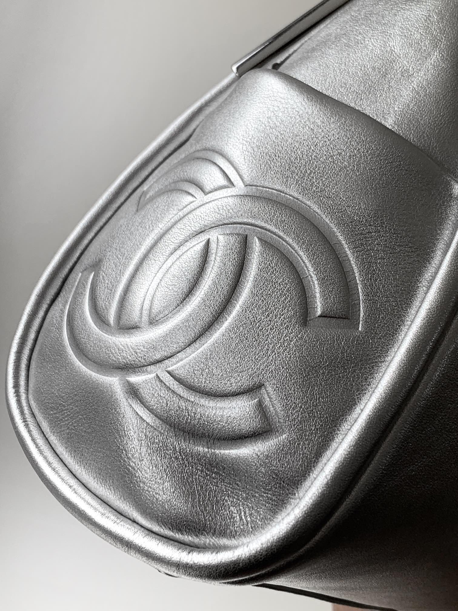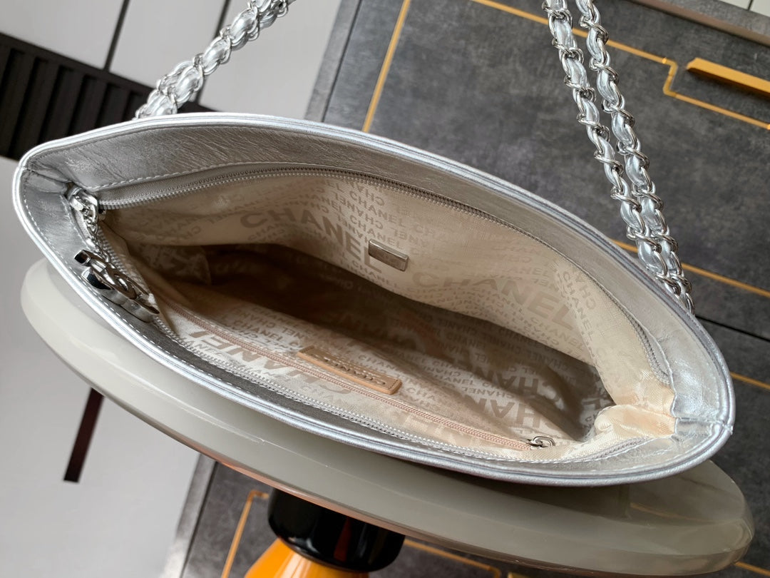 CHANEL 25S HOBO BAG 30 CM IN SILVER SMOOTH CALFSKIN