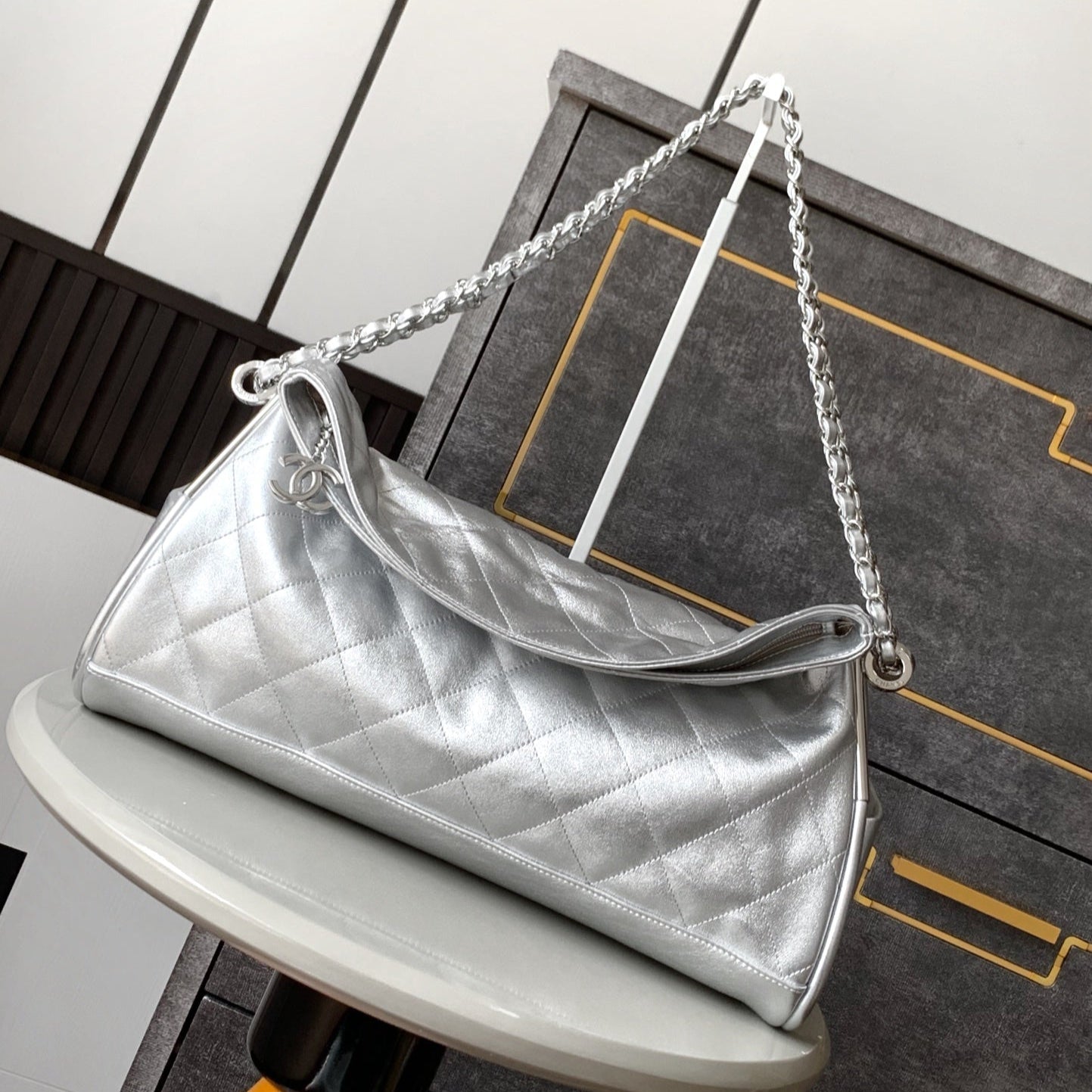 CHANEL 25S HOBO BAG 40 CM IN SILVER LAMBSKIN