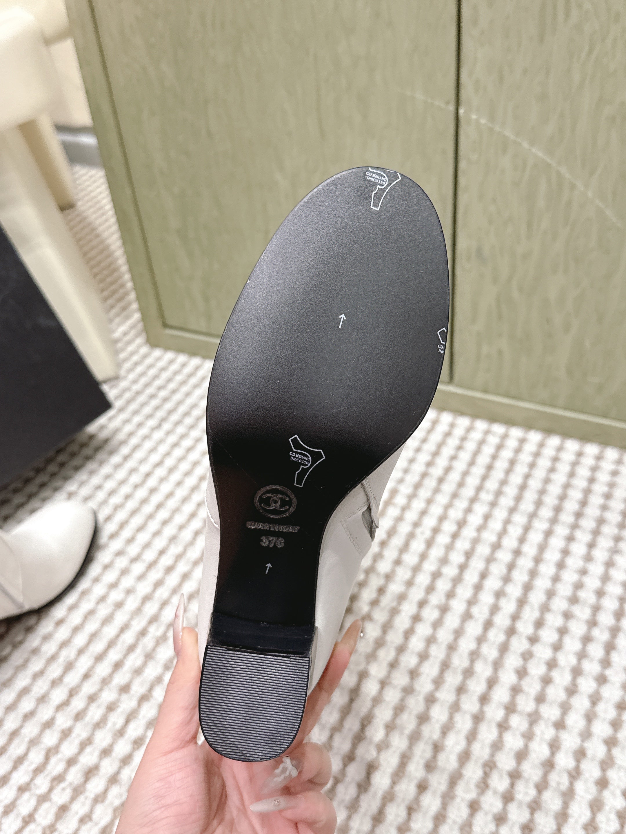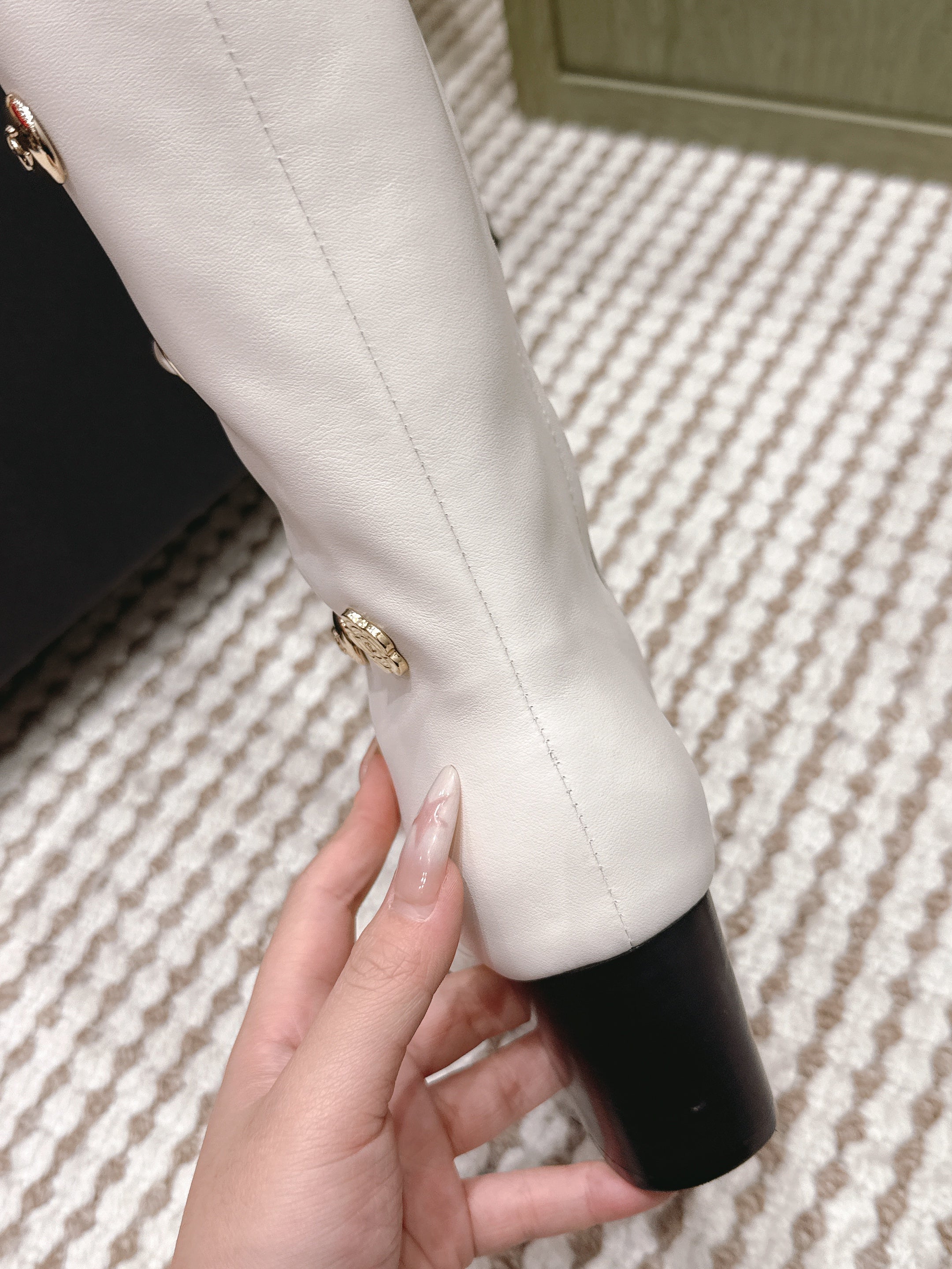 CHANEL 25S KNEE-HIGH BOOTS IN WHITE CALFSKIN WITH RHINESTONES