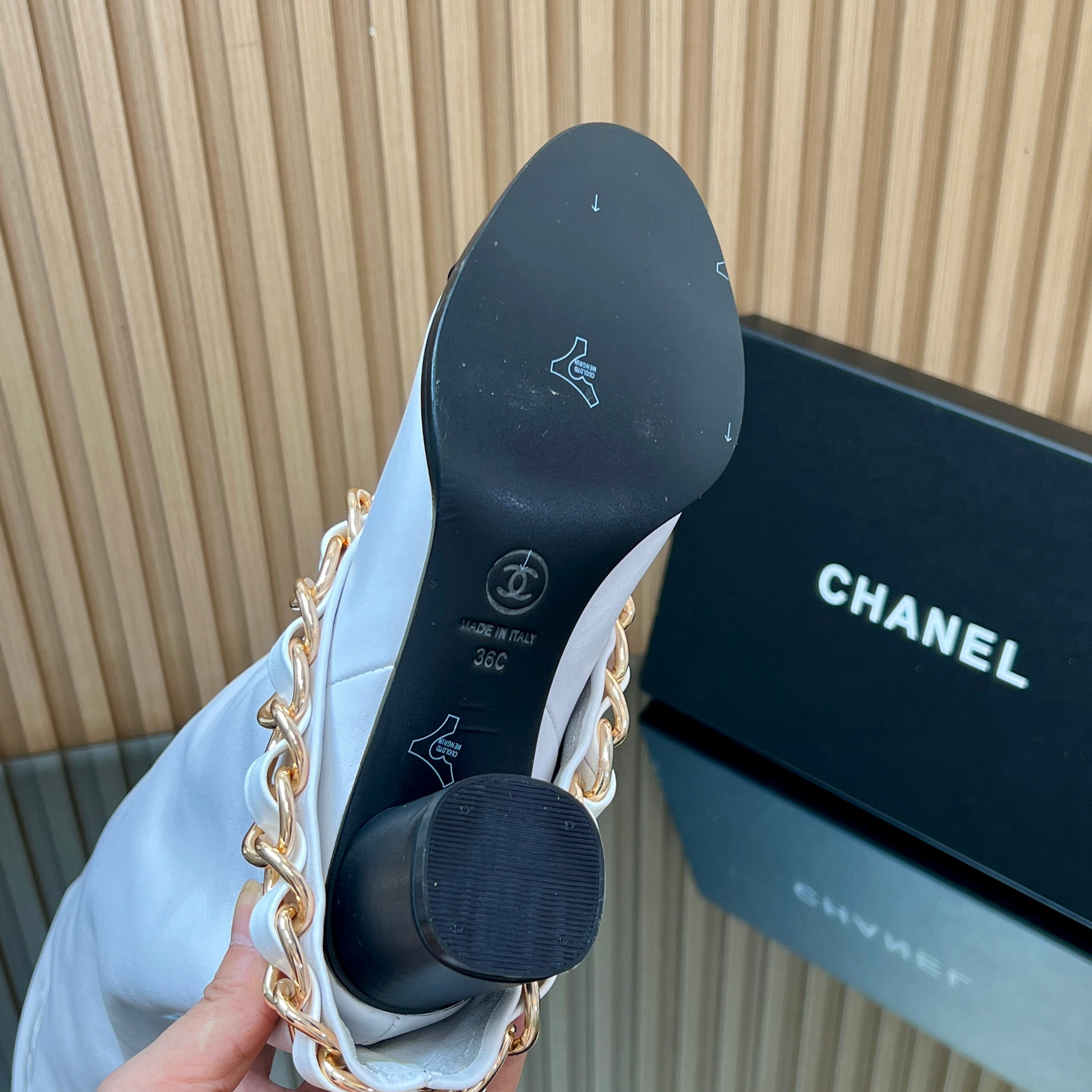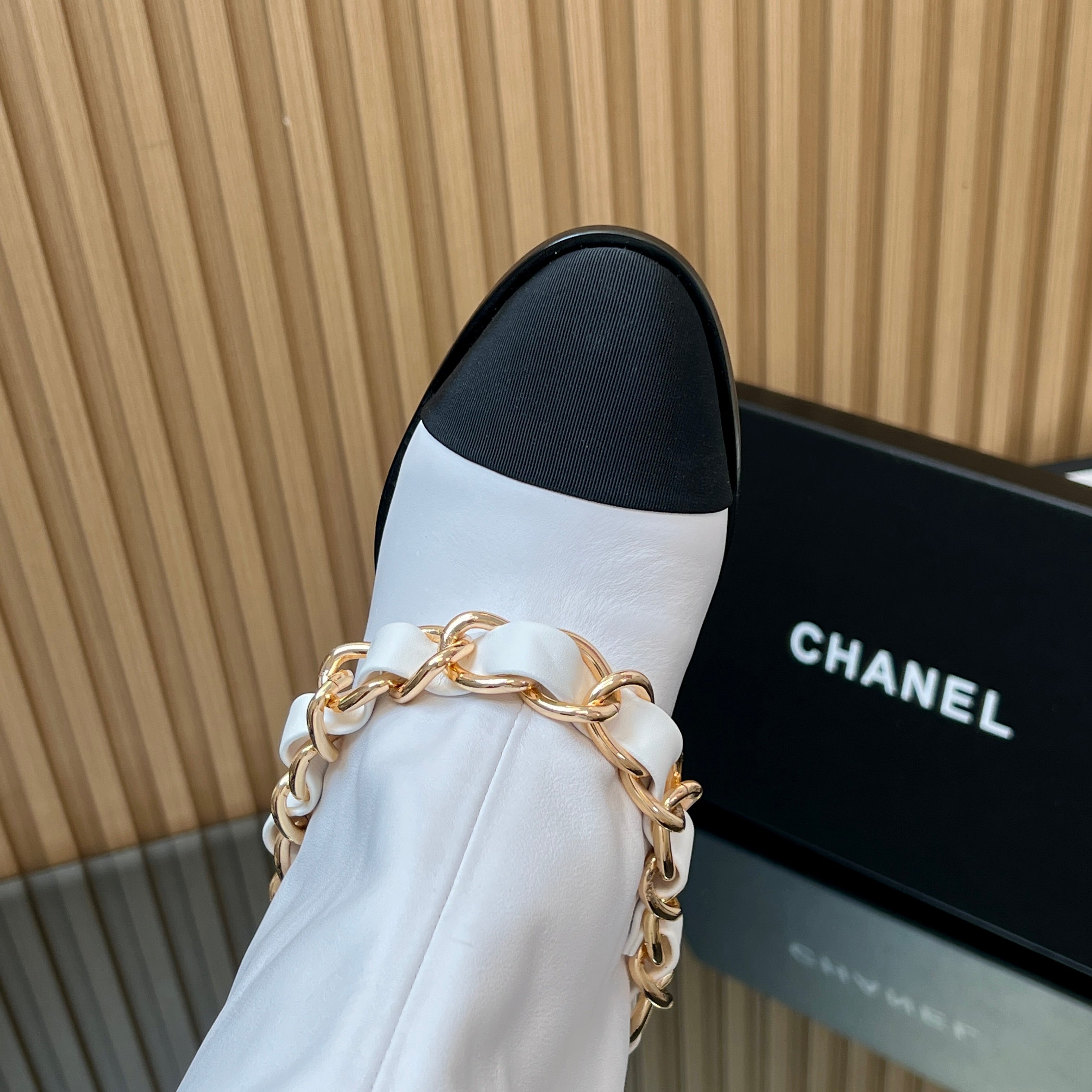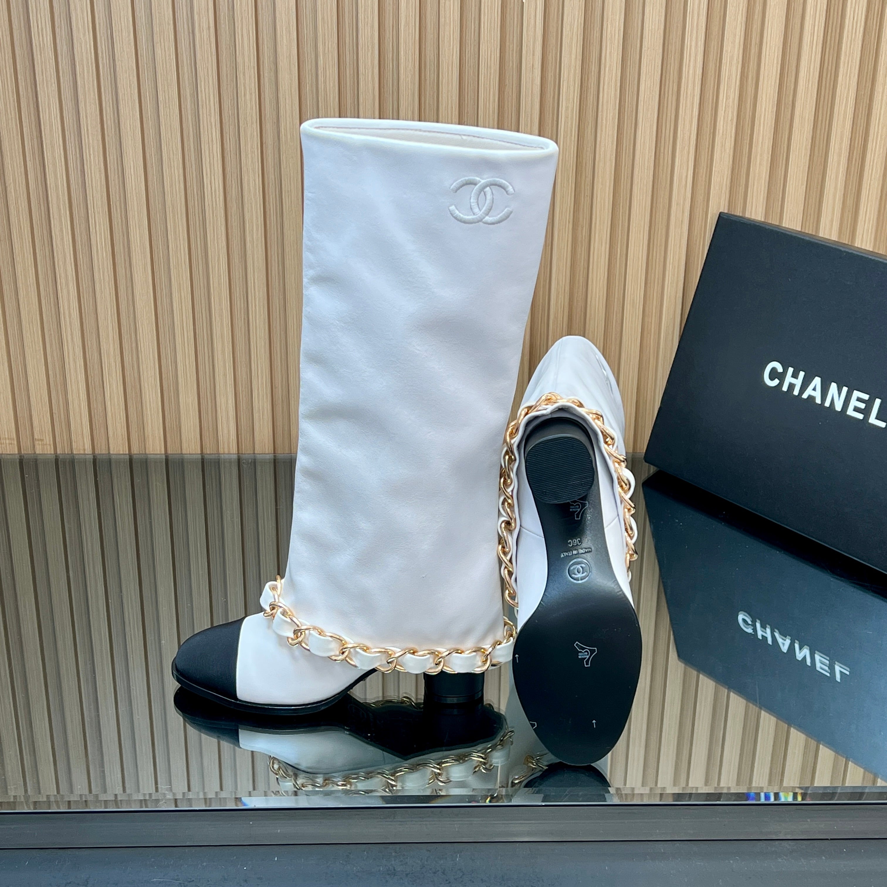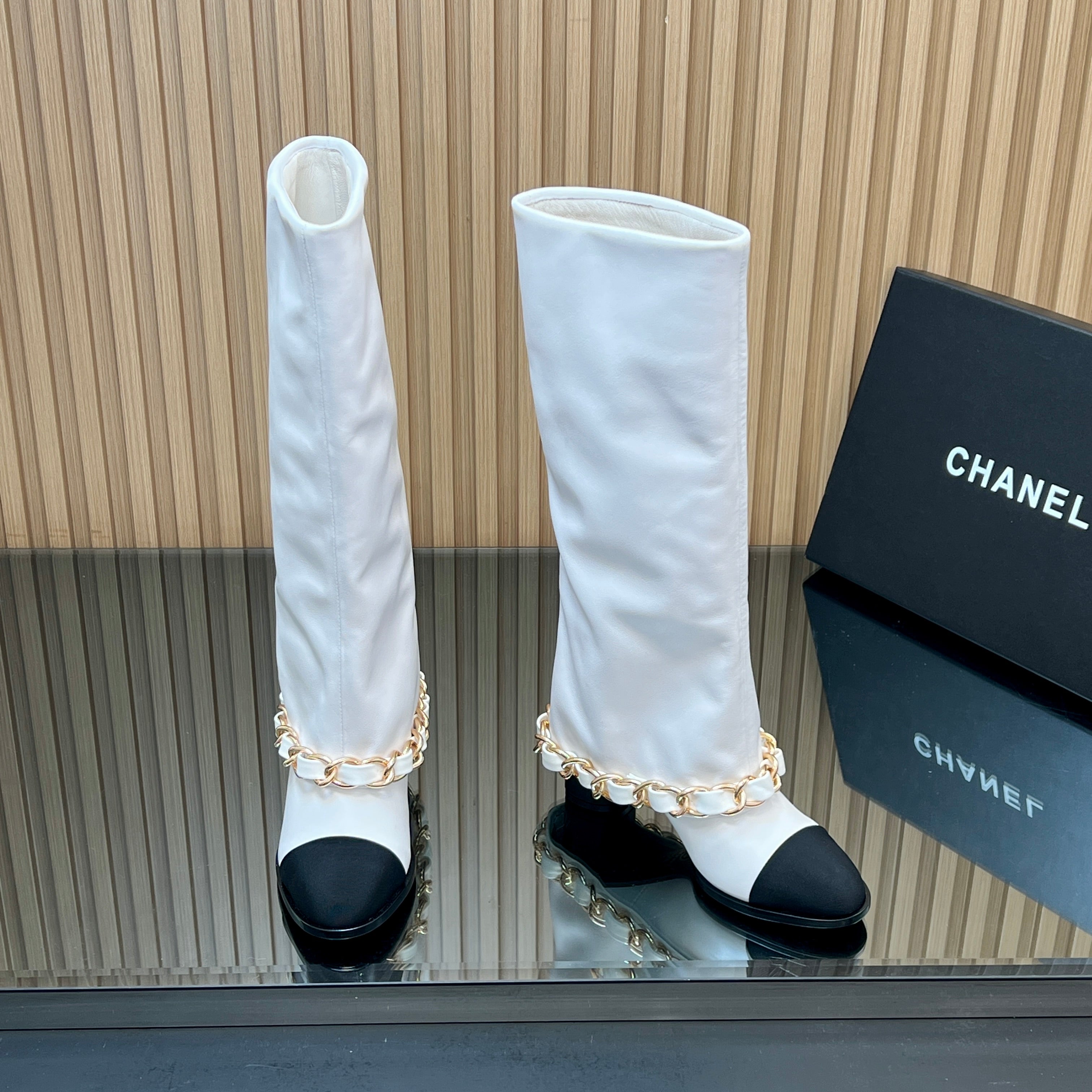 CHANEL 25S KNEE-HIGH HEELED BOOTS 65MM IN WHITE CALFSKIN GOLD HARDWRE