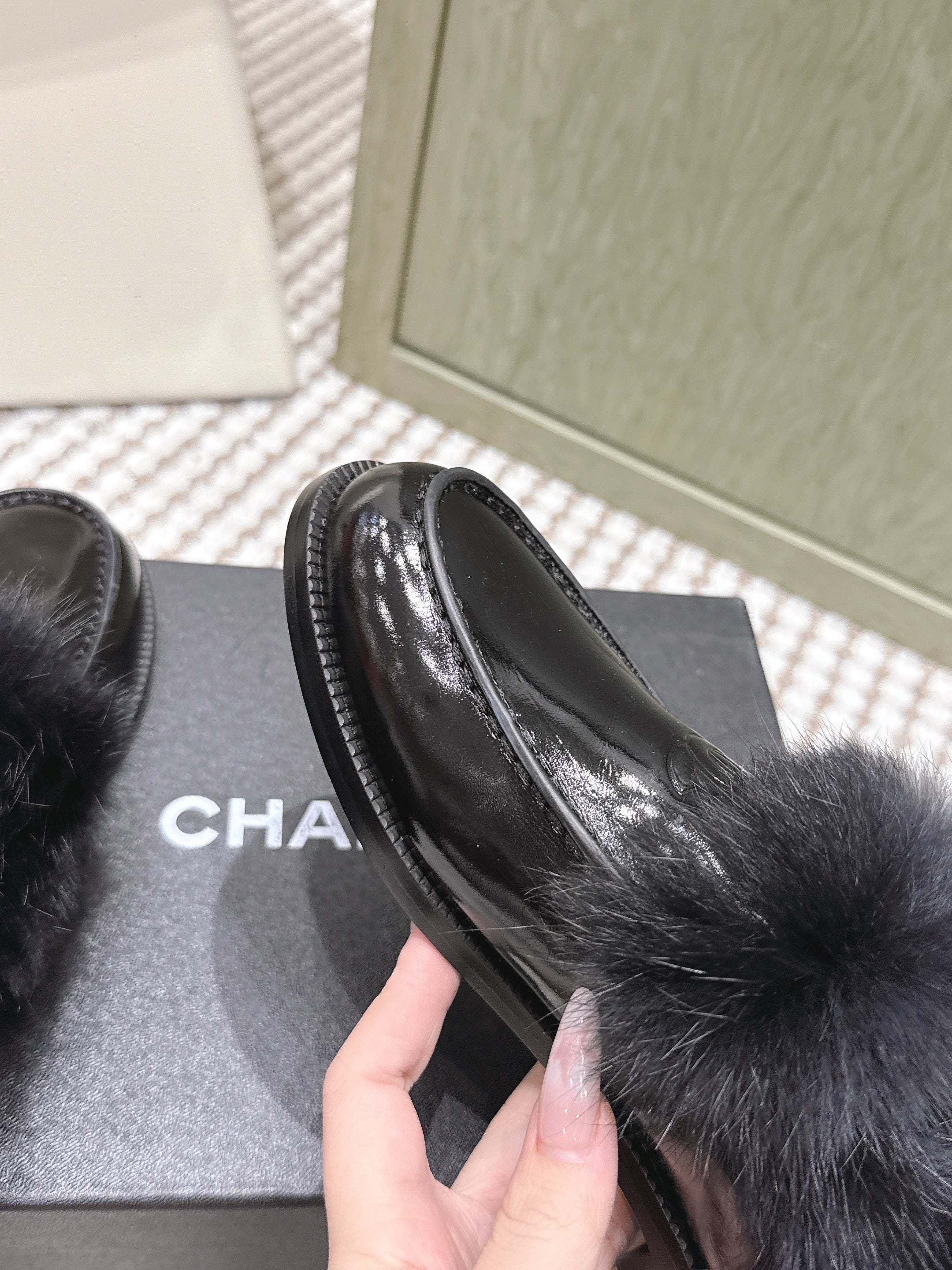 CHANEL 25S LOAFERS MOCCASIN IN BLACK GLOSSY CALFSKIN WITH MINK FUR LINING