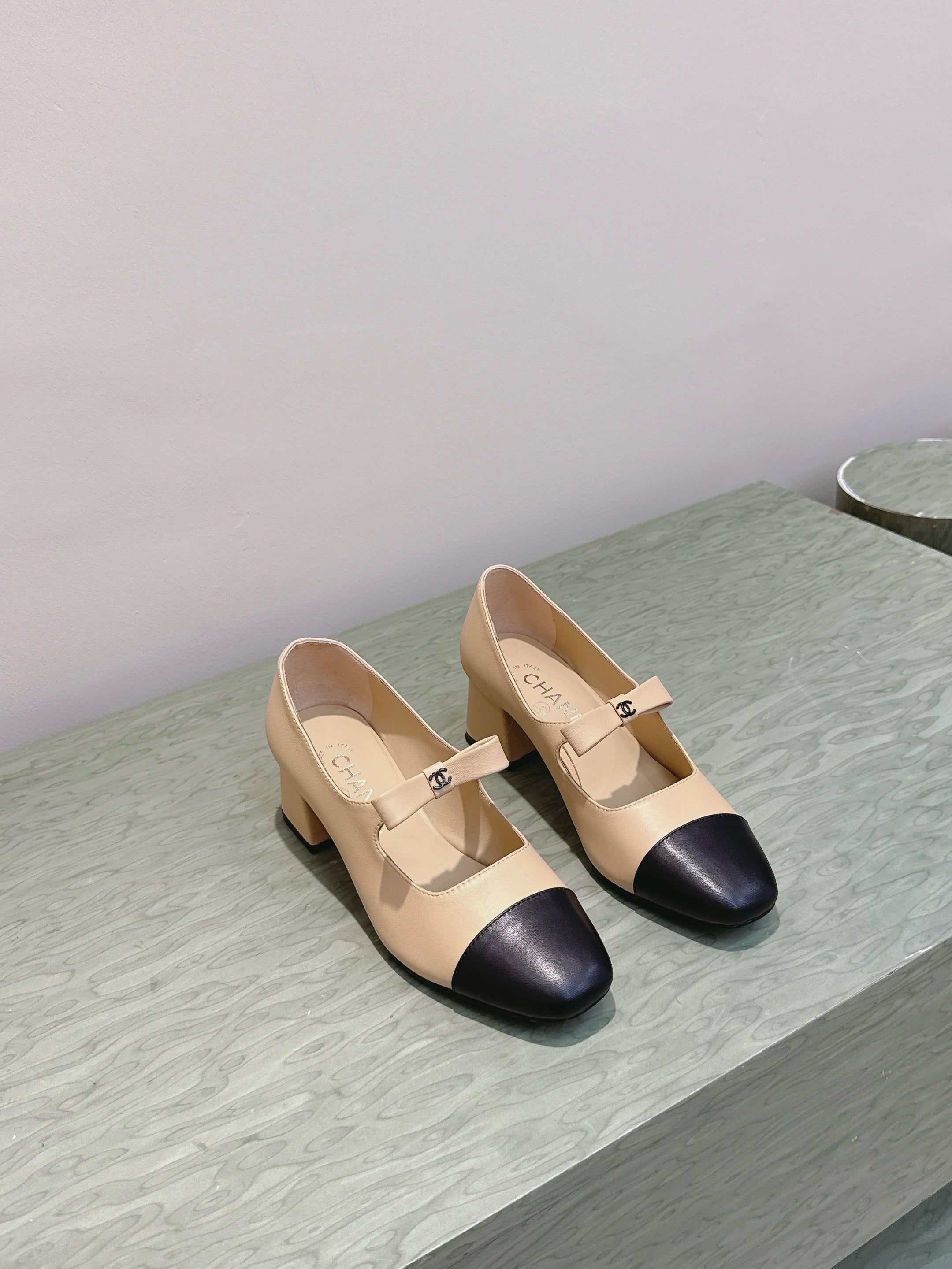CHANEL 25S MARY JANE SHOES IN BEIGE SHEEPSKIN MIX BLACK GLOSSY WITH BOW