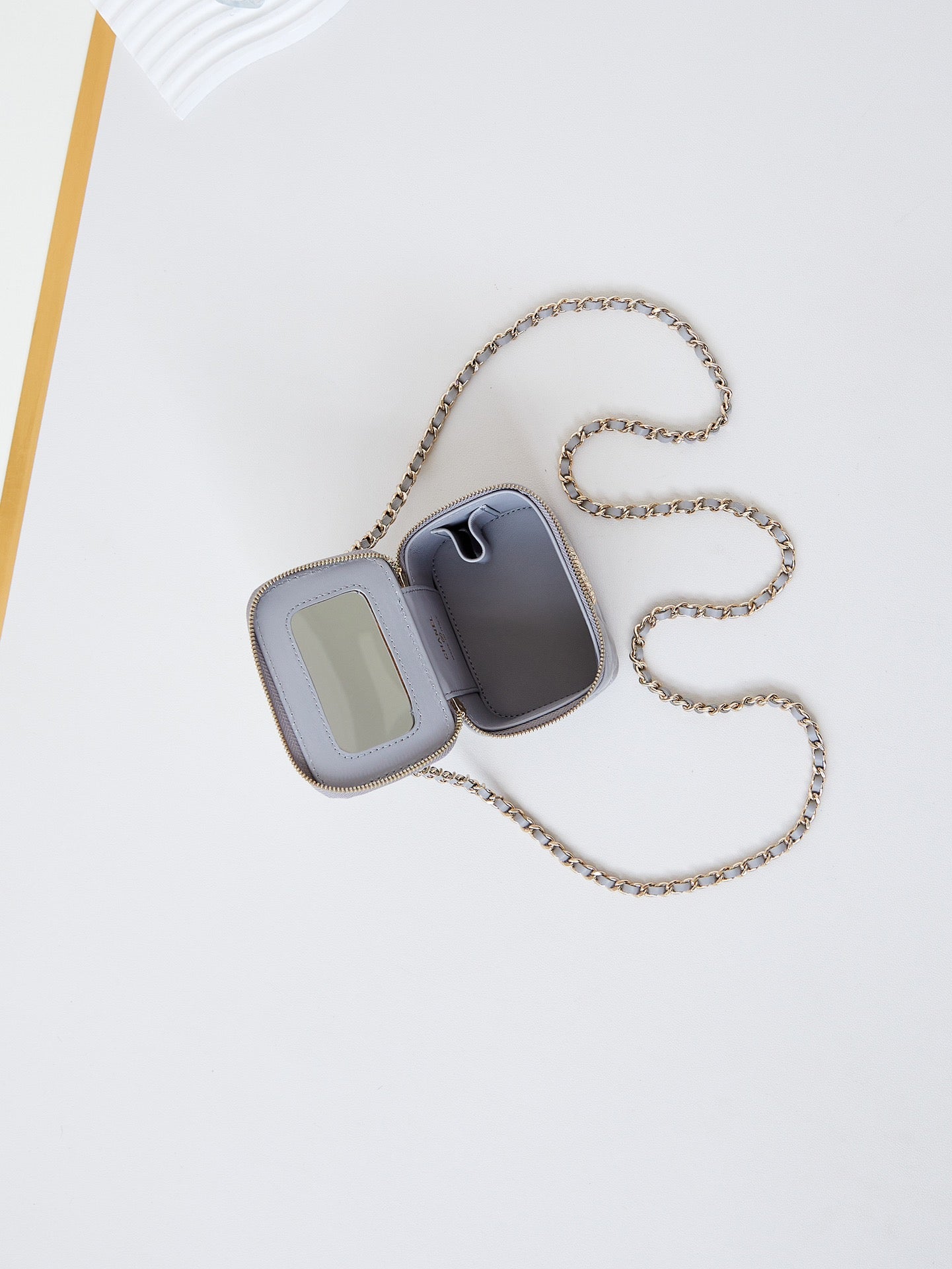 CHANEL 25S MINI VANITY BAG 11 CM IN GREY LAMBSKIN WITH CRYSTAL-EMBELLISHED CC LOGO