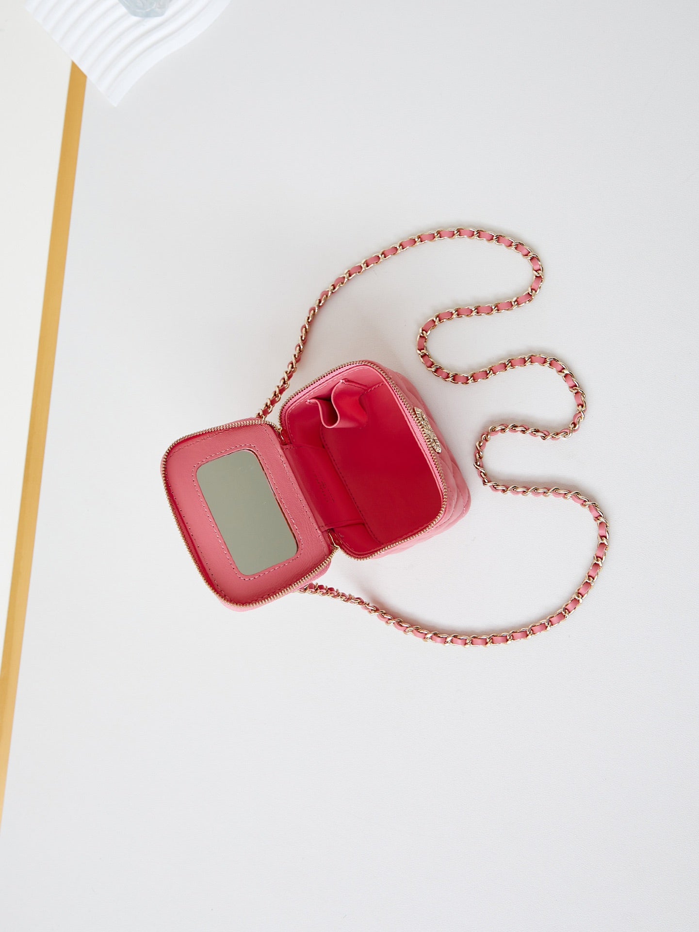 CHANEL 25S MINI VANITY BAG 11 CM IN PEACH PINK LAMBSKIN WITH CRYSTAL-EMBELLISHED CC LOGO
