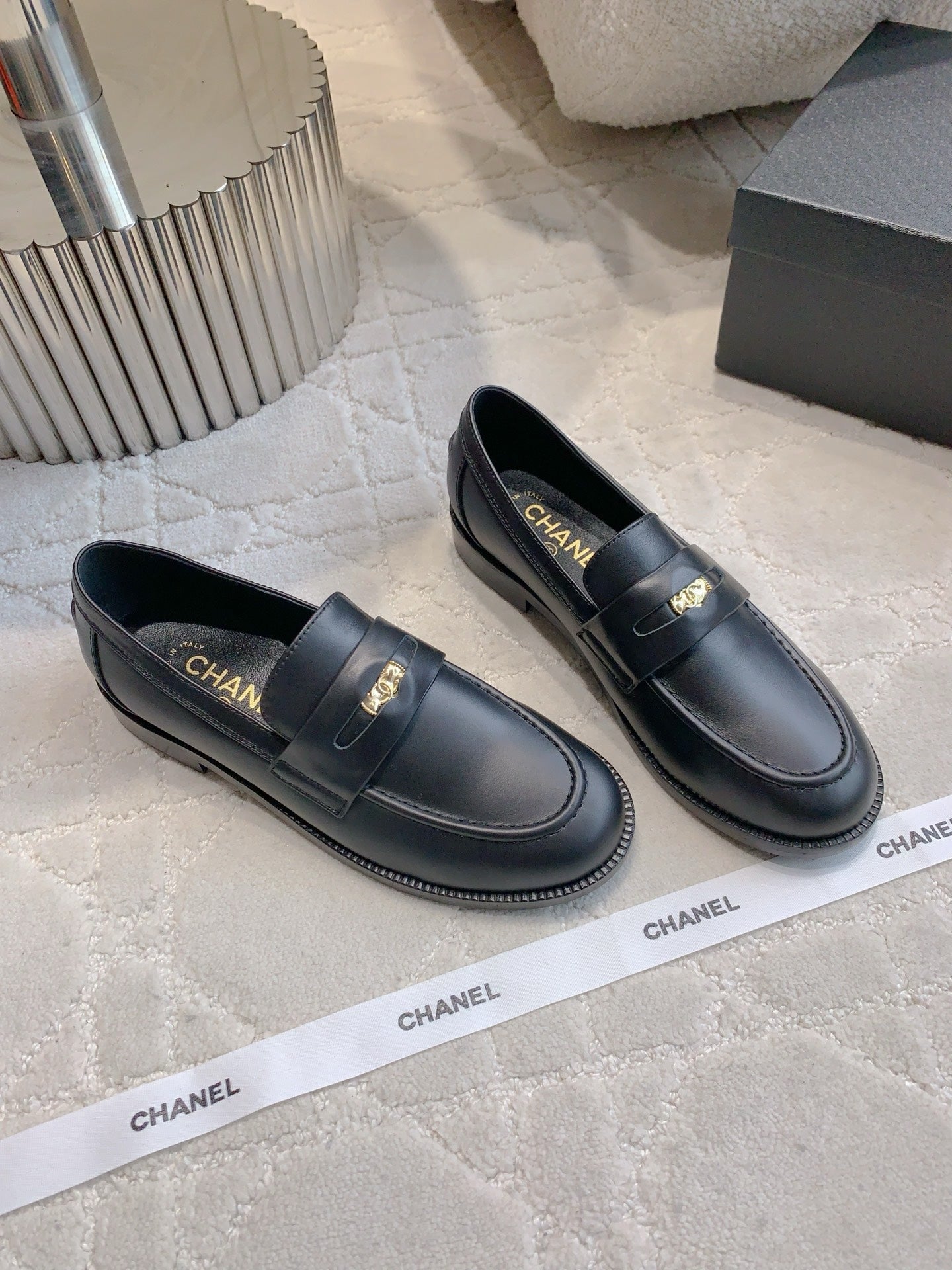 CHANEL 25S MOCCASINS IN BLACK CALFSKIN GOLD HARDWARE