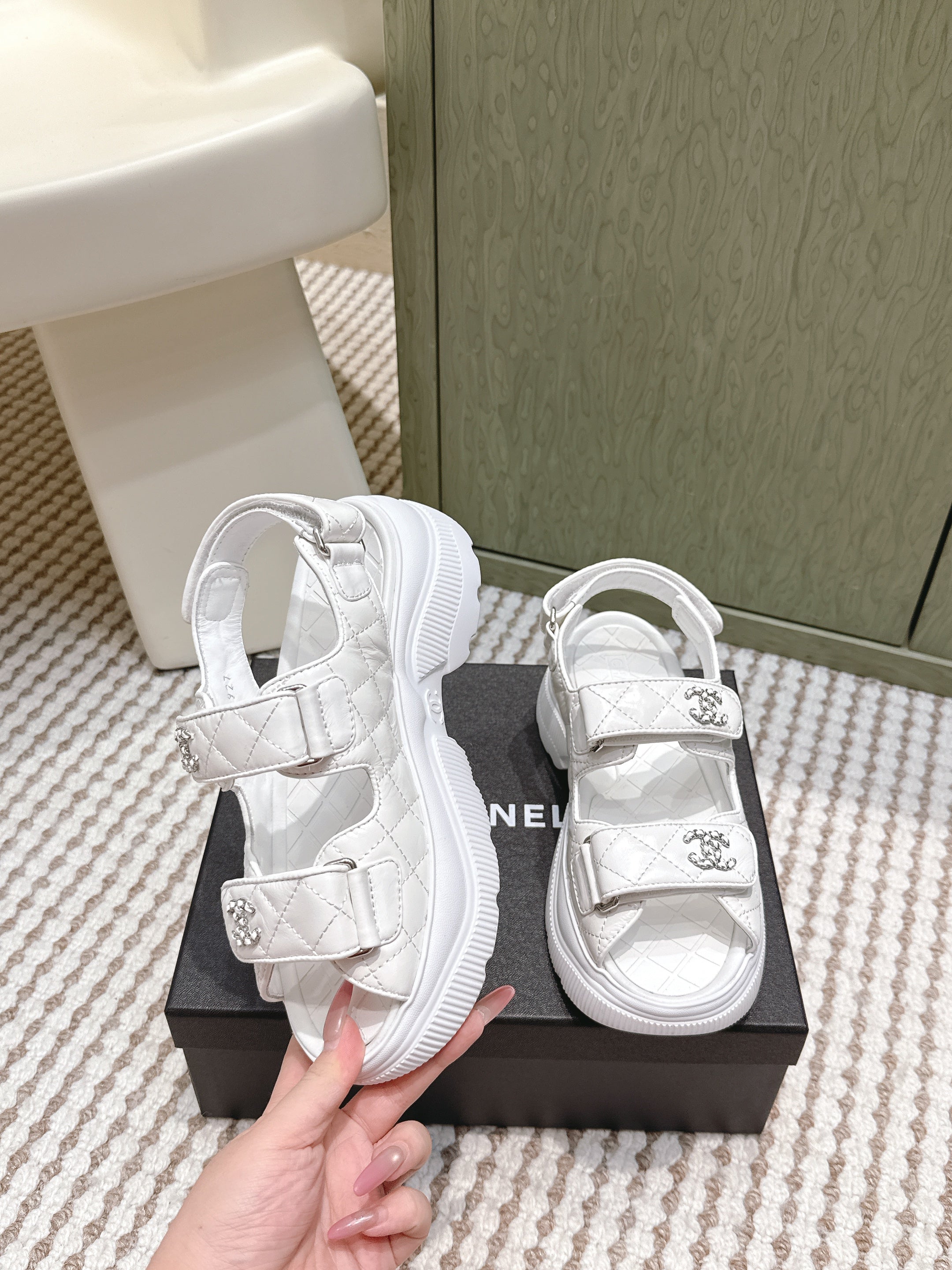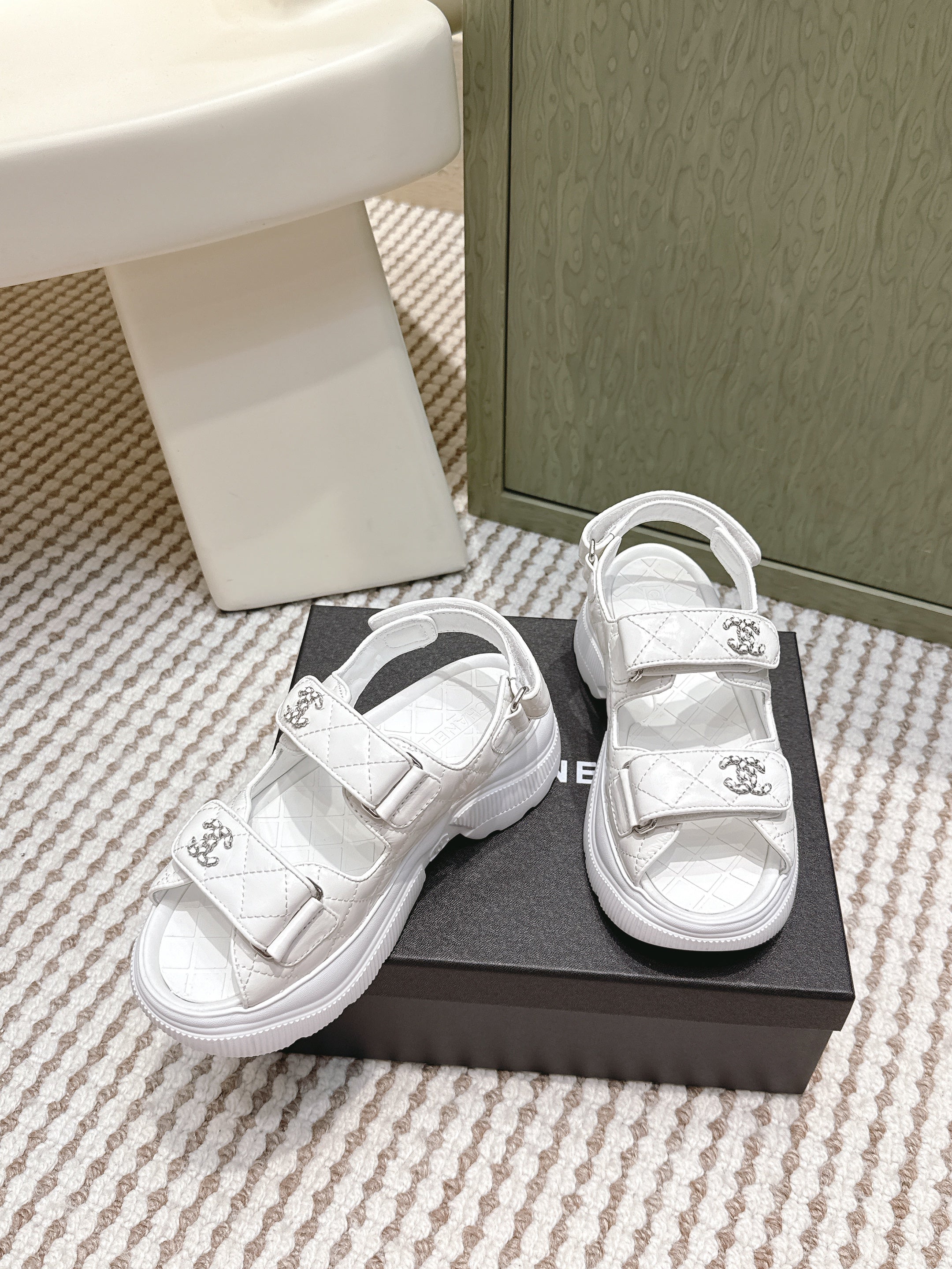 CHANEL 25S SANDALS IN WHITE PATENT CALFSKIN SILVER HARDWARE