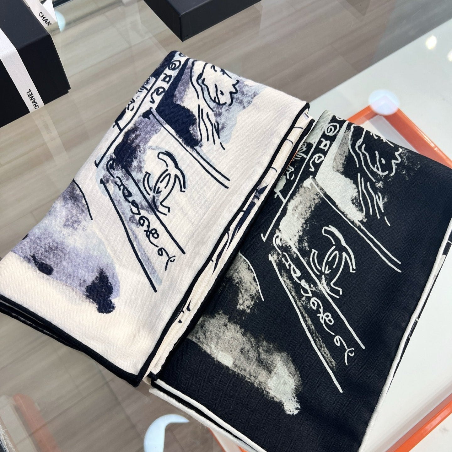 CHANEL 25S SCARF 135 IN CASHMERE SILK 737229
