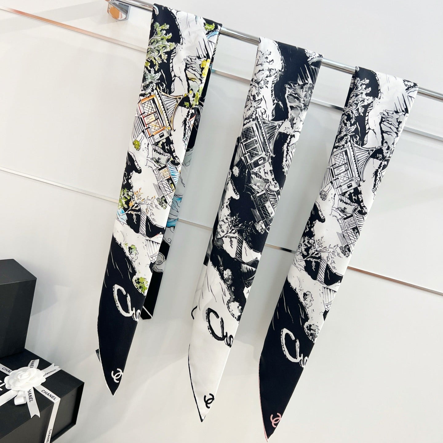 CHANEL 25S SCARF 90 IN SILK 735864
