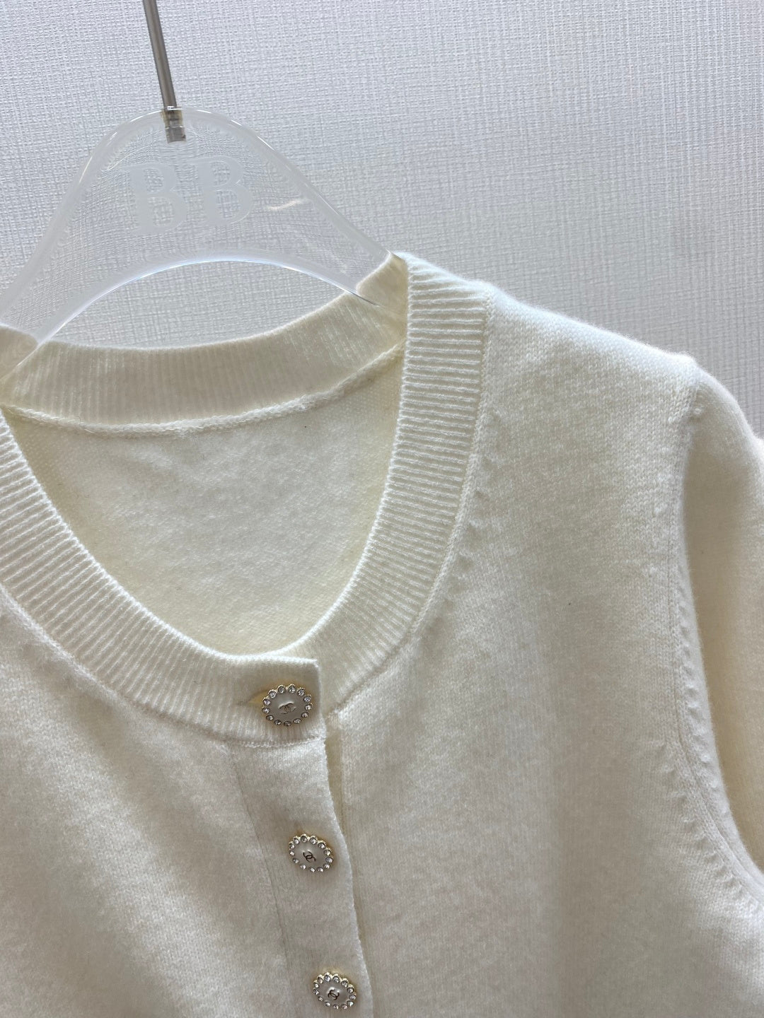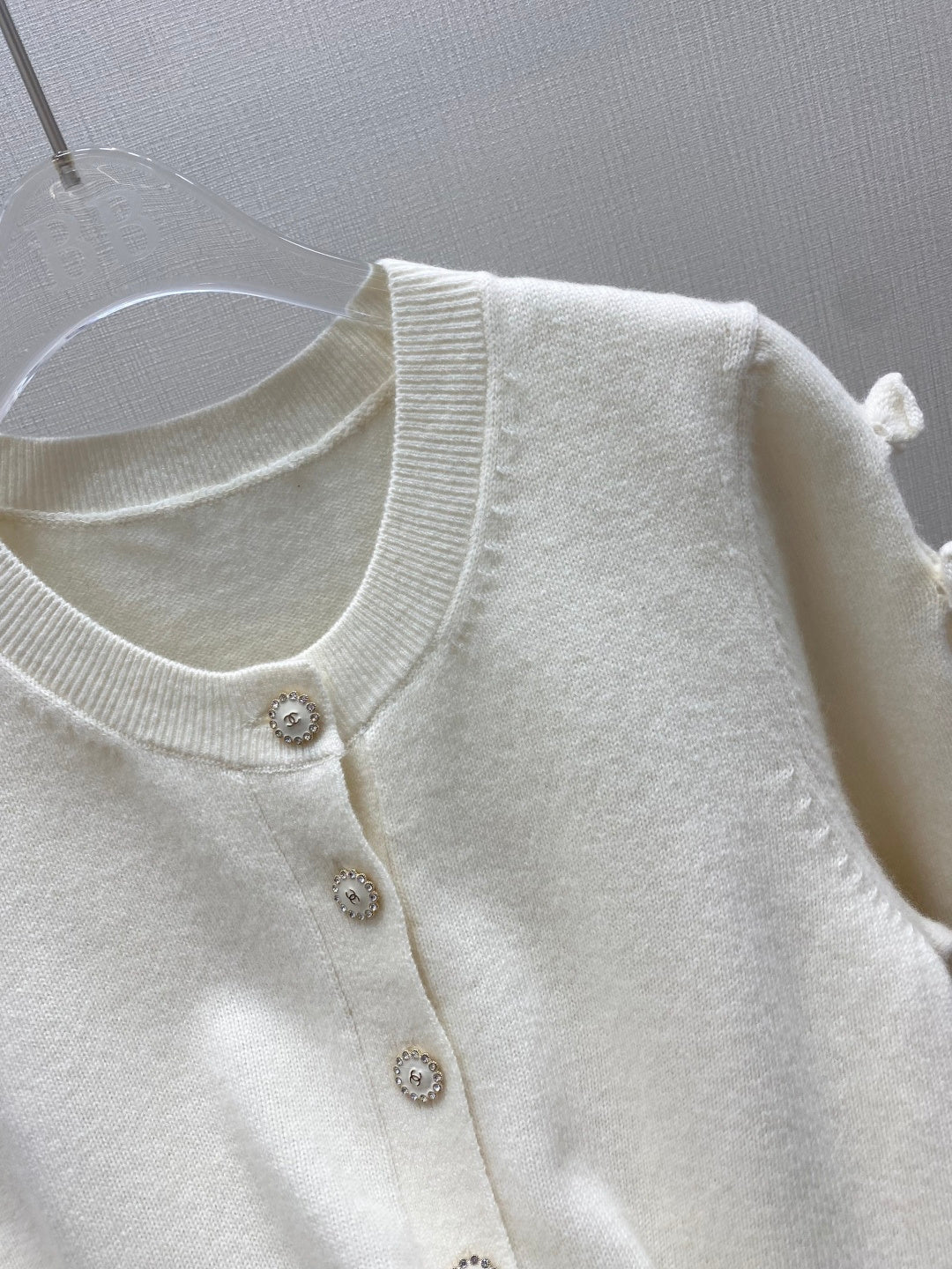 CHANEL 25S SHORT-SLEEVE ROUND-NECK KNIT CARDIGAN 317