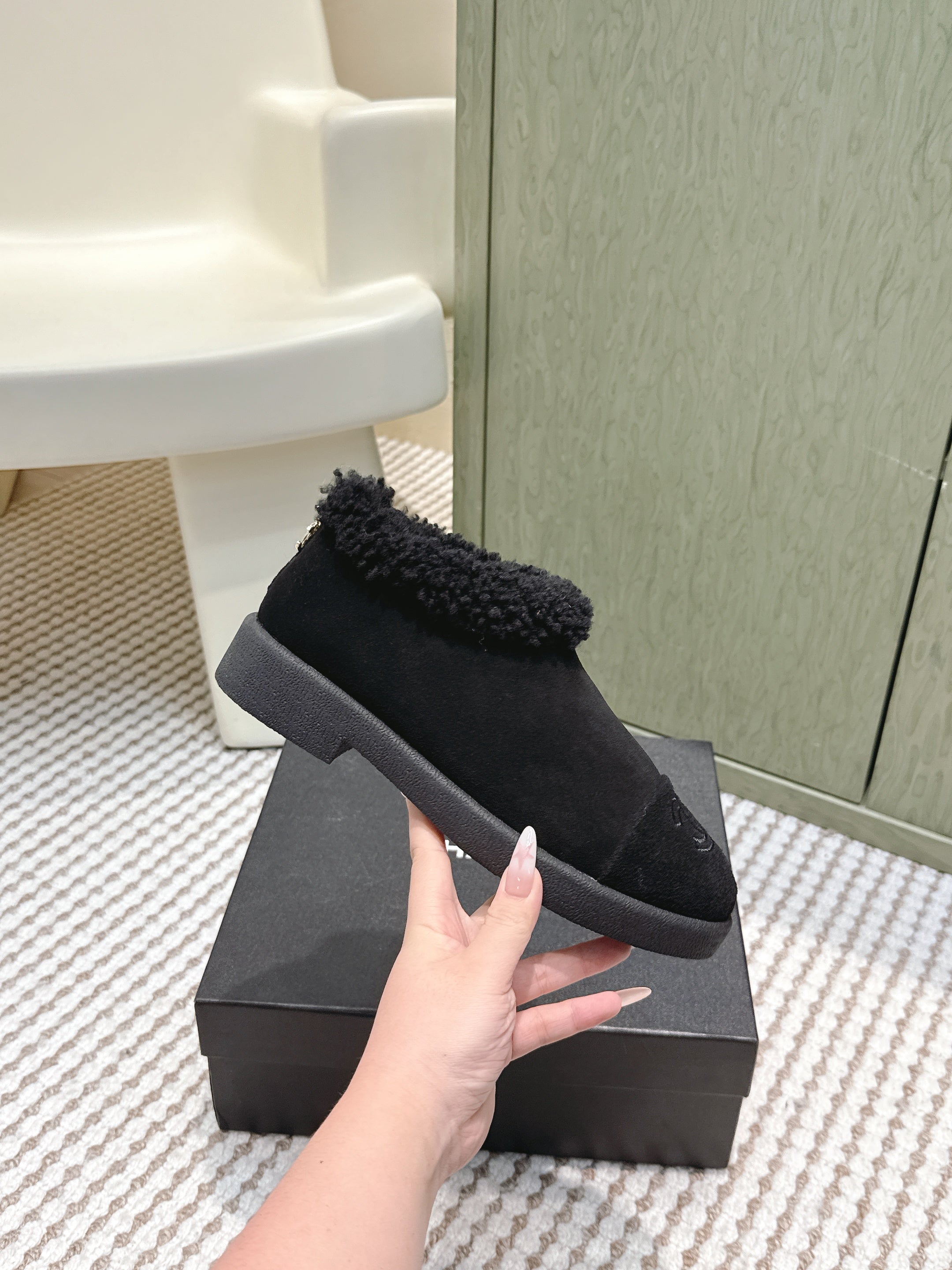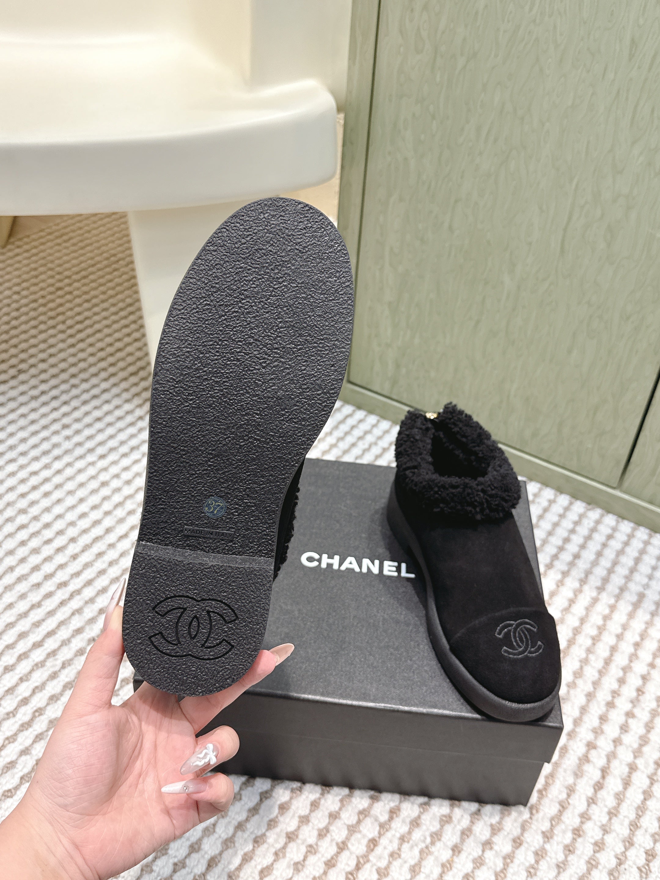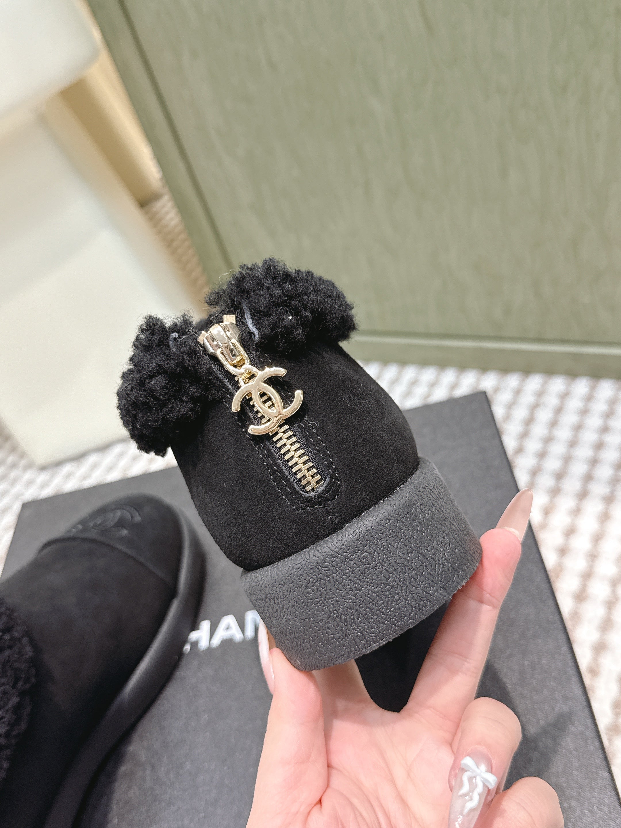 CHANEL 25S SHORT SUEDE BOOTS IN BLACK WITH SHEEPSKIN LINING