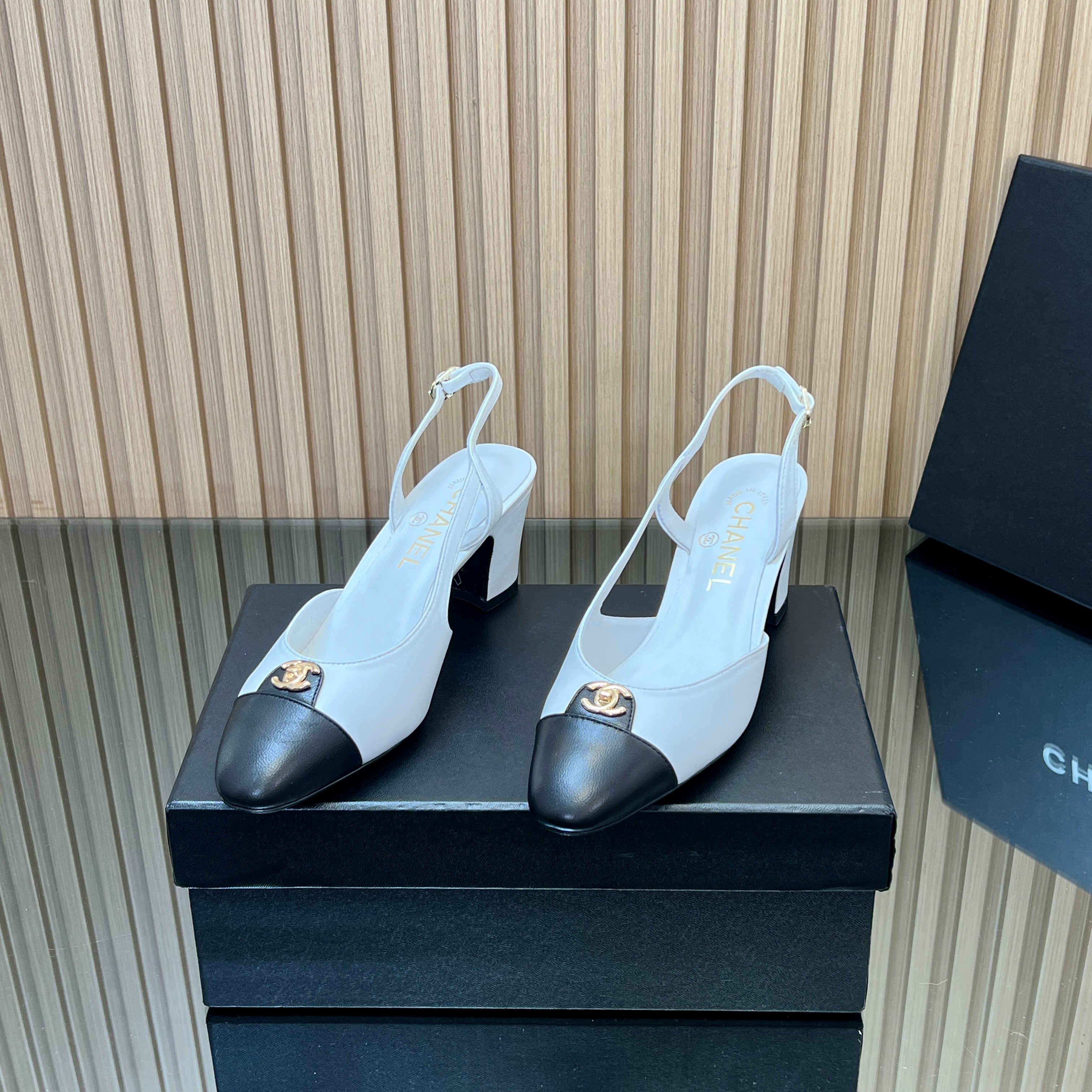 CHANEL 25S SLINGBACK SHOE LOGO 65MM IN WHITE CALFSKIN GOLD HARDWRE
