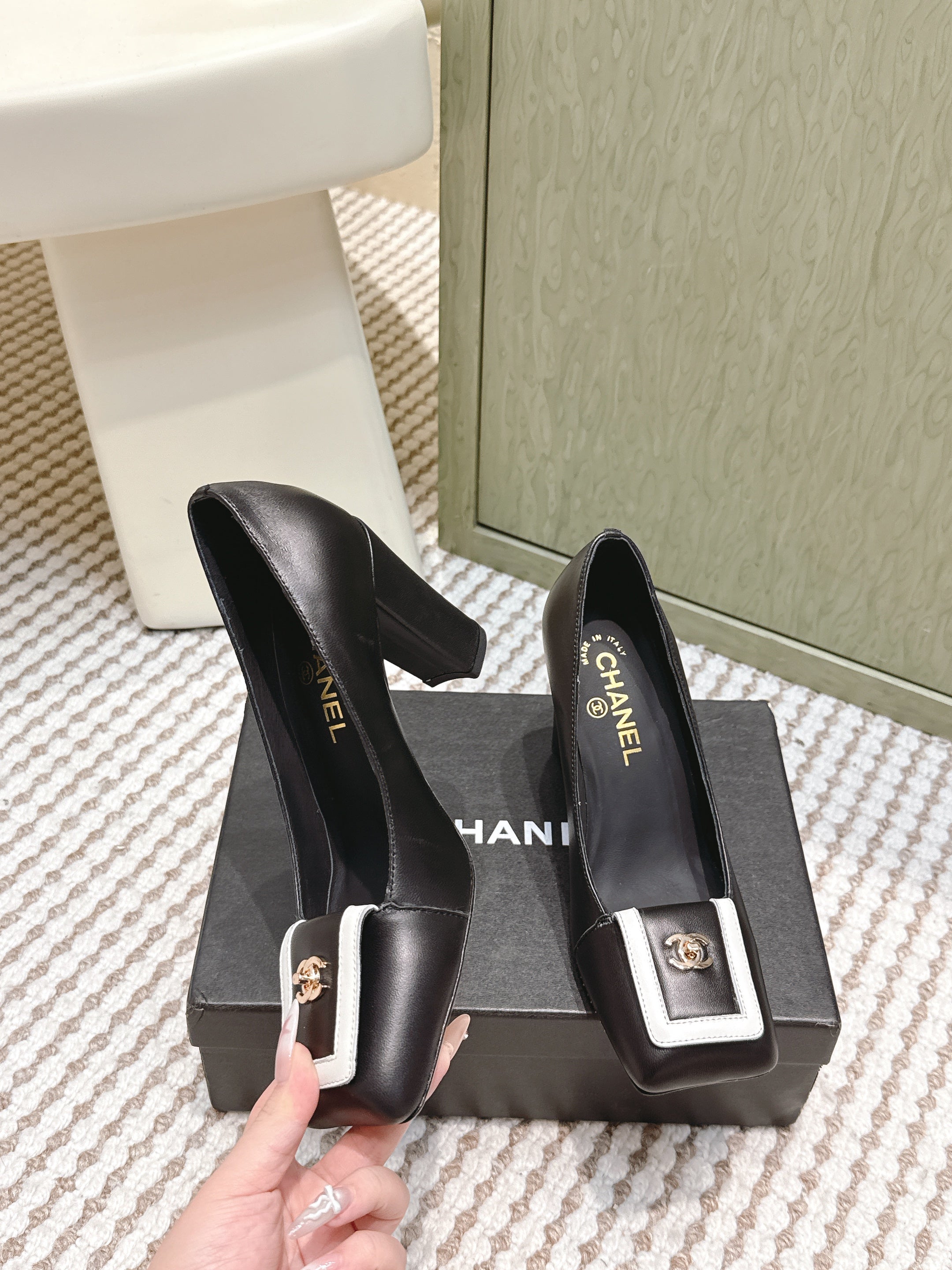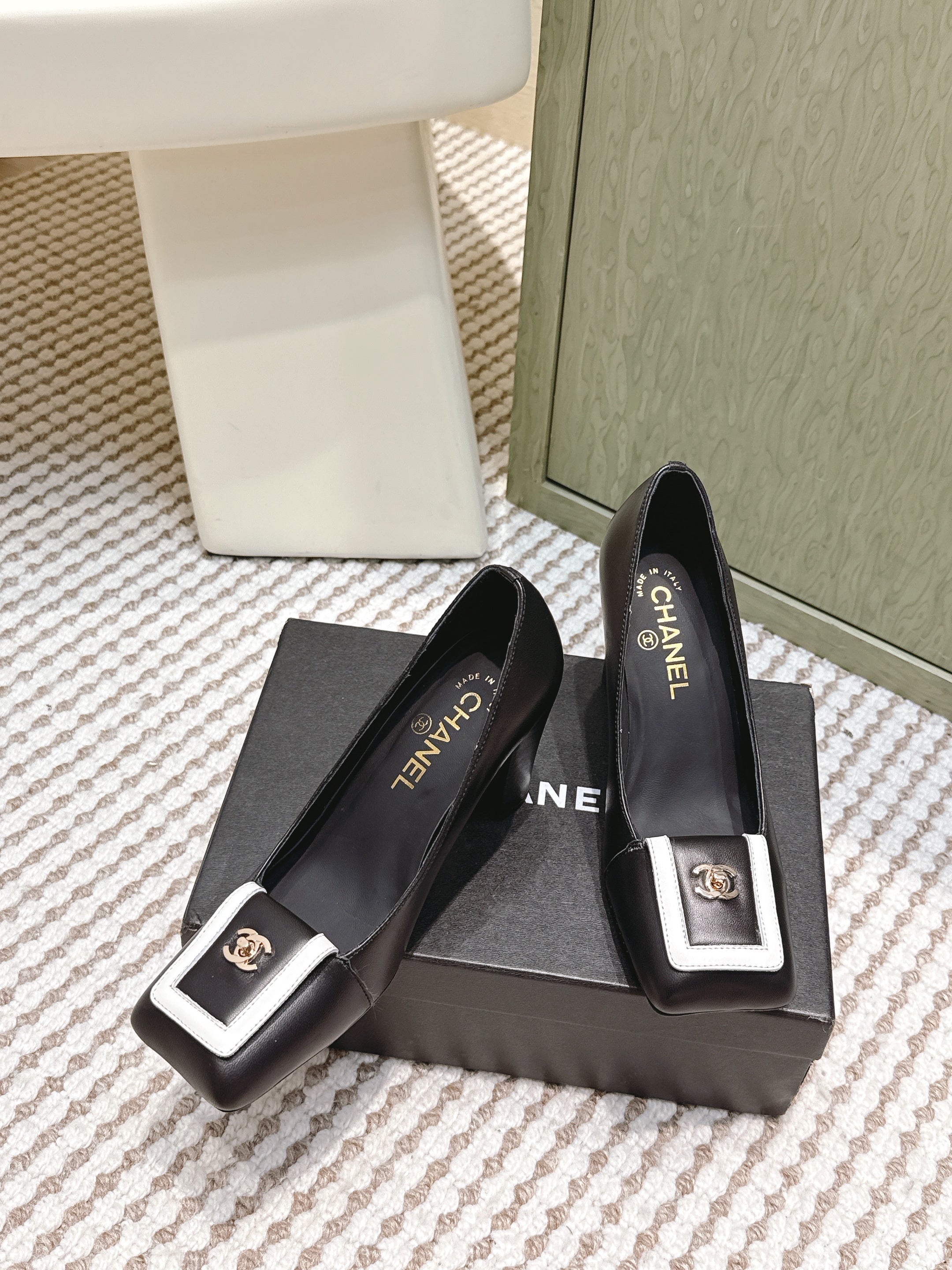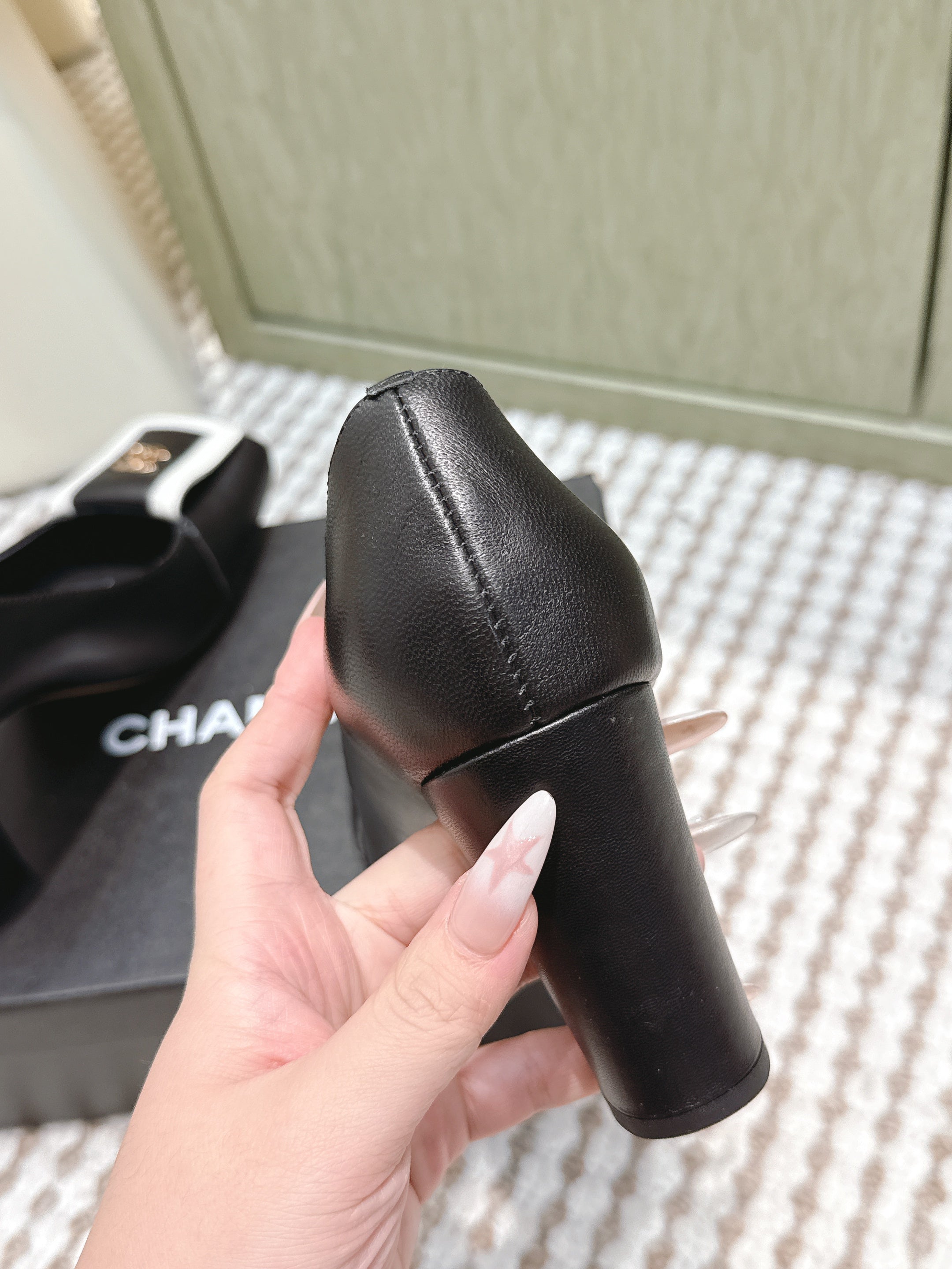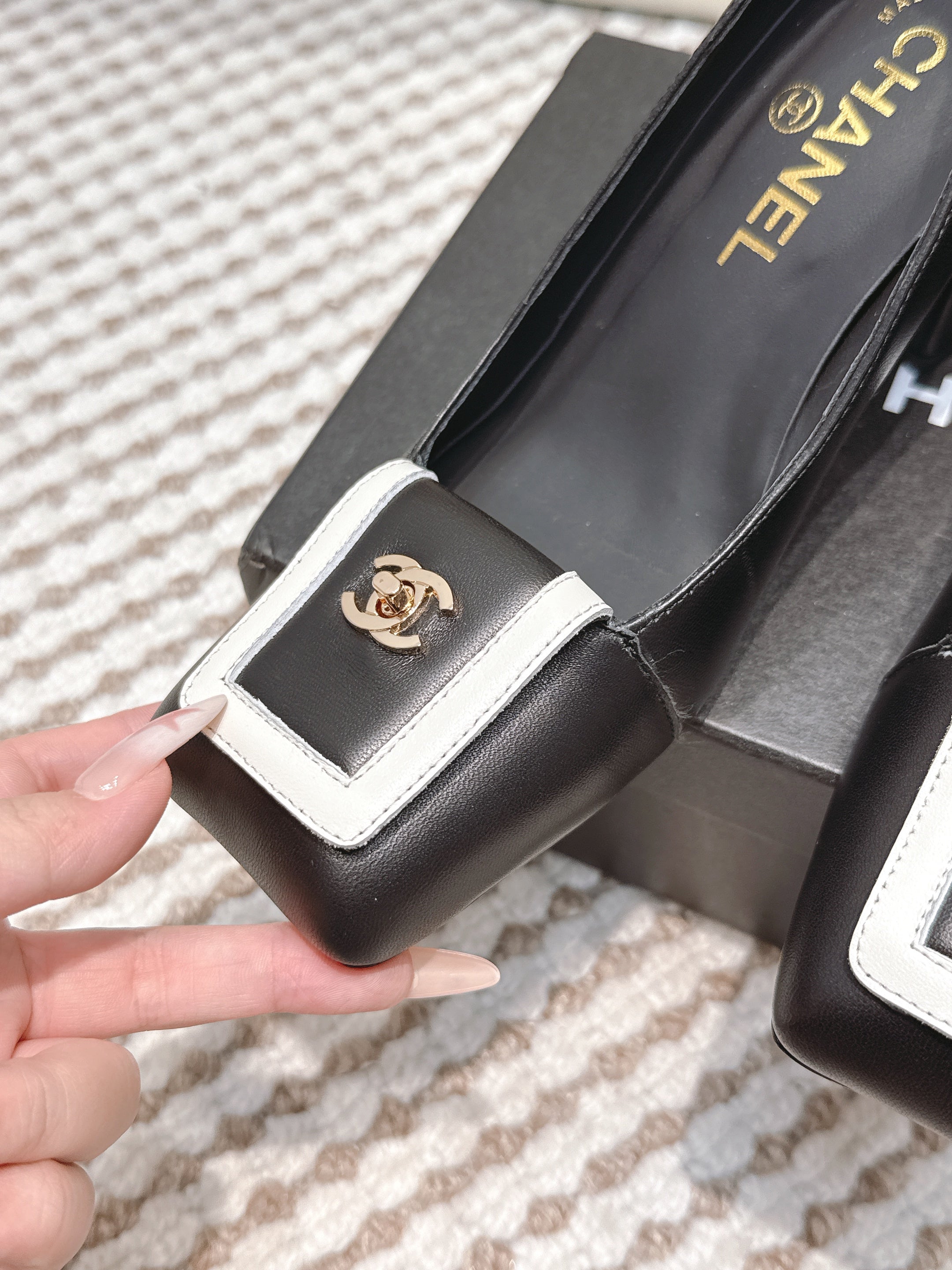 CHANEL 25S SLINGBACK SHOES 90MM IN BLACK CALFSKIN SQUARE TOE GOLD HARDWARE
