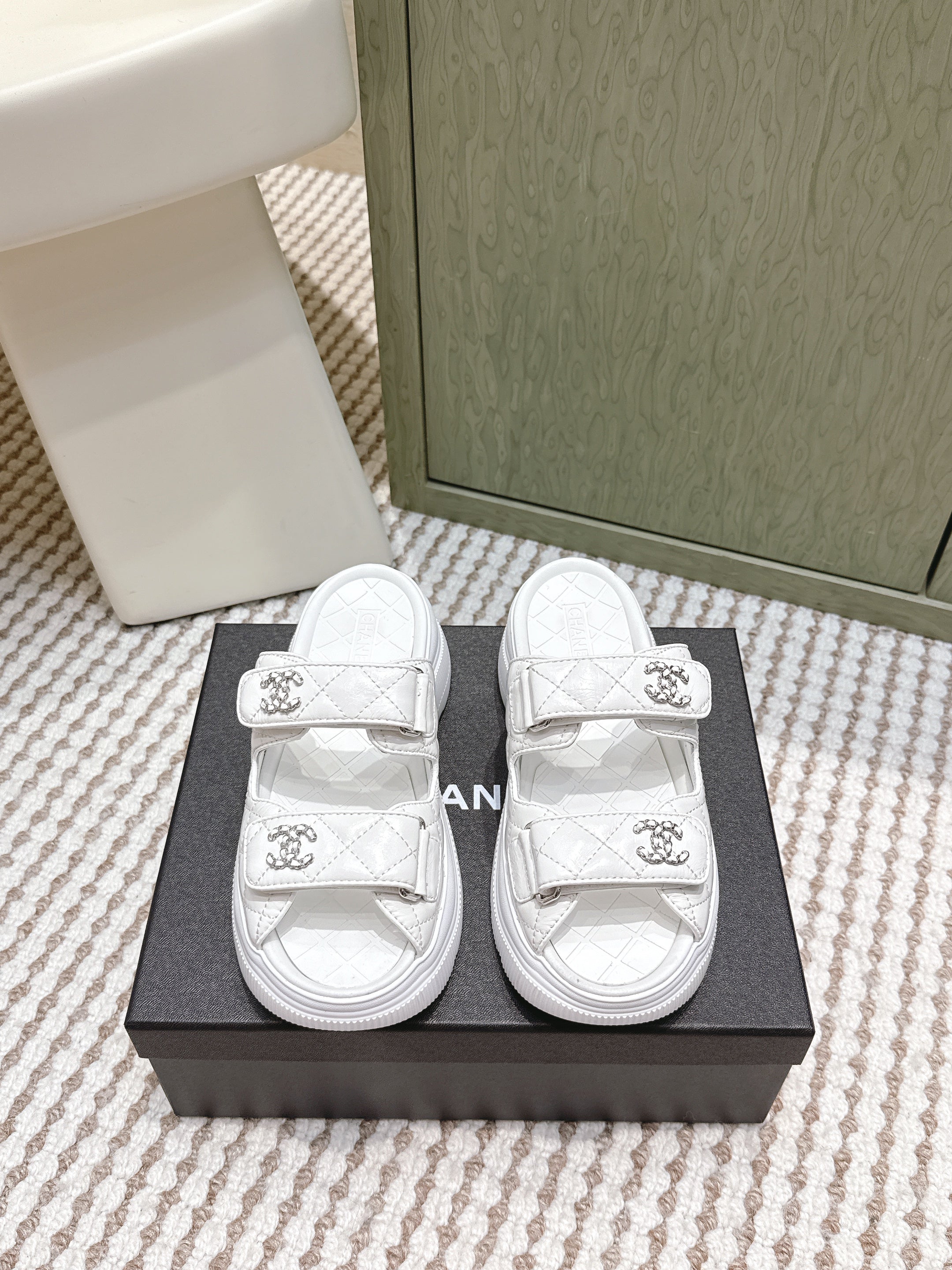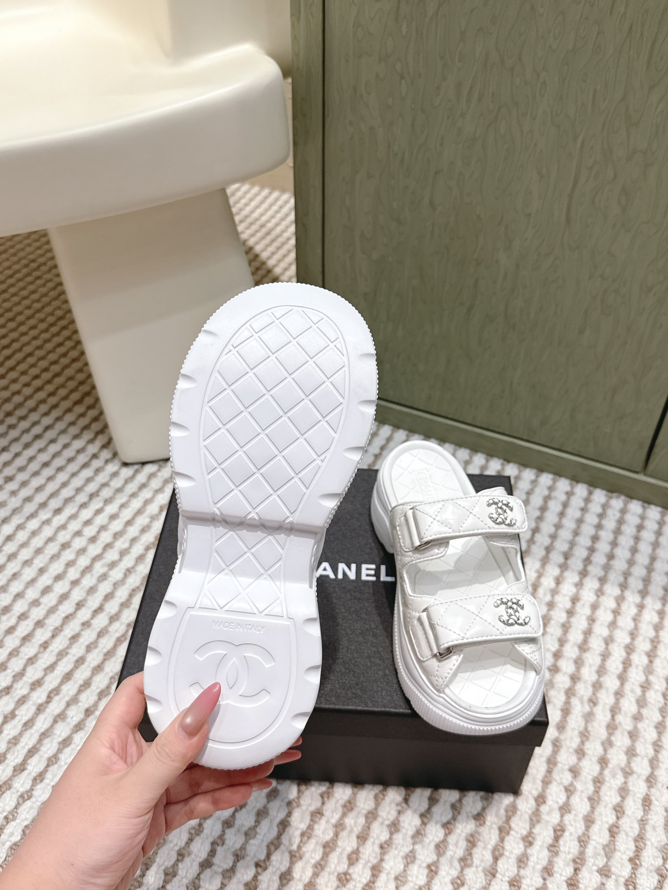 CHANEL 25S STRAP SANDALS IN WHITE PATENT CALFSKIN SILVER HARDWARE