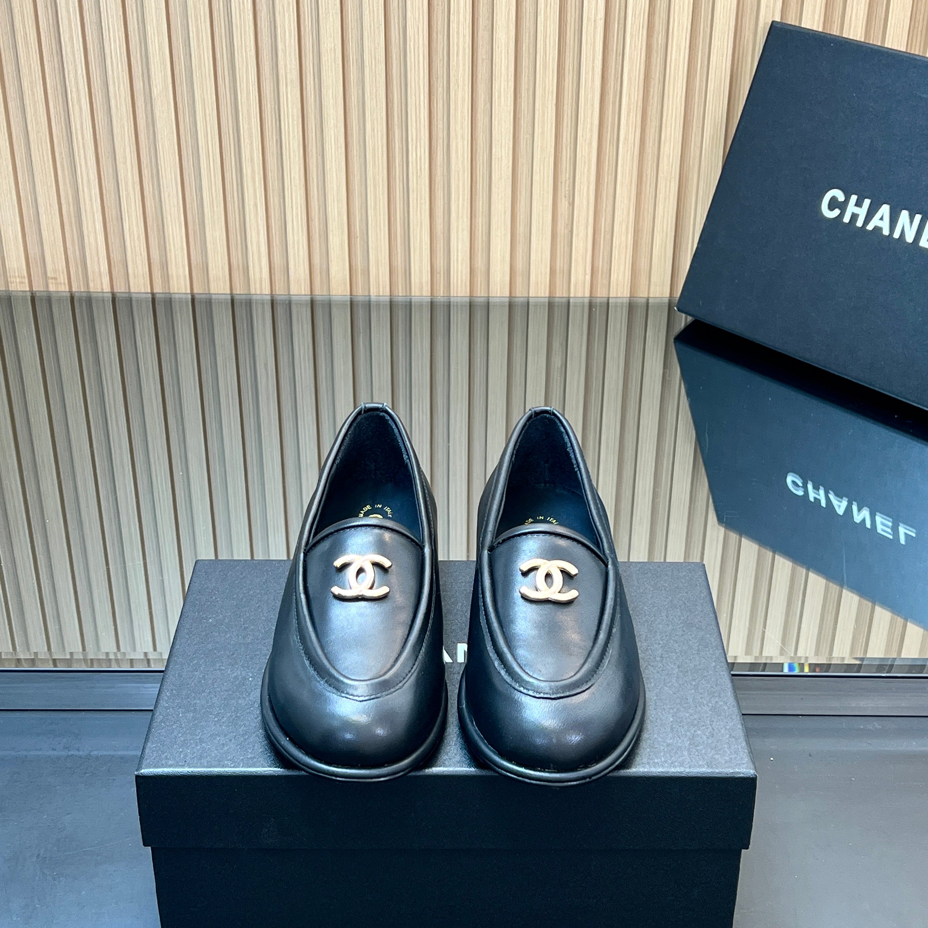 CHANEL 25S TEDDY LOAFER 15MM IN BLACK CALFSKIN GOLD HARDWRE