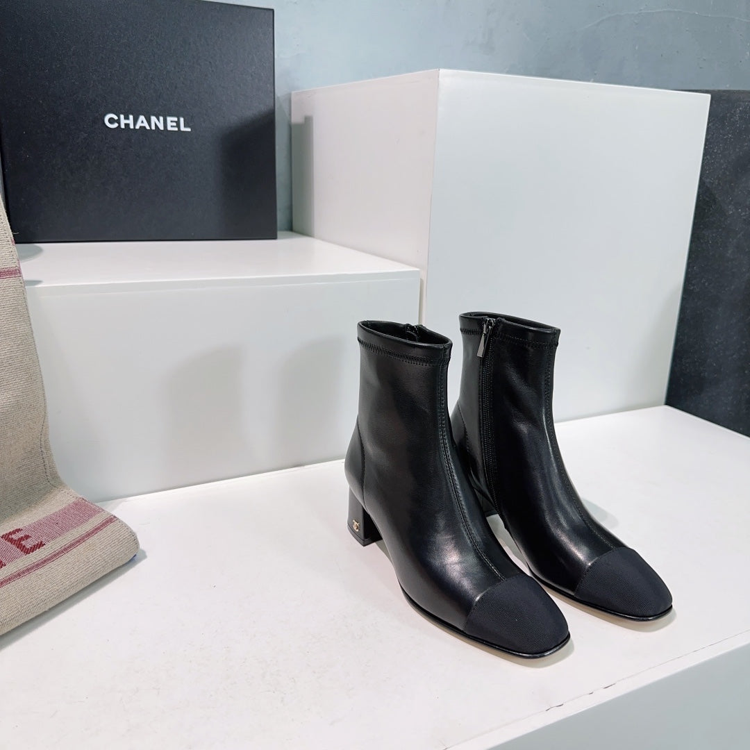 CHANEL ANKLE BOOTS 25S 45 MM IN BLACK LAMBSKIN WITH ZIPPER