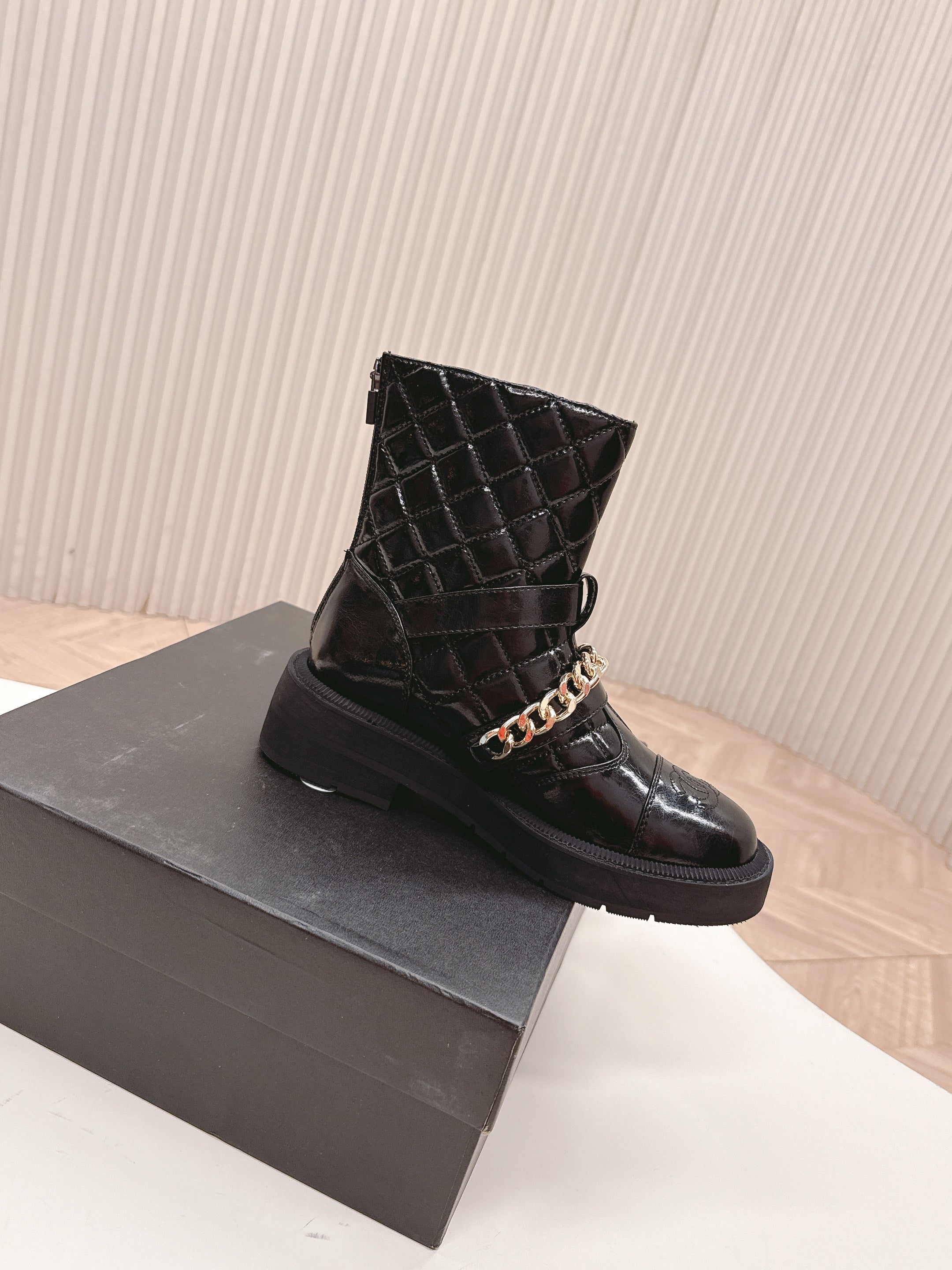 CHANEL ANKLE BOOTS 25S IN BLACK SHINY LAMBSKIN WITH GOLD HARDWARE