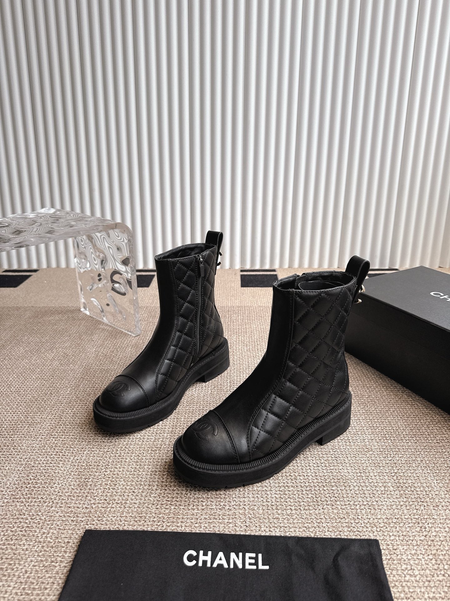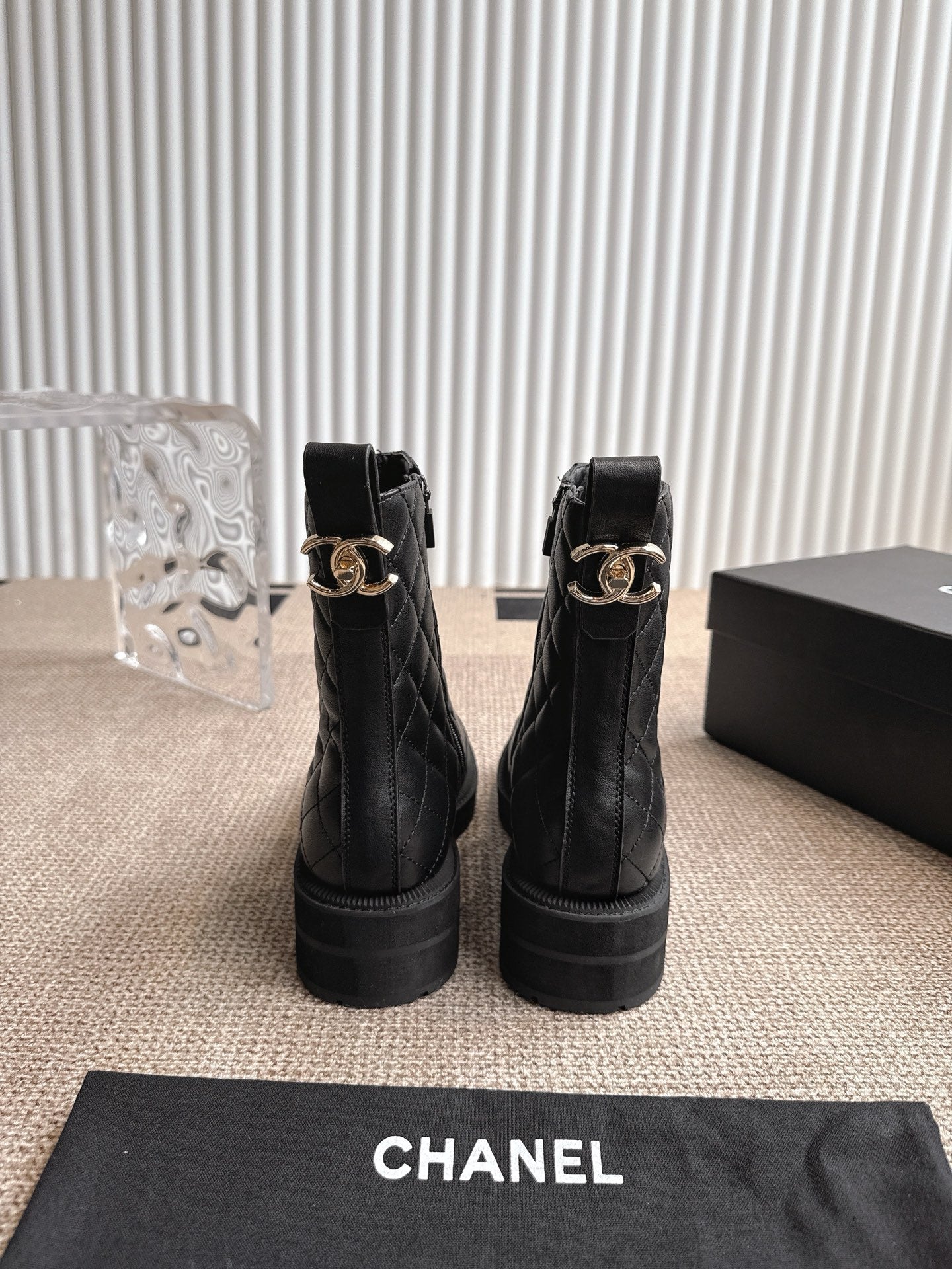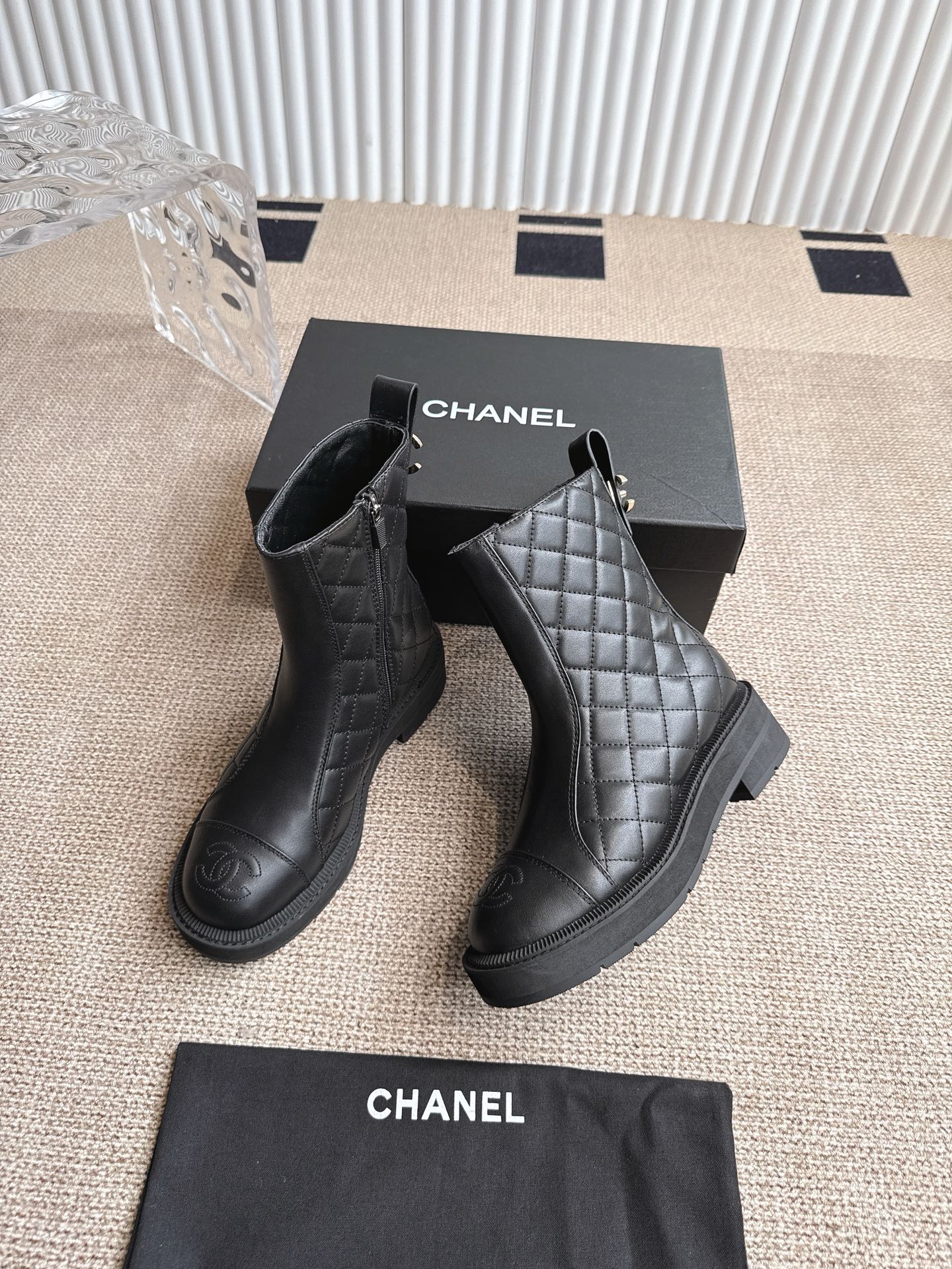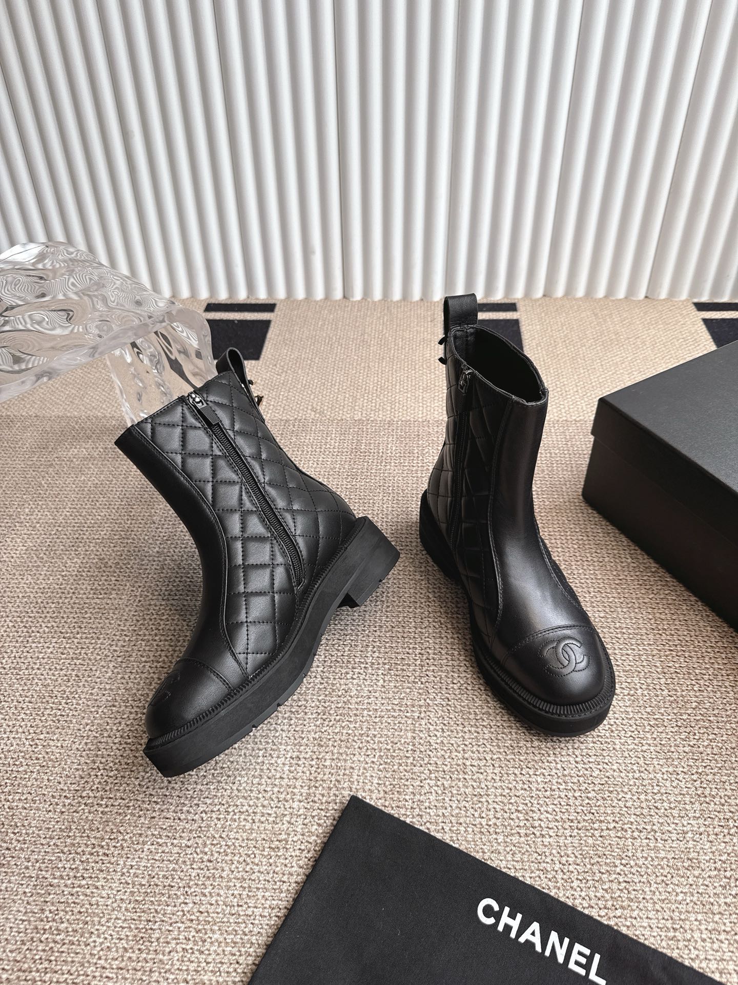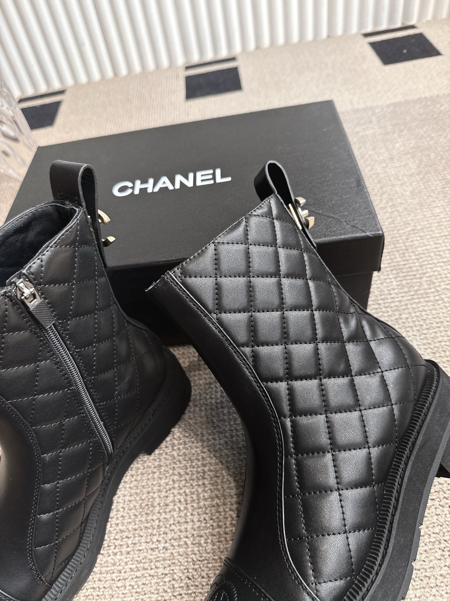 CHANEL ANKLE BOOTS IN BLACK QUILTED CALFSKIN