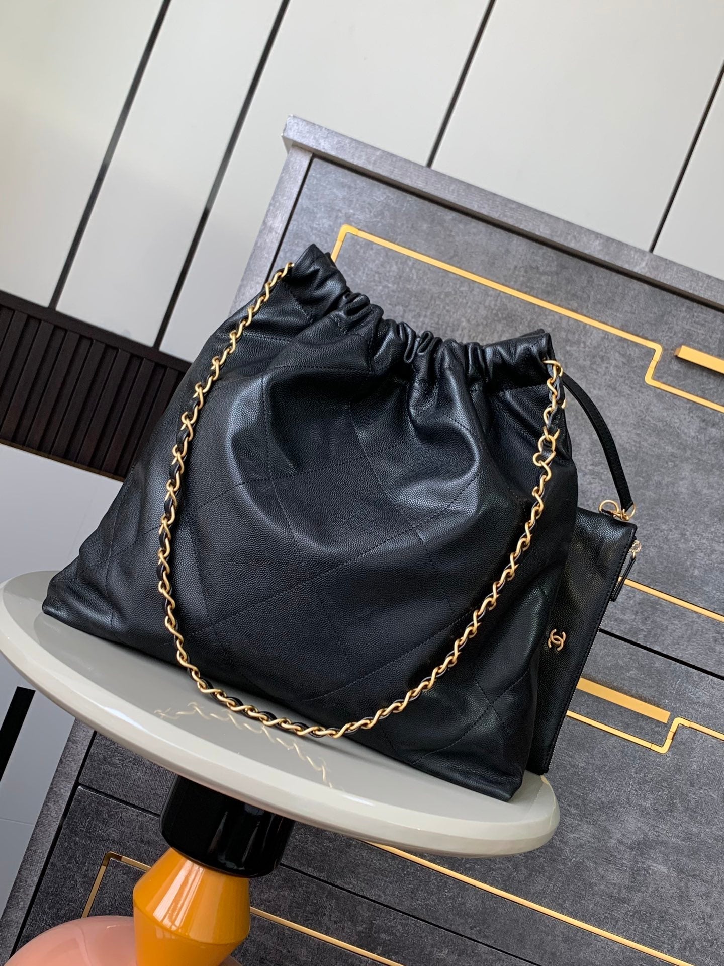 CHANEL BAG 25S 42 CM IN BLACK LAMBSKIN WITH GOLD HARDWARE