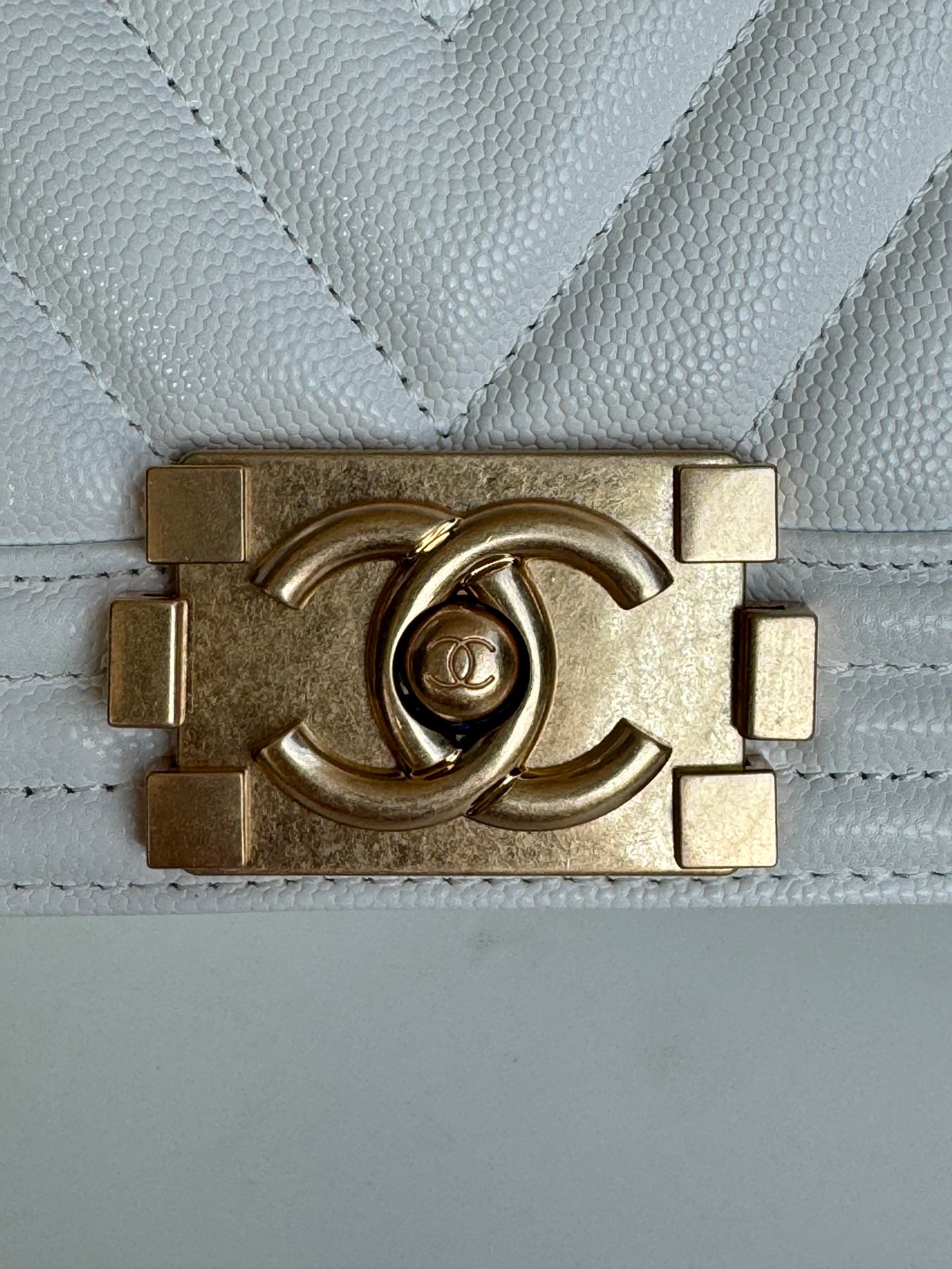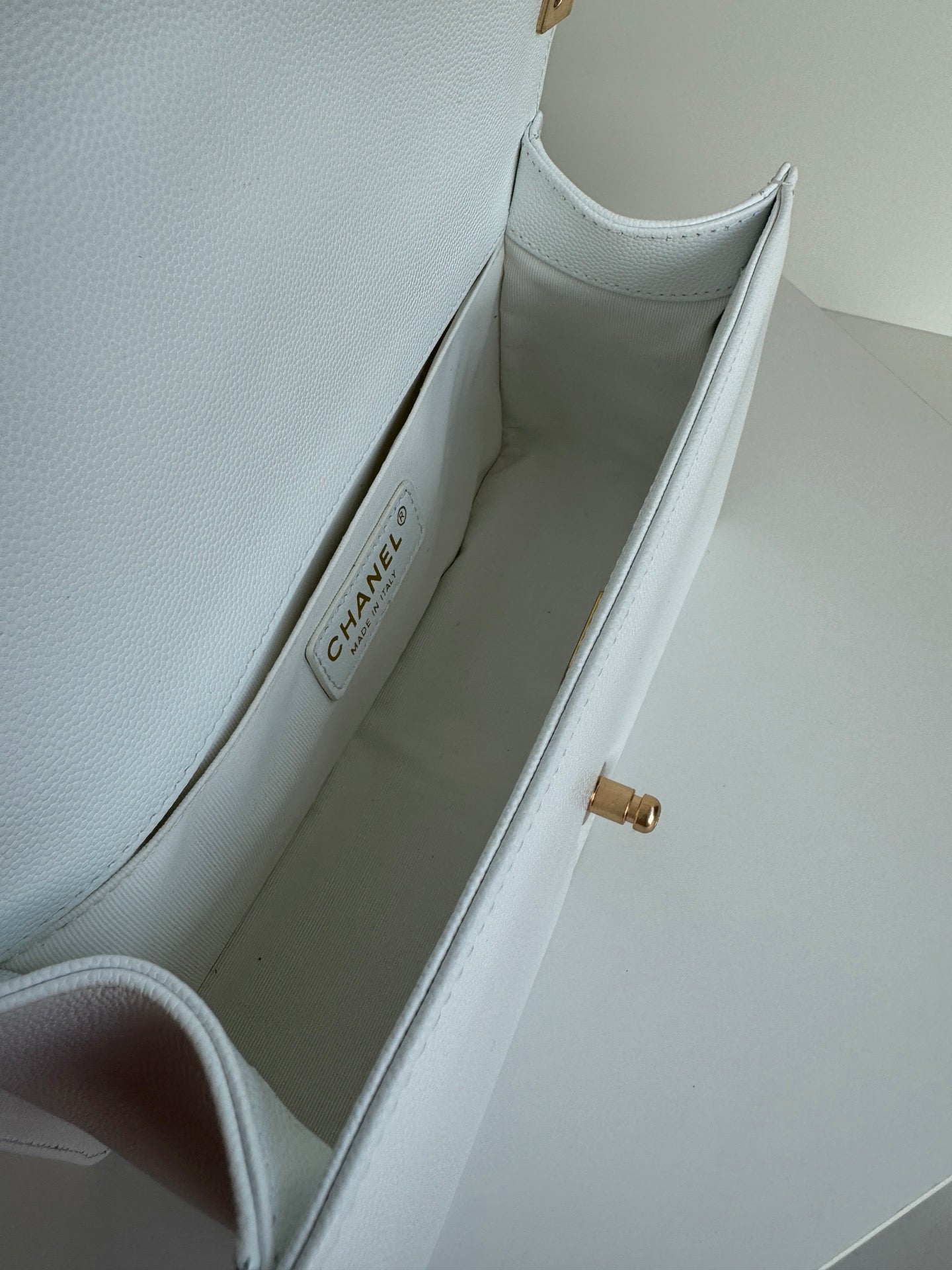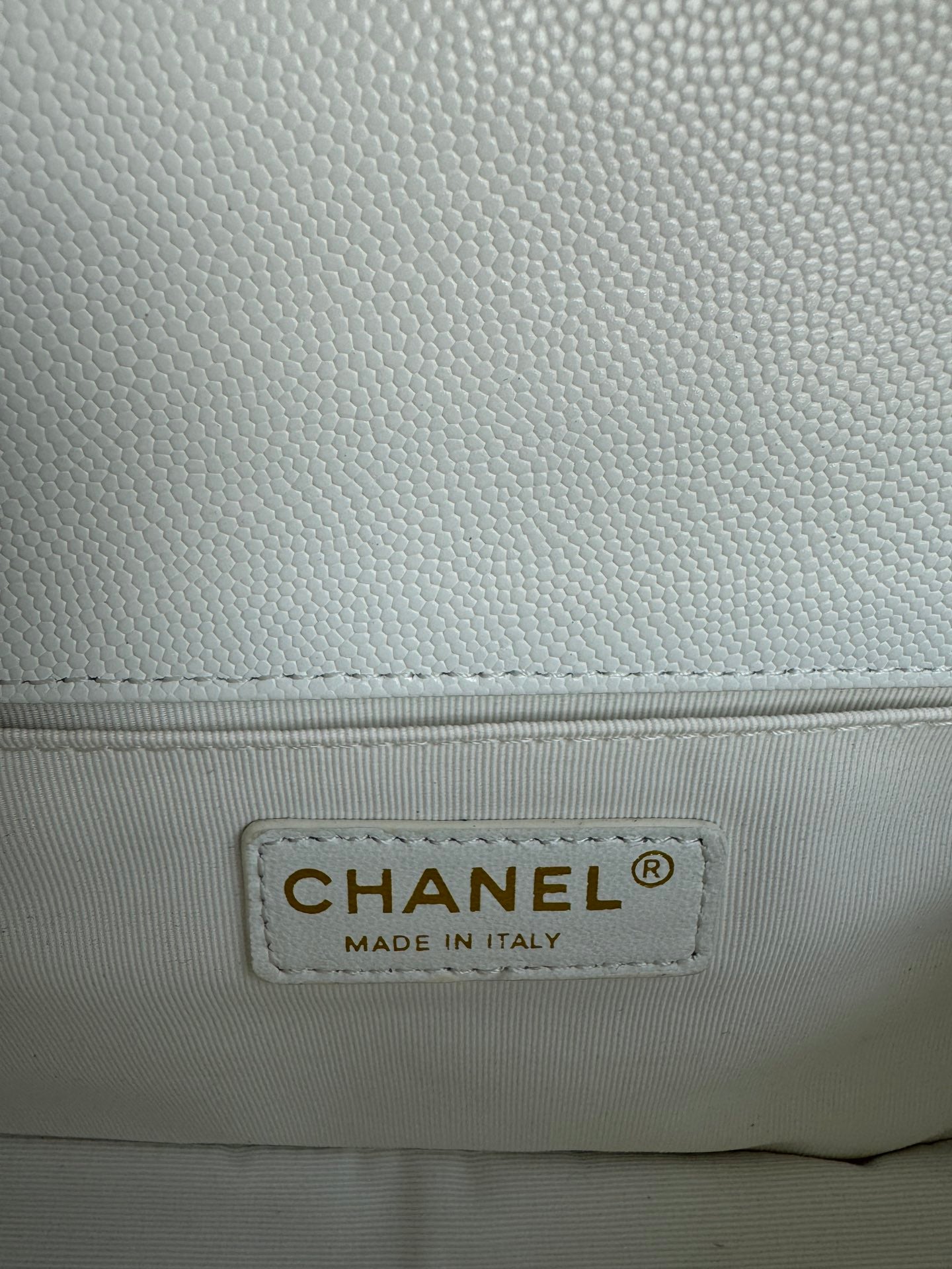 CHANEL BOY 25S 25 CM IN WHITE LAMBSKIN WITH GOLD HARDWARE