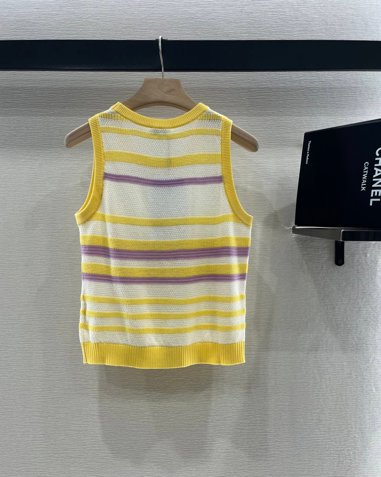 CHANEL STRIPED SLEEVELESS KNIT TOP 263403