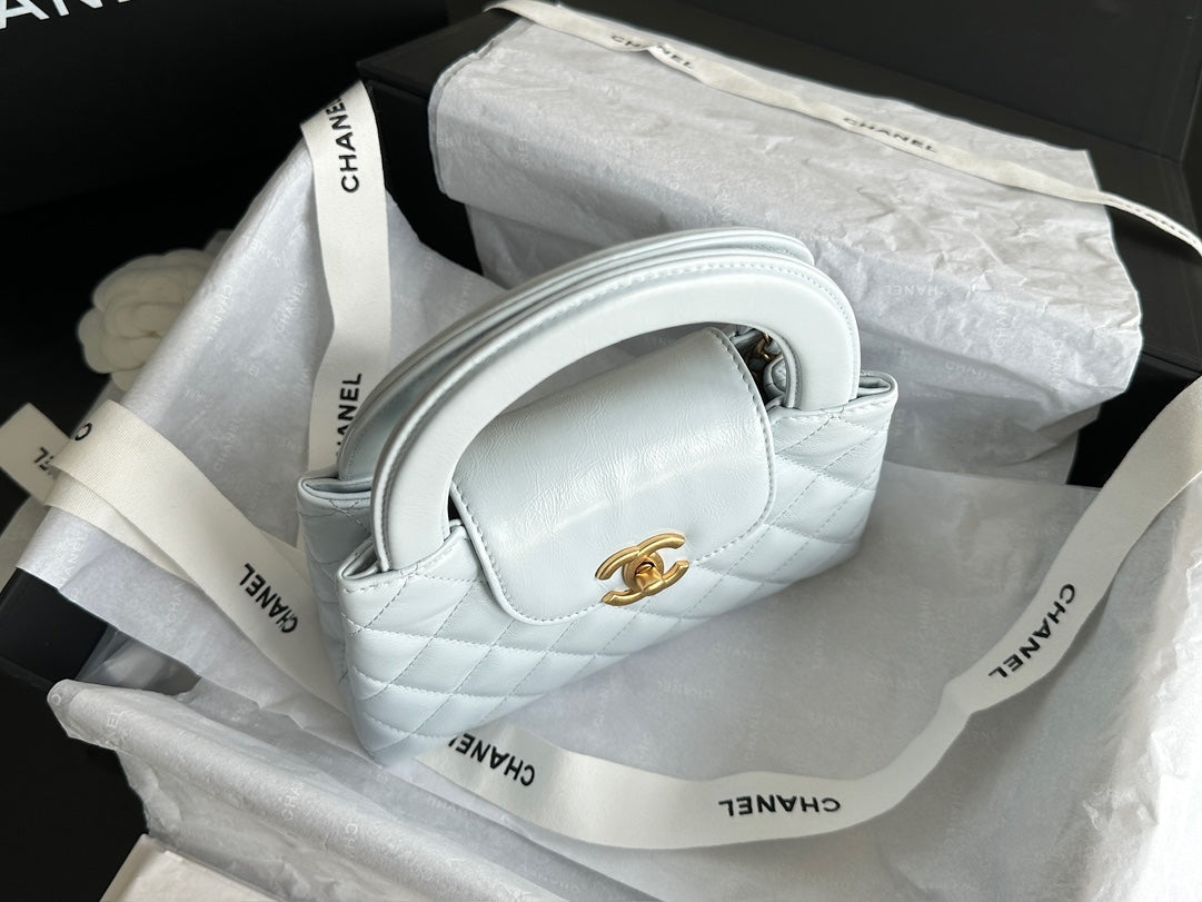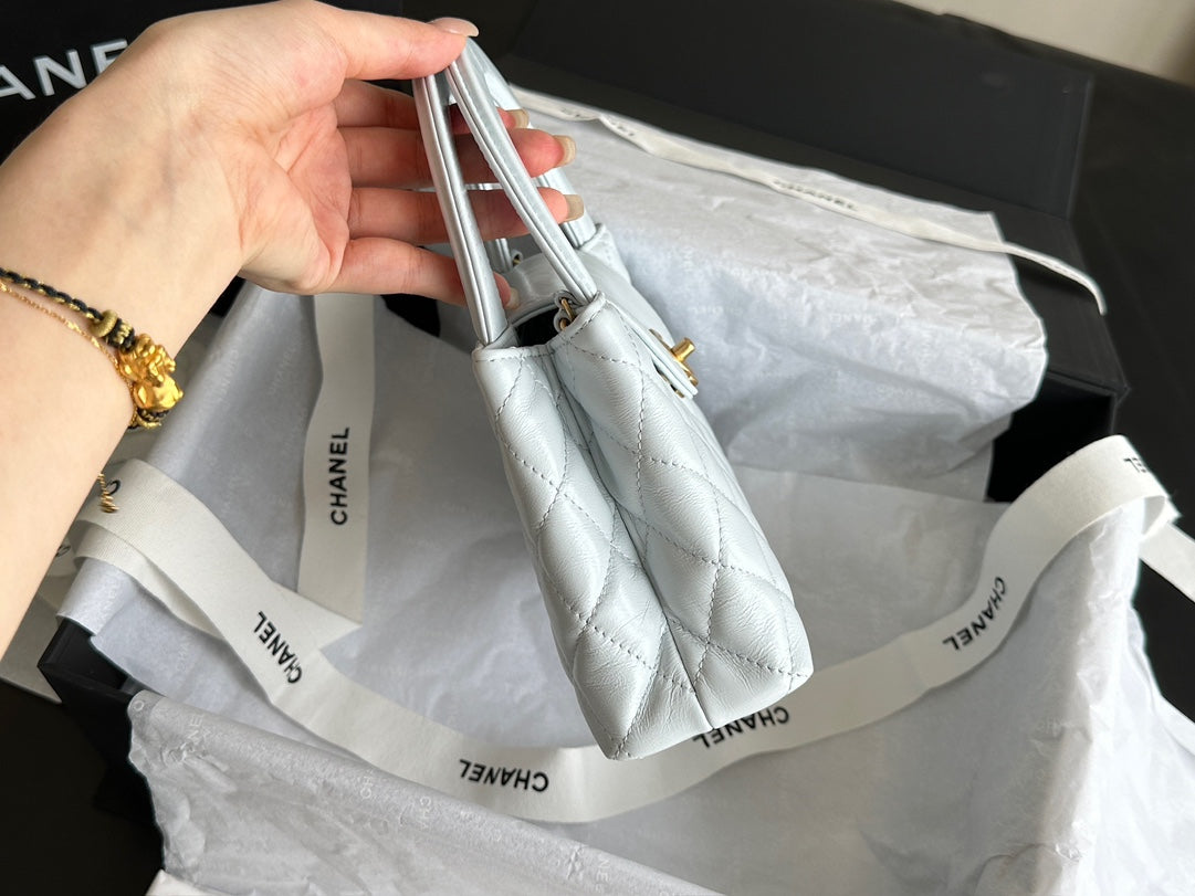 CHANEL VINTAGE KELLY 25S 19 CM IN PASTEL MINT GREEN LAMBSKIN WITH GOLD HARDWARE