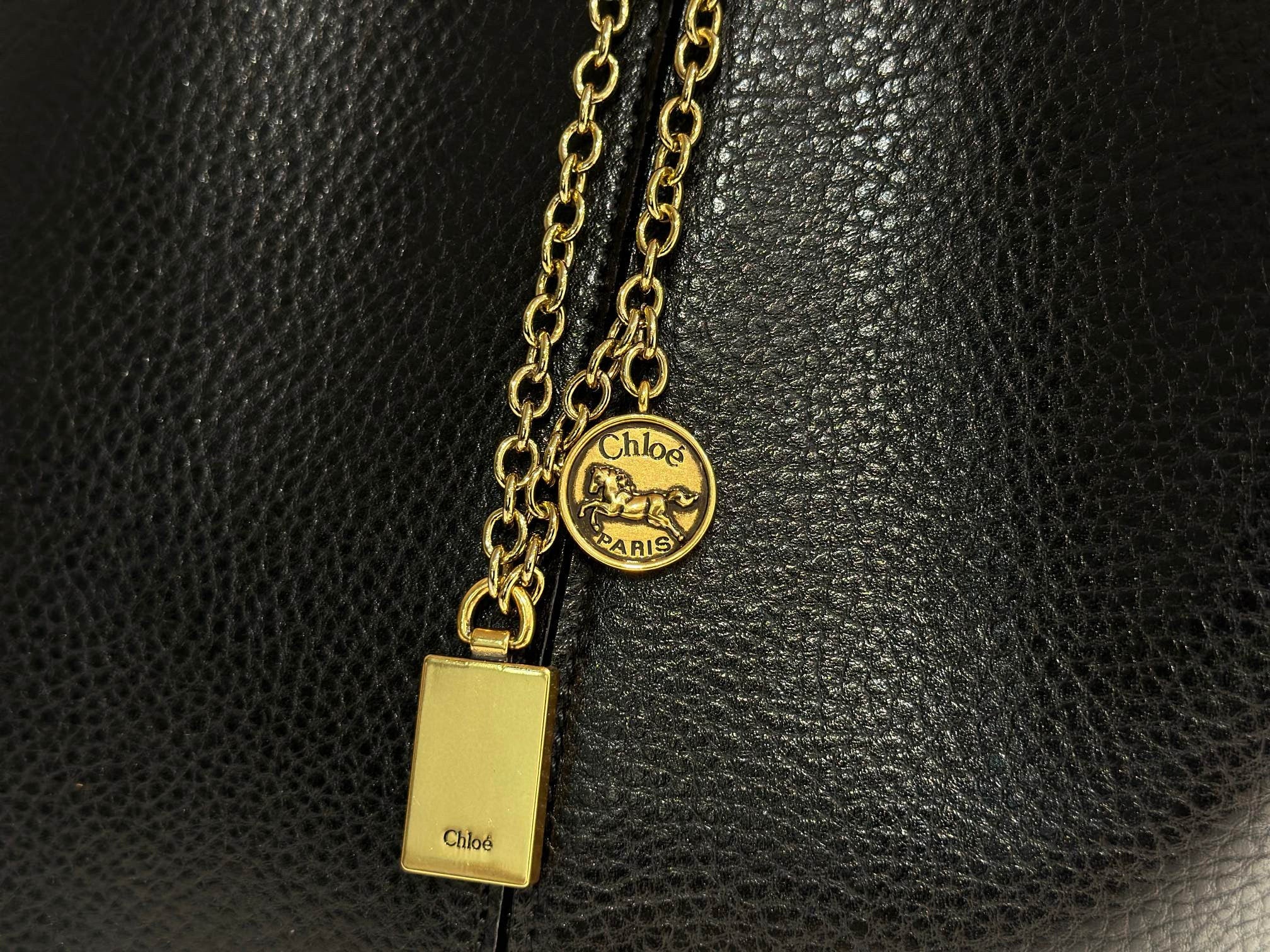 Chlo Spin tote bag in black grained leather