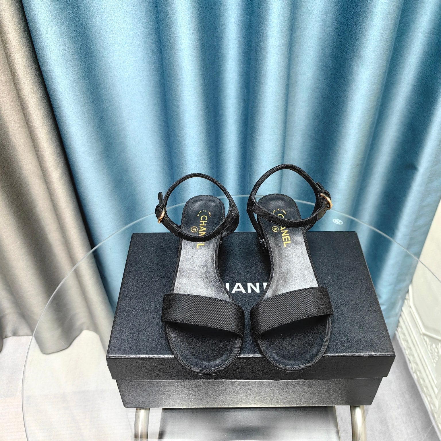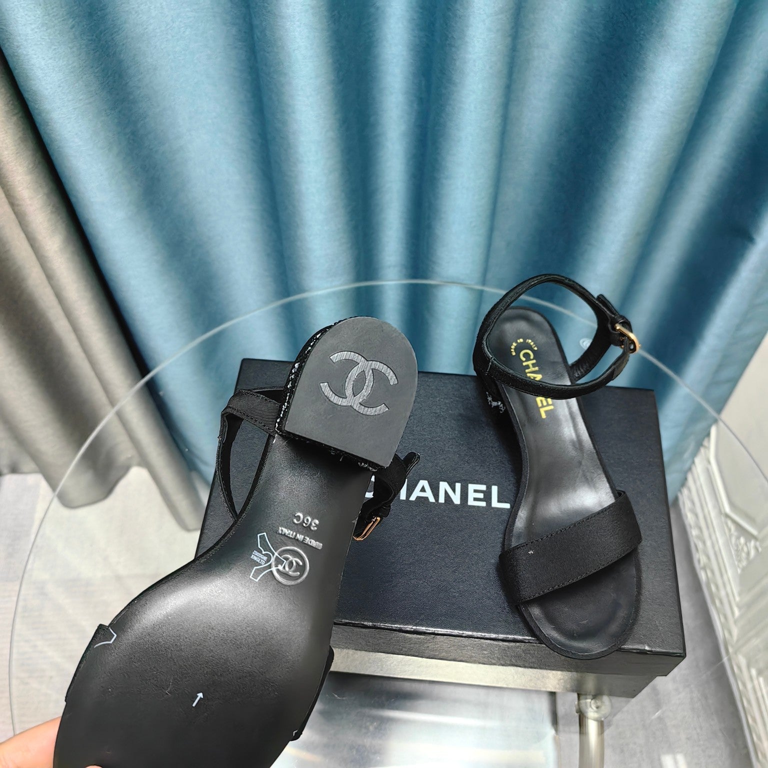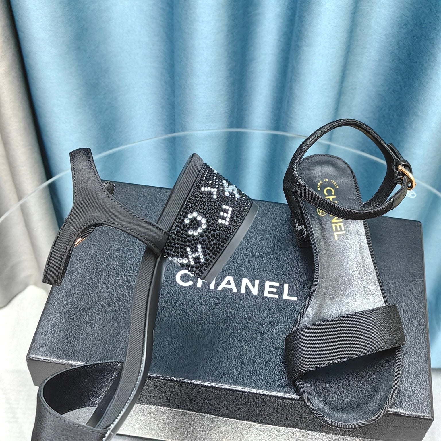 Chunky Heel Rhinestone Sandals Black Lambskin