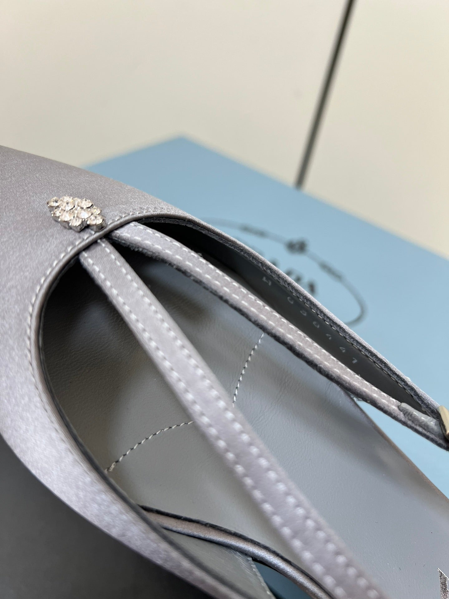 CUT-OUT PUMPS WITH BEAD BUCKLE IN WARM GRAY SATIN