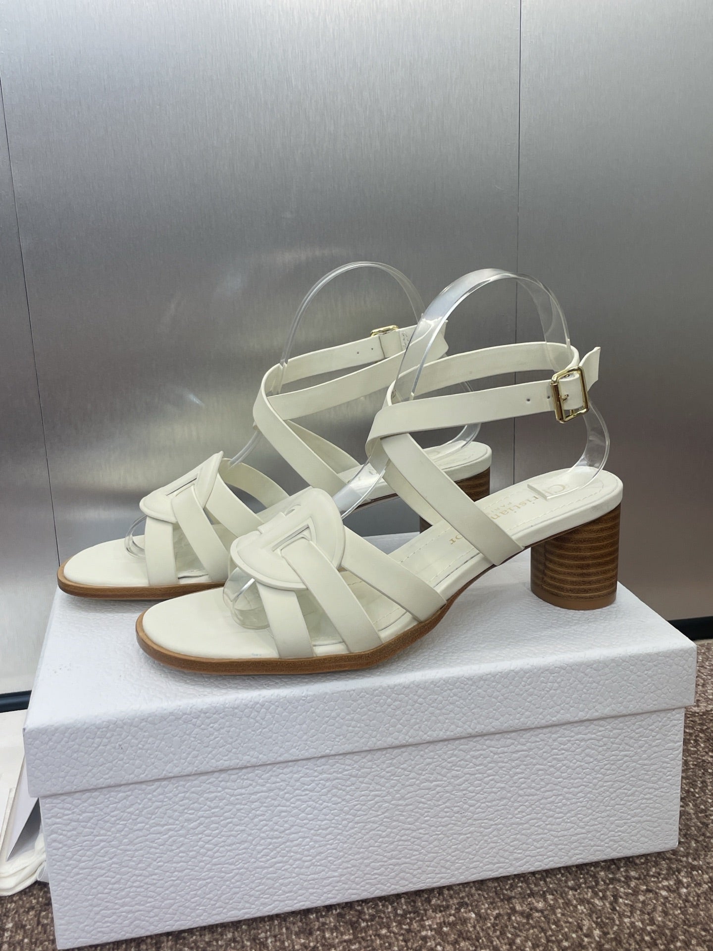 D-CLUB HIGH HEEL SLIDE 25S 55MM IN WHITE CALFSKIN
