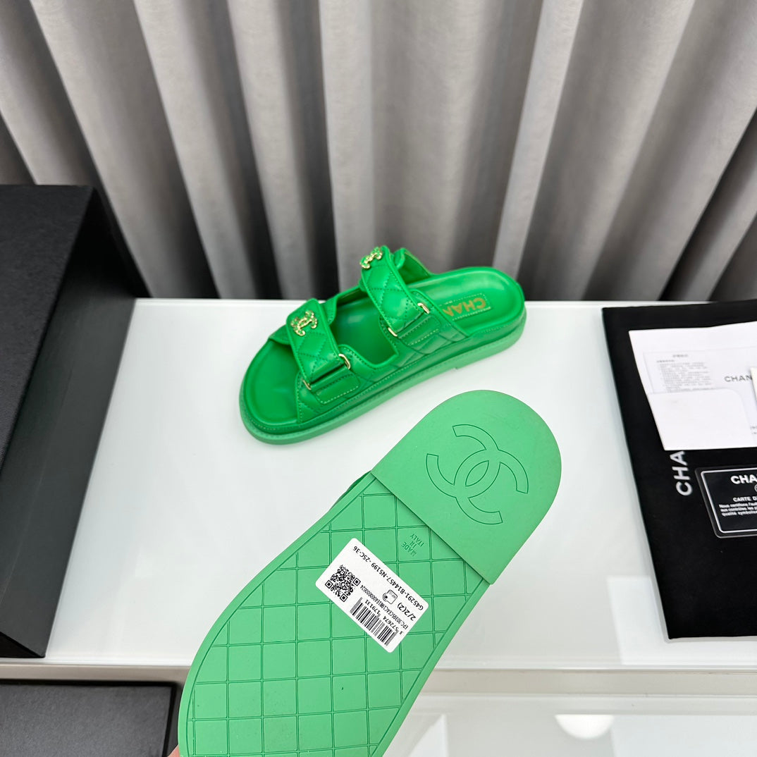 dad sandals greean lambskin mules