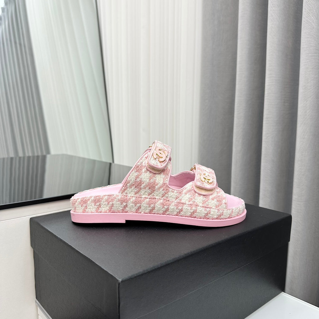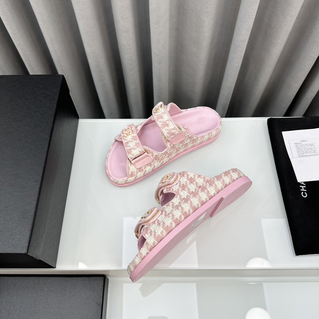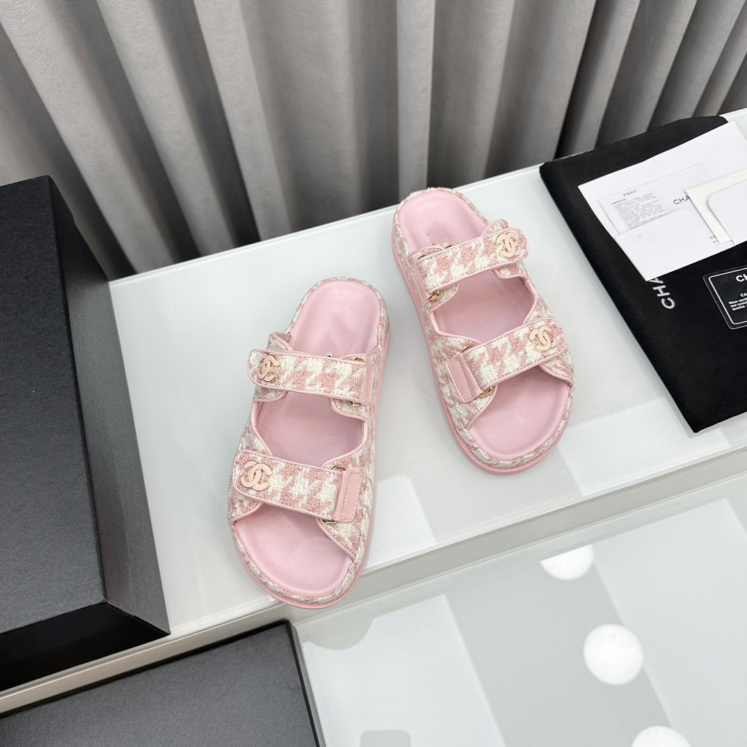 dad sandals pink white mules