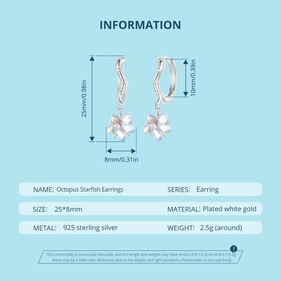 ❤ [Description] The earrings embedded with starfish shape glass is playful and whimsical as multiple coils of octopus tentacles being wrapped around. It symbolizes wealth from all directions as well as representing the beautiful meaning of absolute freedom and prosperity.
